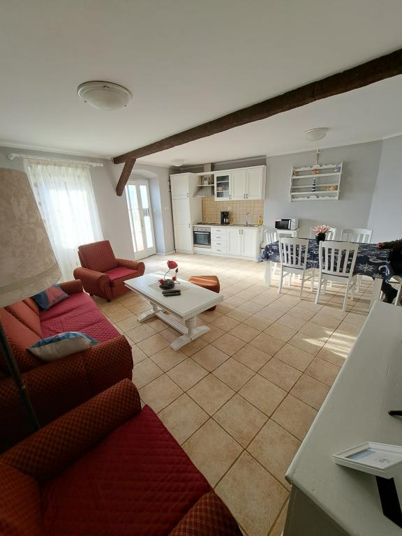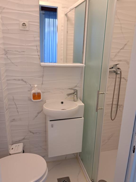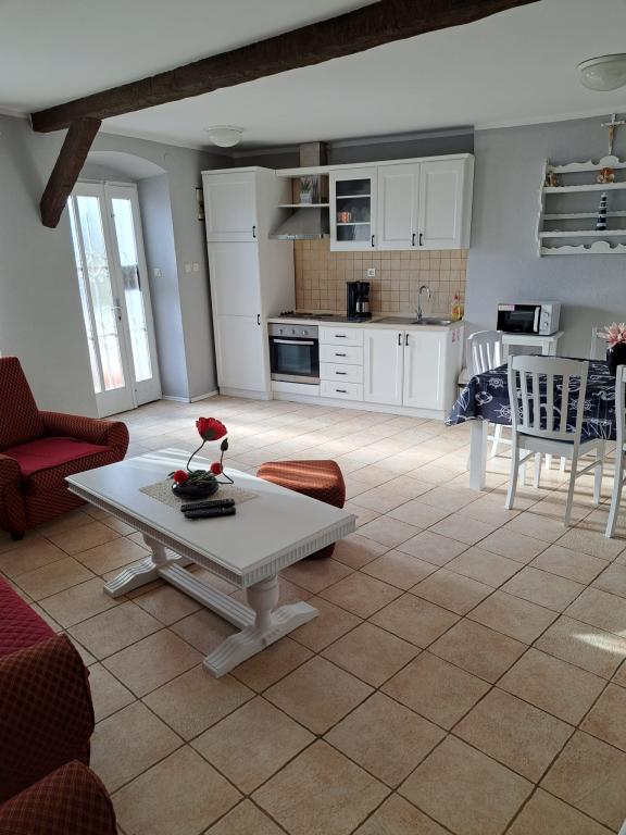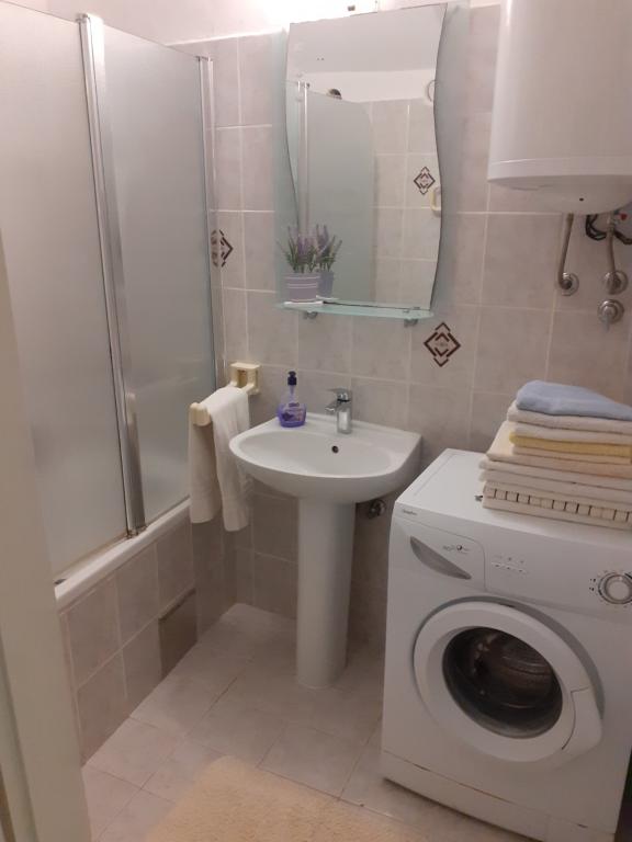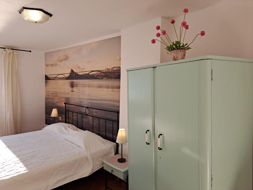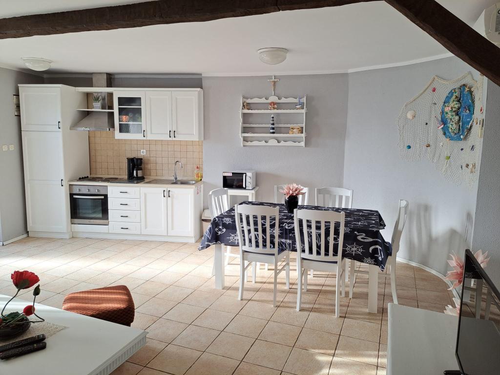 Apartman se nalazi u staroj jezgri . Apartman ima dvije spavaće sobe sa bračnim krevetima i pomoćni ležaj za 1 osobu( fotelja na razvlačenje. U prizemlju se nalazi dnevni boravak,blagavaonica,kuhinja i kupaona sa odvojenim wc. Na katu nalaze se dvije spavaće sobe,wc i tuš kabina. Na krovu apartmana nalazi se terasa. Apartman nudi Android tv, mikrovalnu pećnicu,perilicu rublja, klimatizaciju cijelog apartmana.Apartman je smješten prvi red do mora. Apartman je udaljen 70 m od plaže koju naši gosti rado koriste. Imate osigurano parkirno mjesto za dva automobila udaljen 300m od apartmana.U tom dijelu mjesta promet je zabranjen.