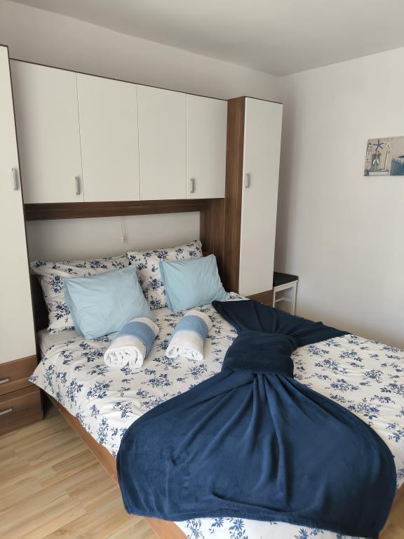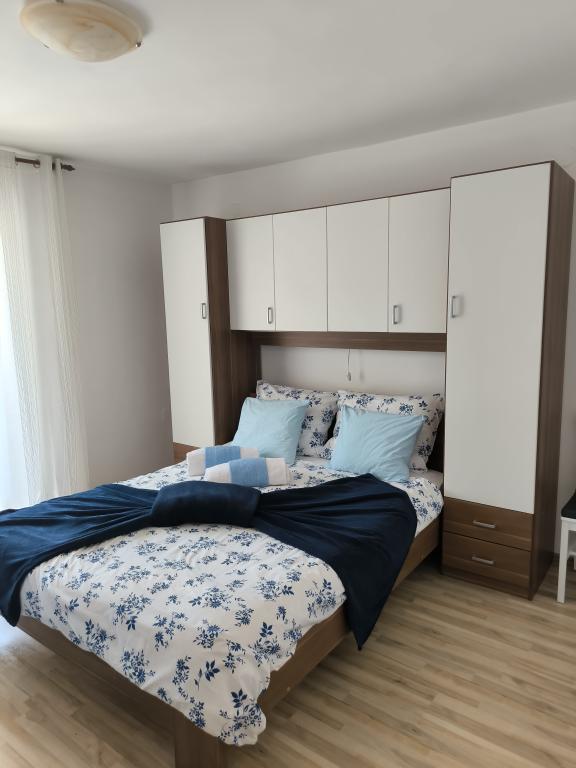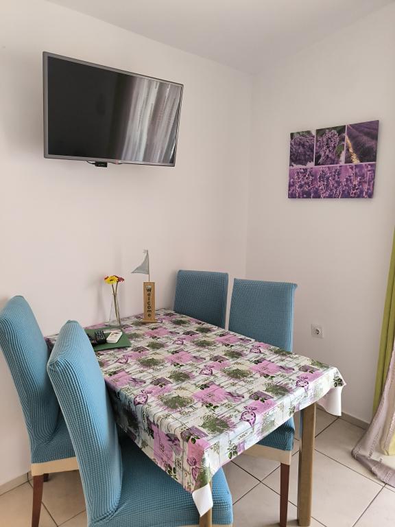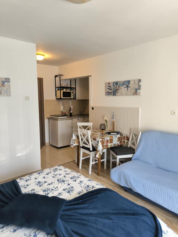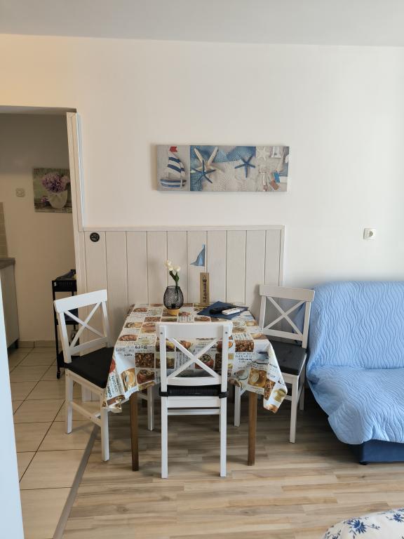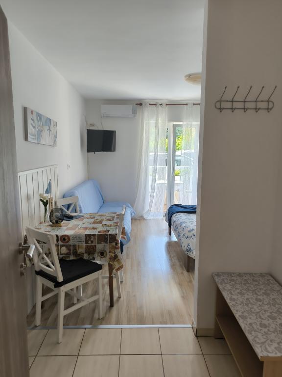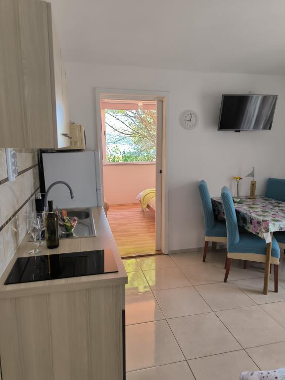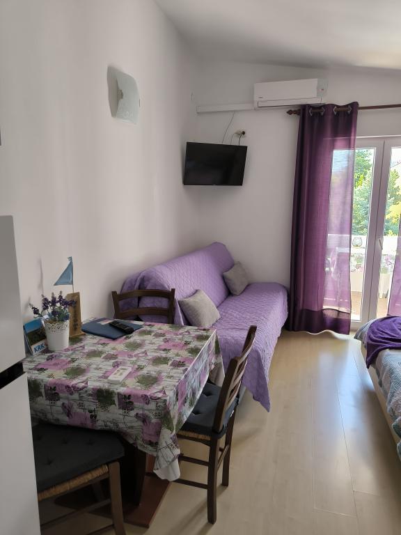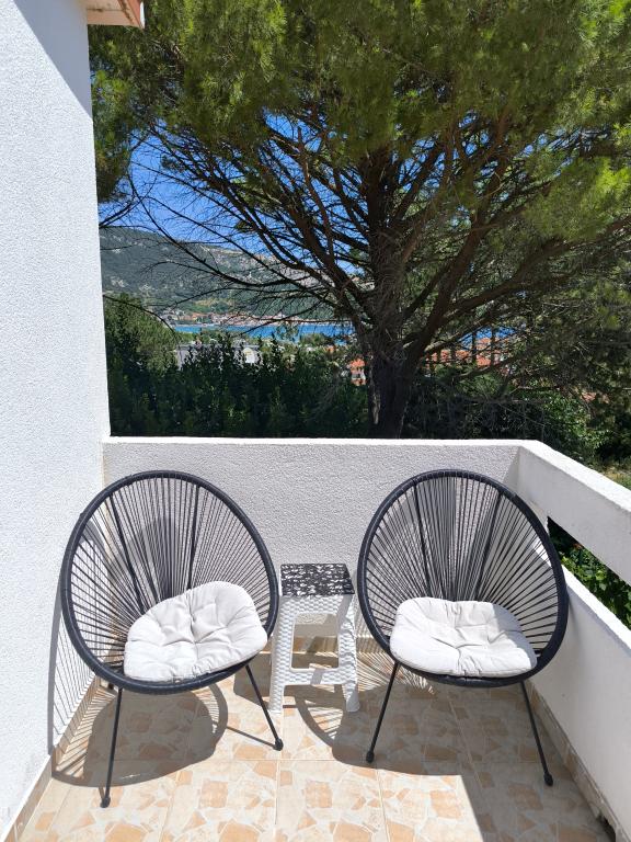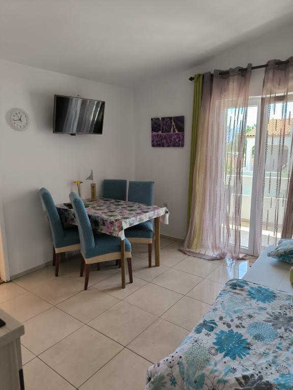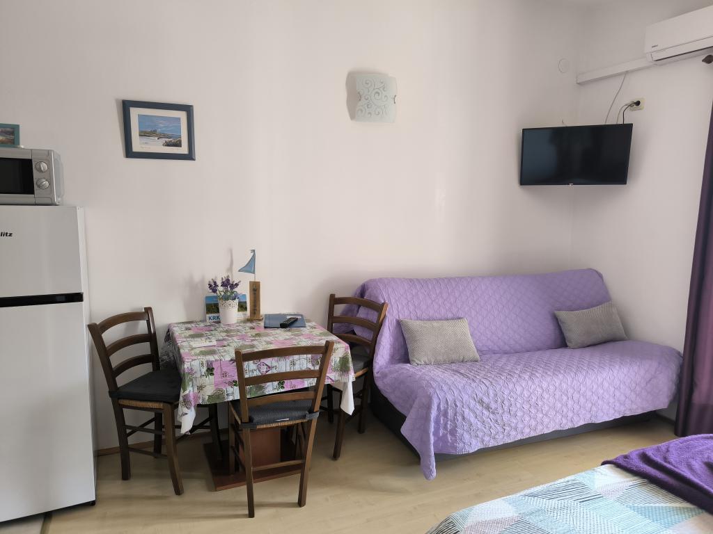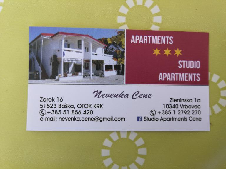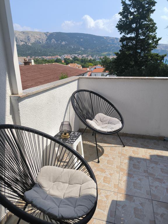 Lijepo i moderno uređeni, te u potpunosti opremljeni studio apartmani i apartmani u obiteljskoj kući u mirnom predjelu Baške. Sve smještajne jedinice opremljene su klima uređajem, wi-fi, TV-SAT, kuhinjama s hladnjakom i mikrovalnom. Mogućnost dodatnog ležaja u svim apartmanima. Parking osiguran pored kuće. Plaža je veoma blizu, svega 5 min hoda, idealna za igru djece uz more. Stara jezgra grada nalazi se na 15 min laganog hoda po predivnoj šetnici.