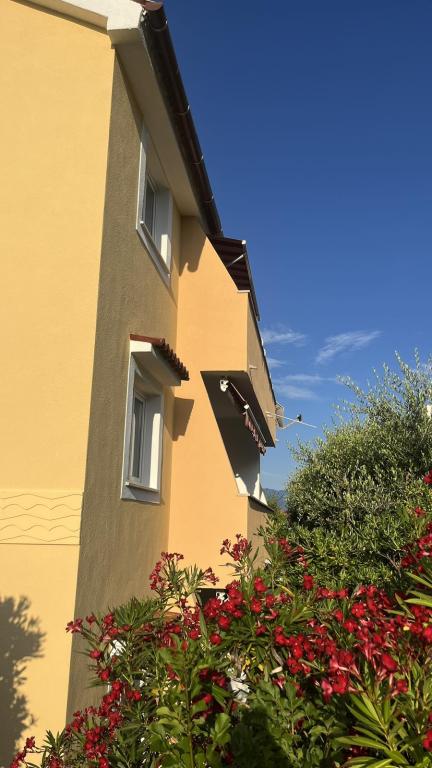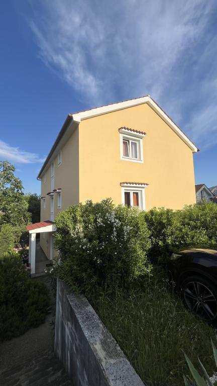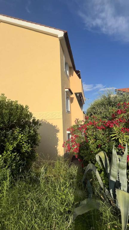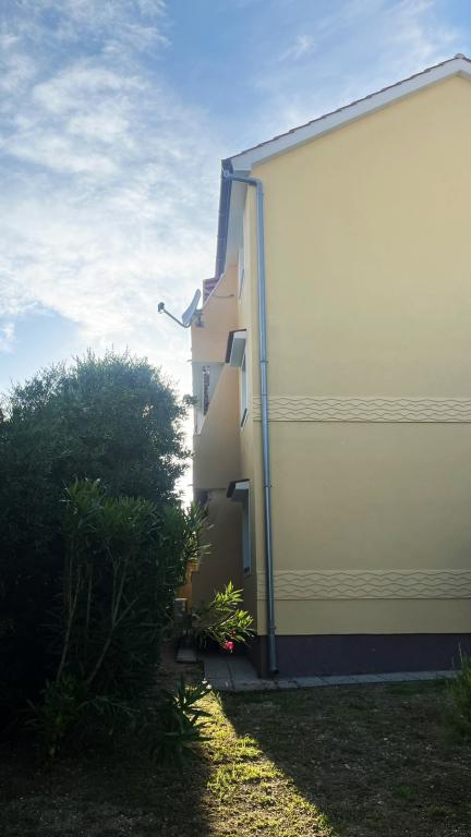 Moderno uređeni apartmani sa terasom, klimom, wi-fi vezom i satelitskom televizijom. Apartmani se nalaze u novijoj zgradi na mirnoj lokaciji sa puno zelenila. Veliki parking je osiguran neposredno uz zgradu. Također,važno je napomenuti da je parking u hladu. Centralna plaža je udaljena cca. 500 metara od apartmana. ( cca. 5-10 minuta hoda) U neposrednoj blizini se nalazi dućan, kafić, restoran i super market. Svaki apartman ima dvije odvojene sobe,kuhinju,dnevni boravak,kupaonu i prostranu terasu. Najveća prednost naših apartmana uz osigurani parking jest činjenica da su svi sadržaji u neposrednoj blizini a ipak nema gužve i buke.