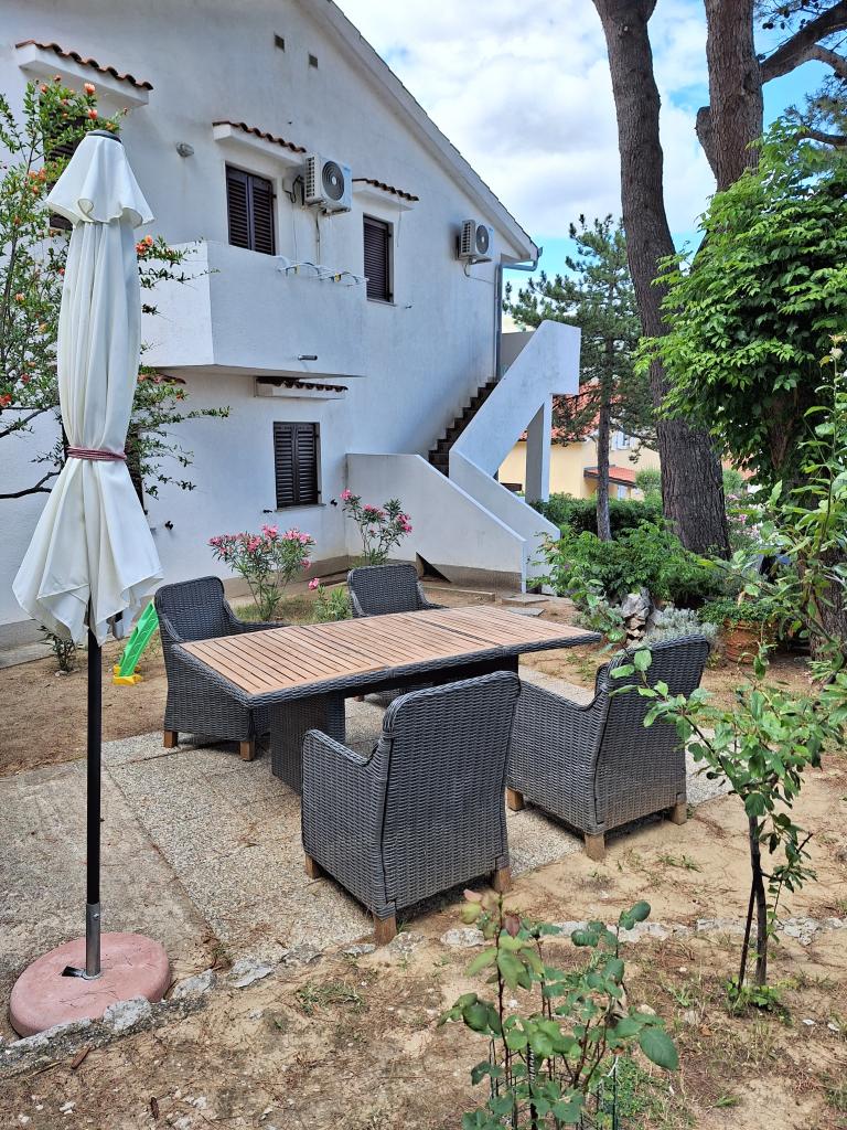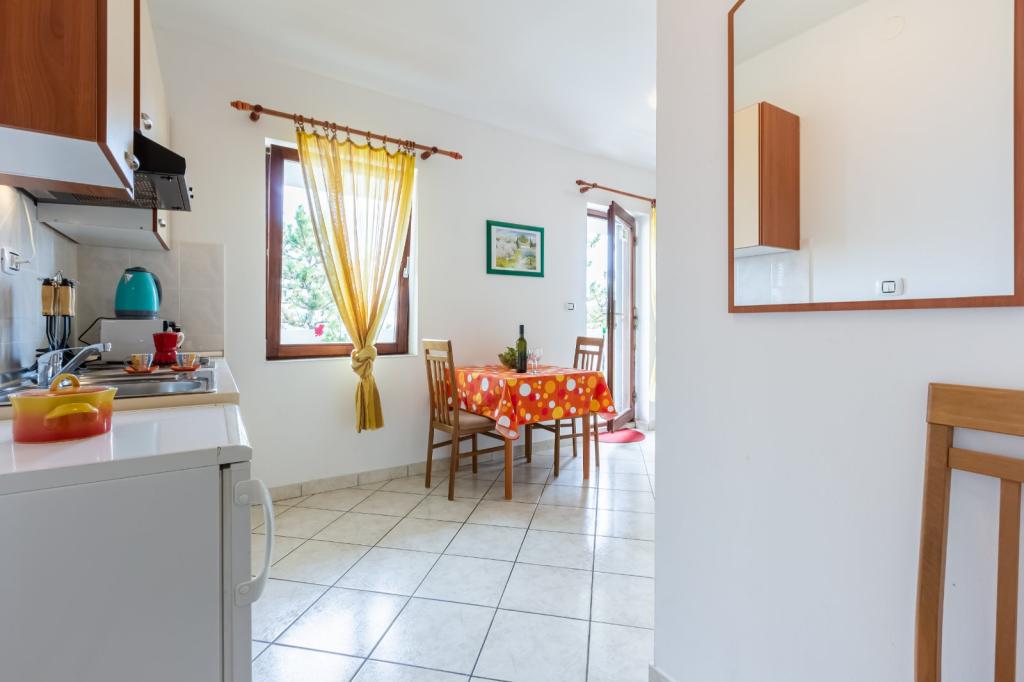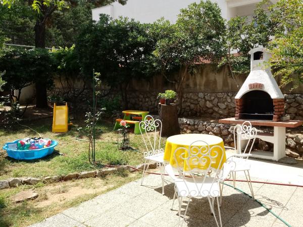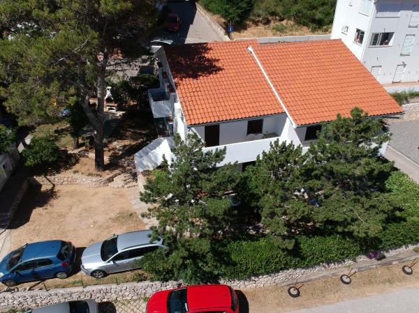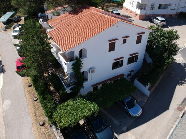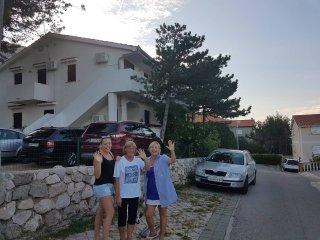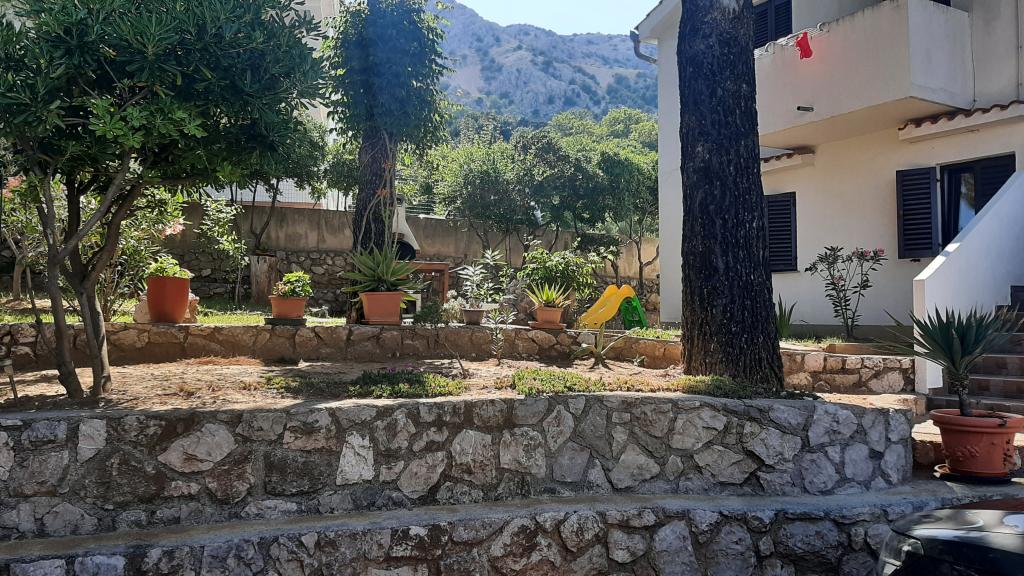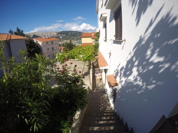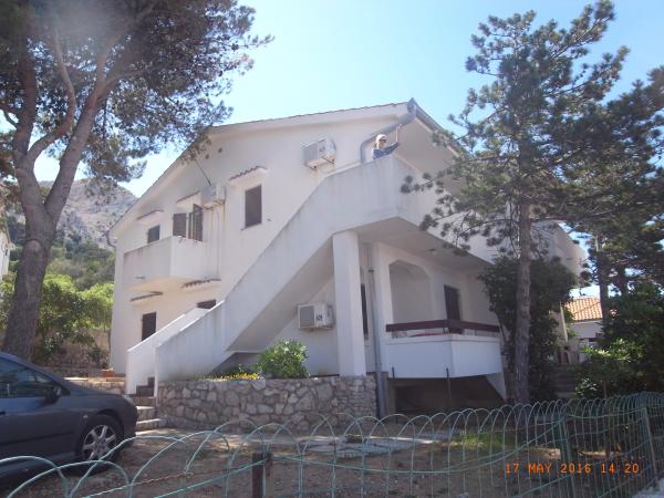 Nalazimo se u lijepoj i novoj kući, okruženoj zelenilom u mirnom dijelu mjesta Baška na otoku Krku, 250 metara od mora, a cca 300 metara od prelijepe i jedinstvene šljunčane plaže. Udaljeni smo oko 1000 metara od centra mjesta, gdje se nalaze poštanski ured, banka, mjenjačnica, ambulanta, restorani. Najbliže trgovine , restorani i sl. se nalaze i na cca 200 metara udaljenosti. Nudimo vam 3 apartmana za 4 -5 osoba i 3 Studio apartmana za 2-3 osobe. Svaki od velikih apartmana ima 2 spaveće sobe, dnevni boravak, kuhinju, kupaonicu, terase. Svaki apartman ima poseban ulaz i izlaz u dvorište i na parkiralište. Svi apartmani opremljeni su klima uređajima, TV sat, wireless internet (WI-FI), hladnjak, aparat za kavu, masina za pranje posudja itd. Brigu o gostima i aprtmanima tijekom sezone osim vlasnice vodi i domaćica, koja je cjelodnevno prisutna. Posteljina i ručnici se mijenjaju jednom tjedno