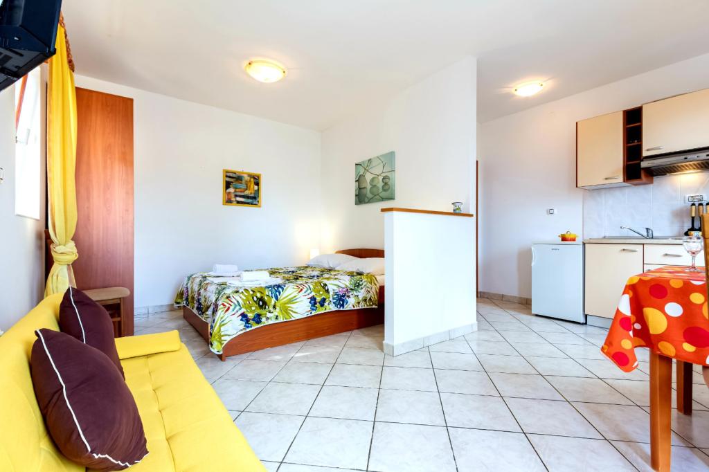 Pročitaj više Smještajne jediniceEkološka taksa je 0, 30€ / osoba / dan. Prijava gosta je 2, 50€ po osobi / jednokratno. Boravak do 3 noćenja naplaćuje se 30% više. Prijava gostiju vrši se od 14 sati, odjava do 10 sati. Za potvrdu rezervacije treba uplatiti akontaciju u iznosu od 20% od ukupne cijene, ostatak iznosa plaća se pri dolasku. Dodatni ležaj se naplaćuje za 1 noć, od 10 eura u predsezoni i postsezoni do 12 eura u sezoni. Pomoćni ležaj (sofa) se naplaćuje od 6 eura za 1 noć predsezoni i postsezoni, do 8 eura u sezoni. Smještaj kučnog ljubimca naplaćuje se od 4 do 8 eura ovisno o veličini. Vlasnik se sa svakim gostom dogovara o svim detaljima i uvijek nastoji da gost bude zadovoljan.