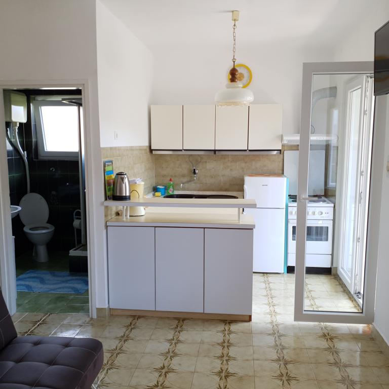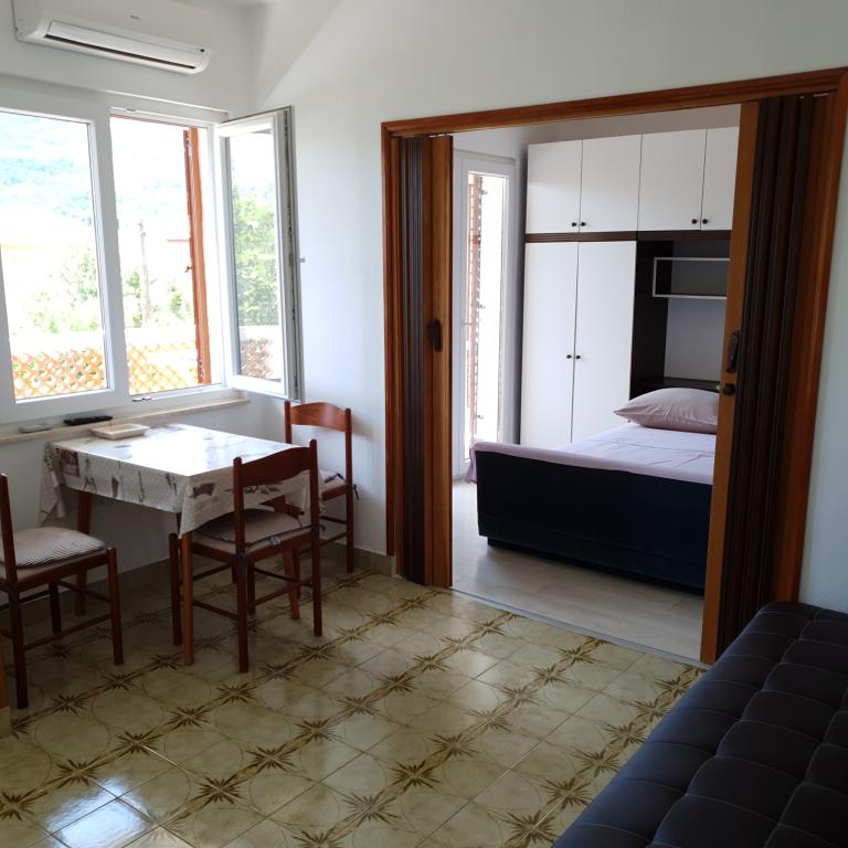 Apartmani Branko nude smještaj u ugodnoj atmosferi u obiteljskoj kući koja je okružena zelenilom u ograđenom vrtu u kojem se nalazi i grill te poveči mramorni stol sa klupama pogodan za druženje. Privatno parkiralište za goste nalazi se u dvorištu kuće. Apartmani se nalaze na mirnoj lokaciji udaljeni 5 - 10 min laganog hoda do plaže i centra mjesta