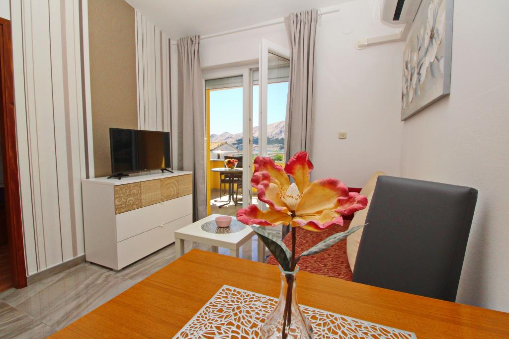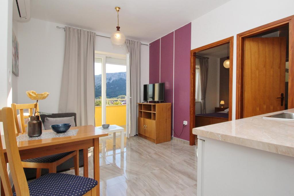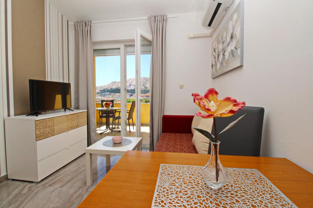 Apartmani se nalaze na 7 minuta hoda od centa Baške i 9 minuta hoda od prekrasne šljunčane Vele plaže. U kući se nalazi 7 renoviranih i lijepo uređenih apartmana koji su opremljeni klimom, Internetom i SAT-TV-om. Svaki apartman ima na raspolaganju jedno parkirno mjesto.