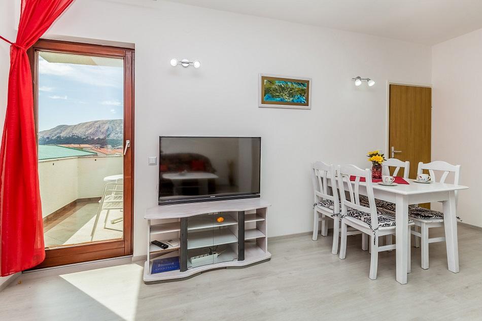 Dragi naši gosti, apartman DINO, novouređeni apartman s balkonom, udaljen 350 metara od mora, nalazi se u mirnoj ulici. Udaljen je par minuta hoda od najljepše plaže na otoku Krku, od šetnice uz more, od biciklističkih staza i netaknute prirode. Trgovine, restorani udaljeni su 250 metara od apartmana. 2 spavaće sobe ( 1. soba bračni ležaj, 2. soba krevet za jednu osobu). Za aktivan odmor možete se popeti na okolna brda do " Moon plato", po označenoj stazi i uživati u predivnom pogledu na cijelu Bašćansku uvalu i okolne otočiće. Baška je idealno mjesto za ljude koji žele uživati u prirodnim ljepotama i zvjezdanom nebu. Kajak i SUP daska za naše goste koji žele uživati u moru i odlaziti na malene udaljene plaže u blizini Baške. Mjesto gdje možete uživati u miru i prirodi uz cvrkut ptica i miris mediteranskog bilja. Ako ste ljubitelj netaknute prirode ili želite pobjeći od gradske užurbanosti i odmoriti se od svega, mi smo tu za Vas. DOBRO DOŠLI !!!