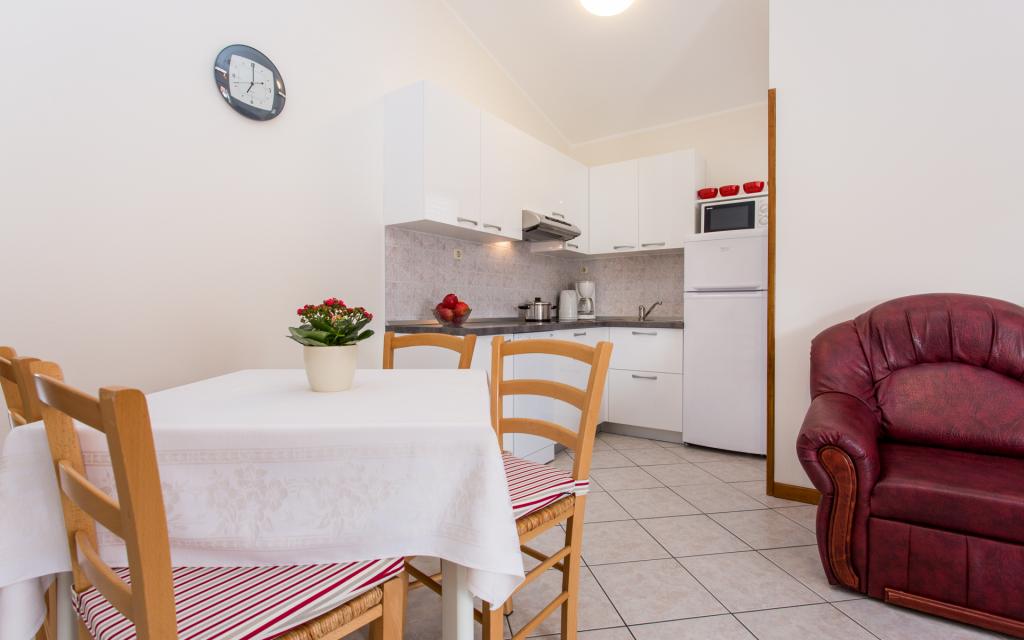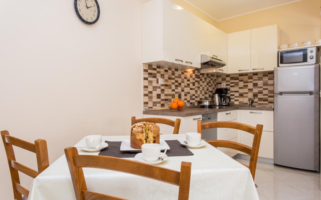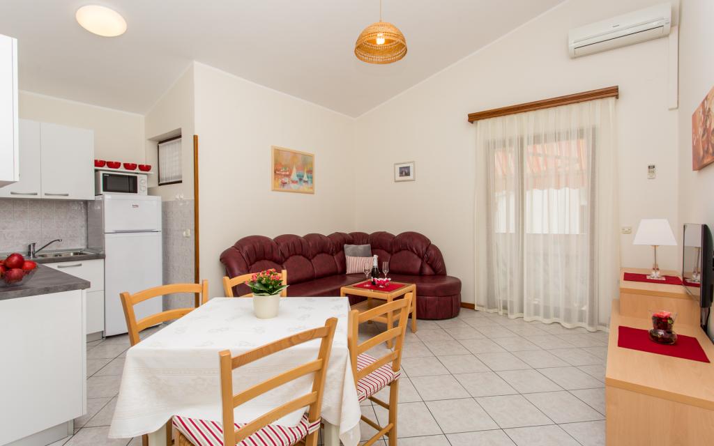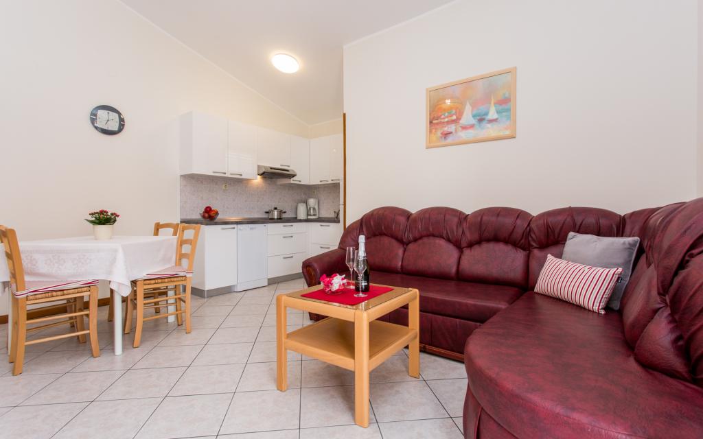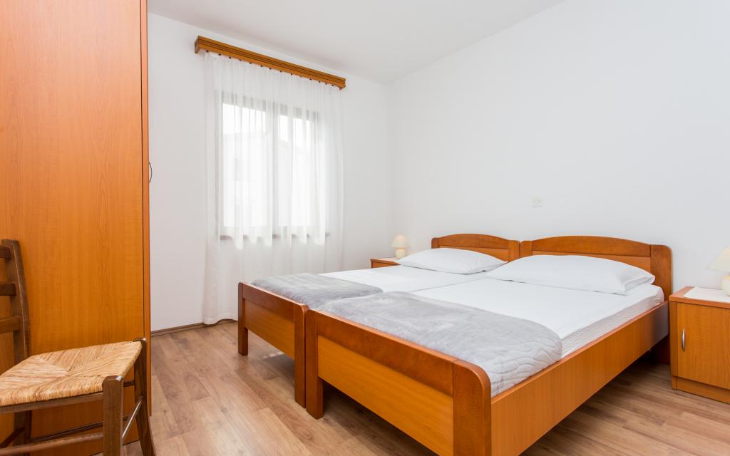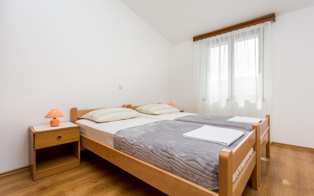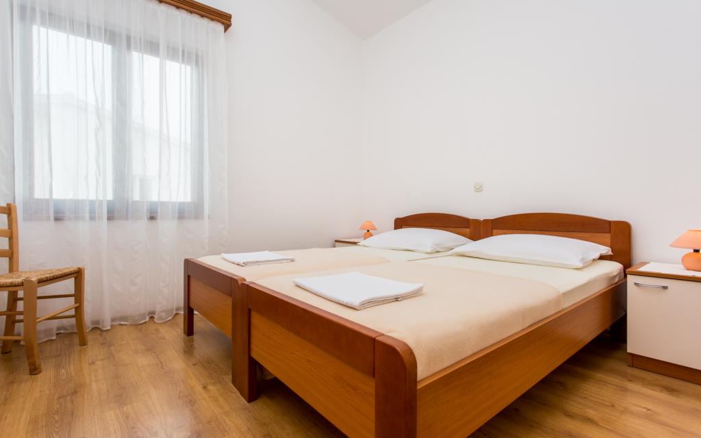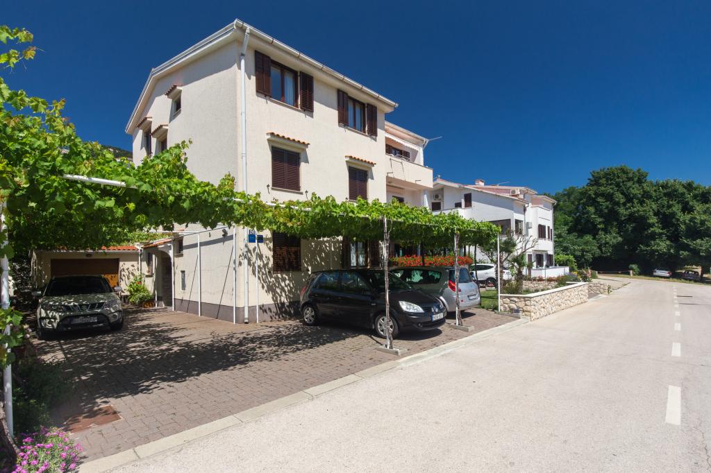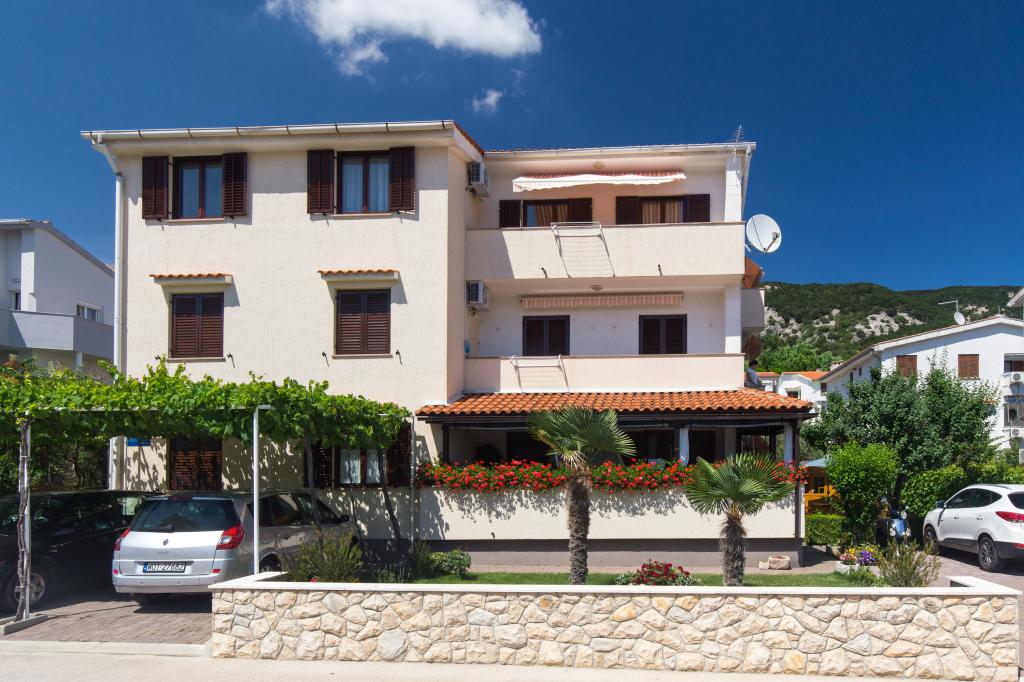 Naša kuća ima prizemlje i dva kata, na prvom i drugom katu nalaze apartmani. Svaki apartman se sastoji od 2 spavaće sobe, dnevnog boravka sa sat-tv, kuhinjom sa blagovaonicom, kupatilom sa kadom sa tušem, balkona sa vanjskim namještajem. U dvorištu imamo lijepi vrt koji volimo uređivati. Imamo lijepu terasu sa grilom koje je idealno za večernje druženje. Terasa sa grillom je dostupna svim gostima. U dvorištu nudimo i parkiralište za automobile. Najmom apartmana bavimo se već dugi niz godina. Trudimo se pružiti gostima čim ugodniji boravak u našoj kući. Uvijek smo voljni pomoći. Trudimo se održavati apartmane izrazito urednima, te se trudimo uvijek nešto poboljšati. Naša kuća se nalazi u centralnom dijelu Baške, idealnom za godišnji odmor. Susjedstvo nam je mirno i nema mnogo prometa. Udaljena je od buke, a opet nalazi se svega 10 min laganog hoda do plaže, prvog dućana, pekarnice, banke. .
