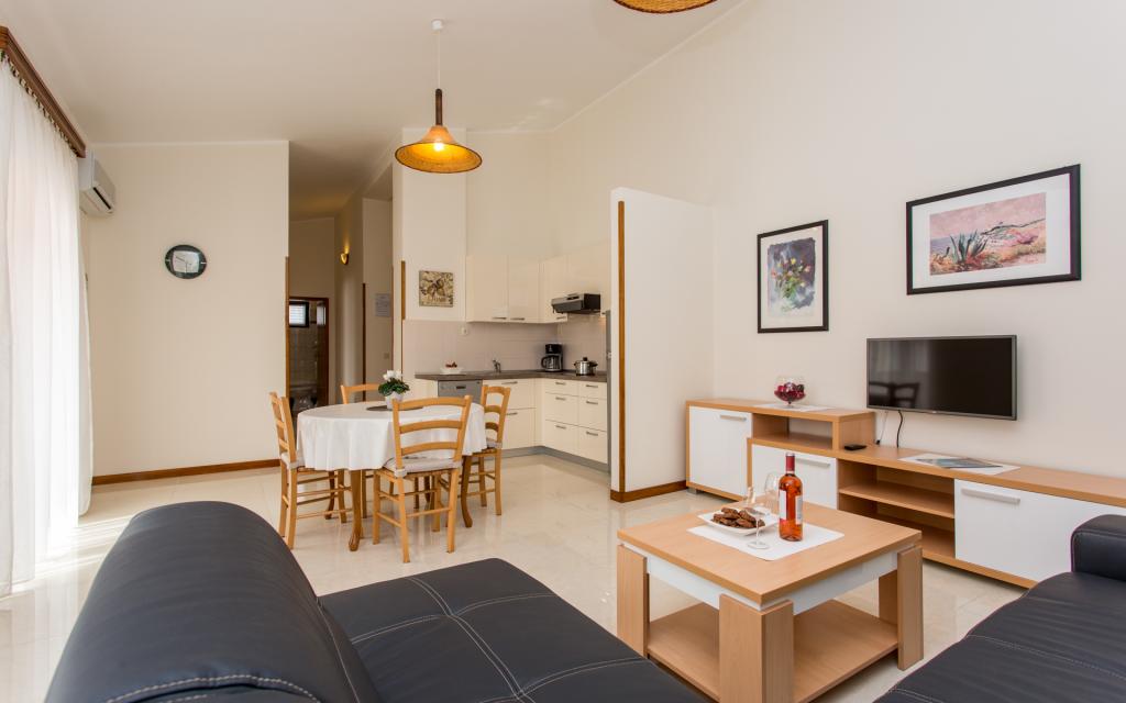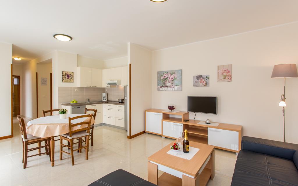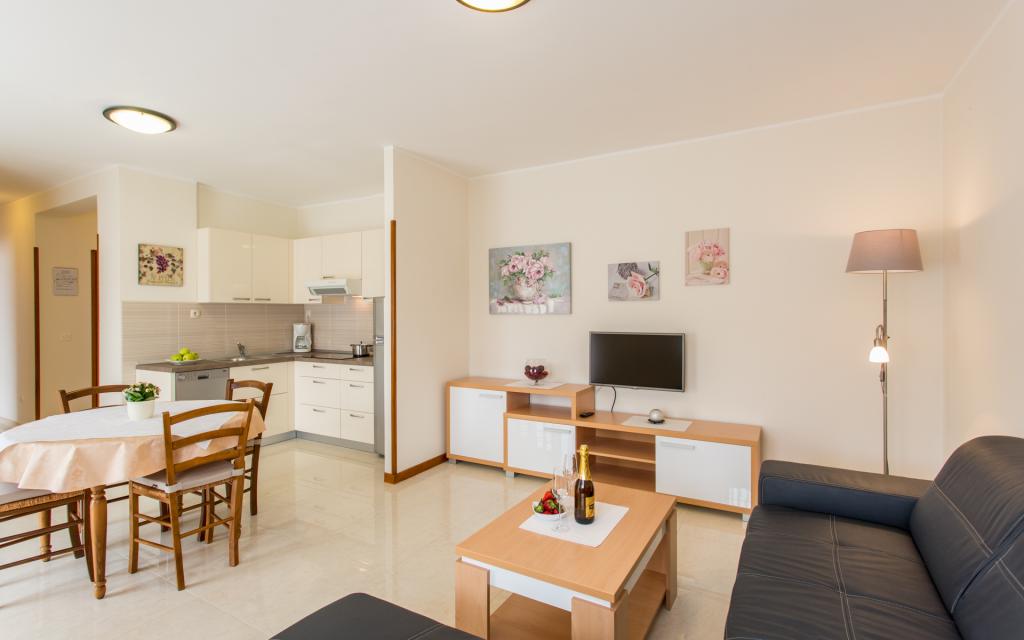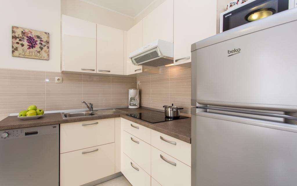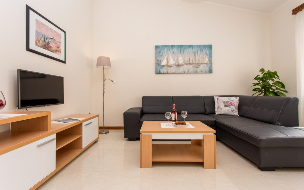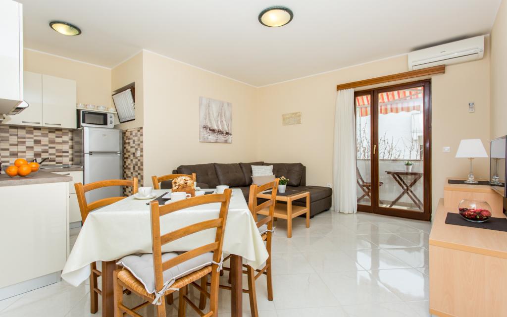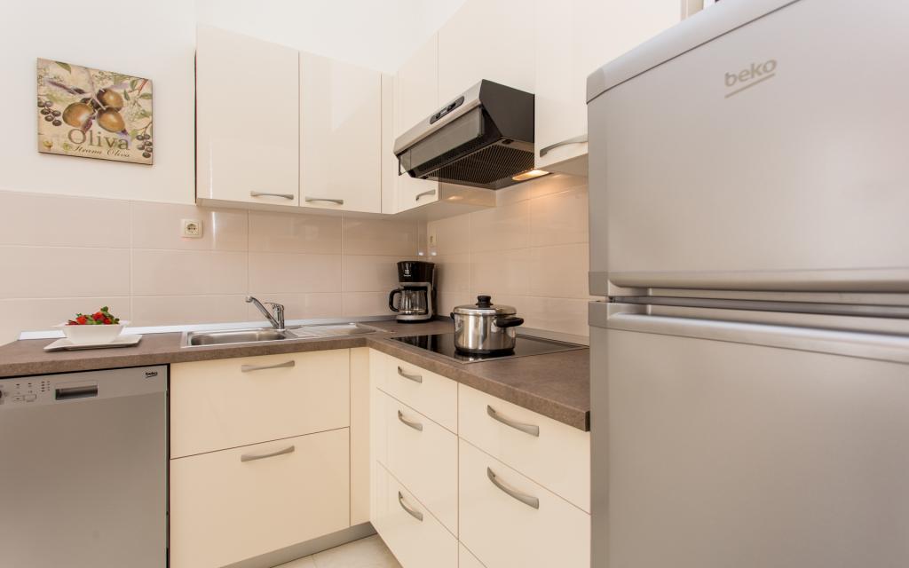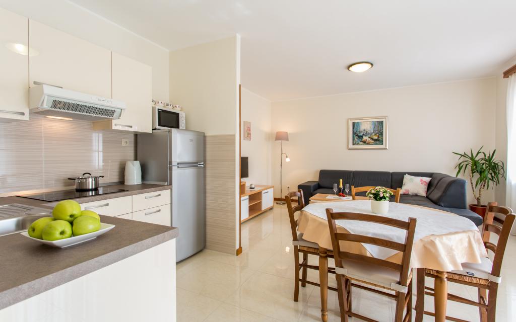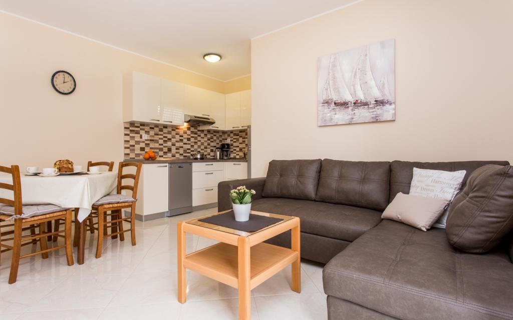 Naša kuća ima prizemlje i dva kata, na prvom i drugom katu nalaze apartmani. Svaki apartman se sastoji od 2 spavaće sobe, dnevnog boravka sa sat-tv, kuhinjom sa blagovaonicom, kupatilom sa kadom sa tušem, balkona sa vanjskim namještajem. U dvorištu imamo lijepi vrt koji volimo uređivati. Imamo lijepu terasu sa grilom koje je idealno za večernje druženje. Terasa sa grillom je dostupna svim gostima. U dvorištu nudimo i parkiralište za automobile. Najmom apartmana bavimo se već dugi niz godina. Trudimo se pružiti gostima čim ugodniji boravak u našoj kući. Uvijek smo voljni pomoći. Trudimo se održavati apartmane izrazito urednima, te se trudimo uvijek nešto poboljšati. Naša kuća se nalazi u centralnom dijelu Baške, idealnom za godišnji odmor. Susjedstvo nam je mirno i nema mnogo prometa. Udaljena je od buke, a opet nalazi se svega 10 min laganog hoda do plaže, prvog dućana, pekarnice, banke. .