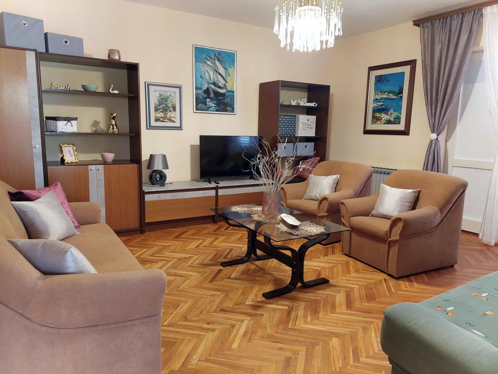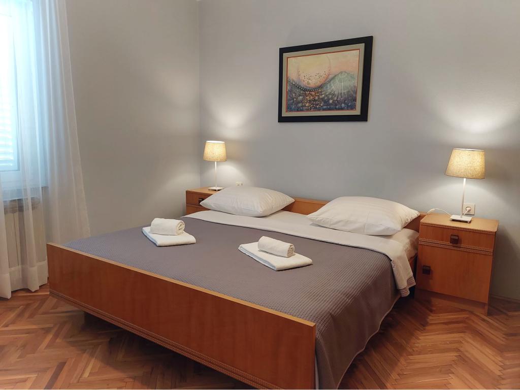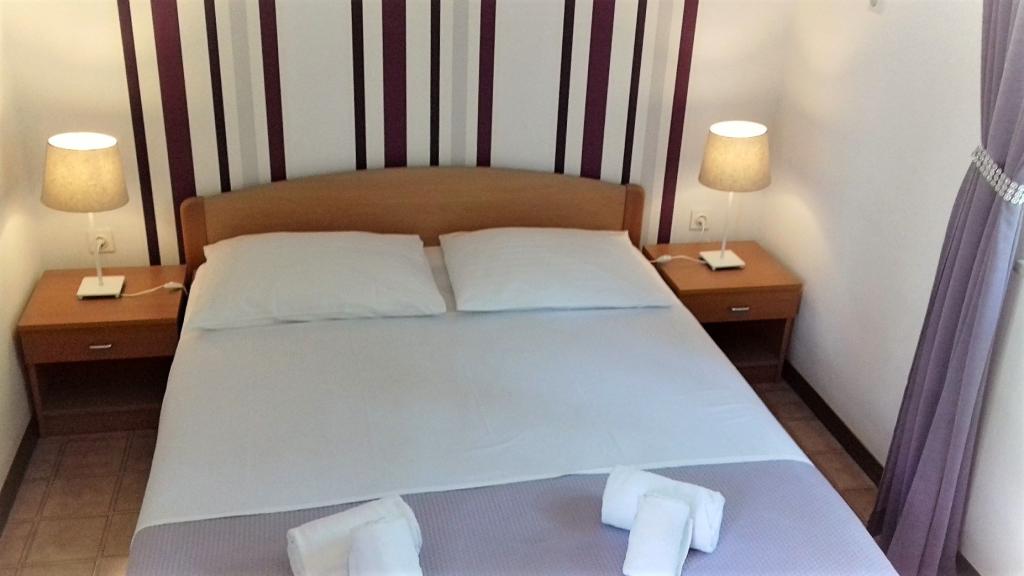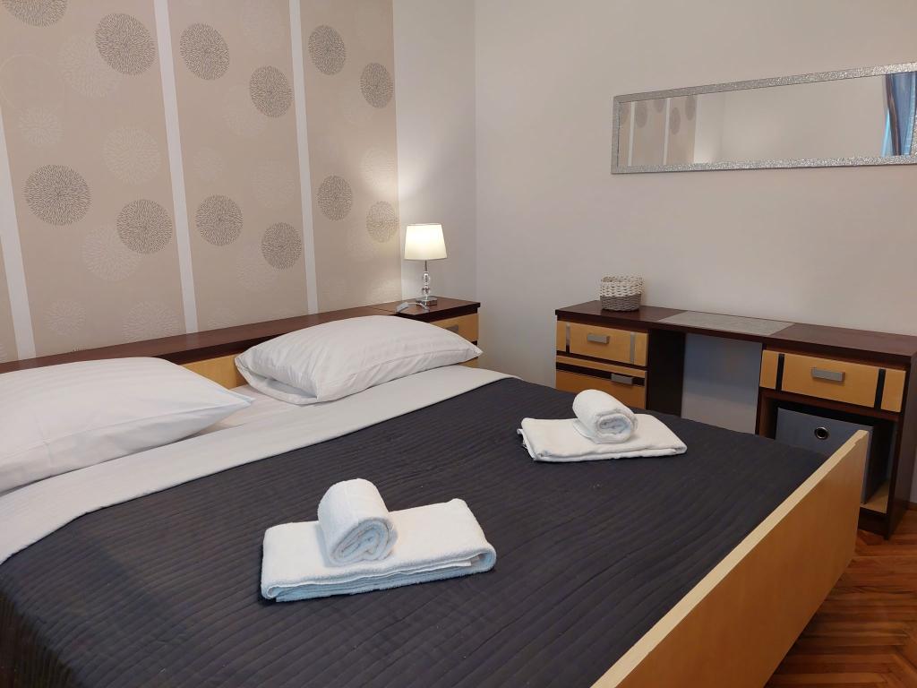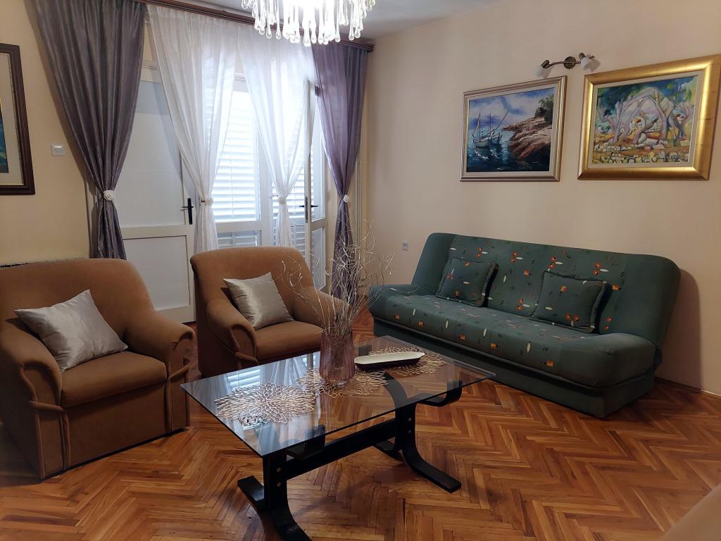 Smještajne jediniceMolimo uzmite u obzir da je rezervacije u terminu 01.03.-19.06. moguće napraviti na minimalno 4 noći, u terminu 20.06.-04.09. minimalno na 7 noći, te u terminu 05.09.-06.10. minimalno na 4 noći. Cijene će Vam se prikazati kada unesete željeni termin boravka i broj osoba. Cijene po sezonama možete vidjeti pod € cjenik (desno, ispod slika željene smještajne jedinice). Dodatni troškovi: prijava (5 EUR/osoba/jednokratno) i završno čišćenje (40 EUR/po boravku). Kućni ljubimci nisu dozvoljeni. Za fixnu rezervaciju potrebno je uplatiti akontaciju (putem banke) u iznosu od 30% ukupne cijene apartmana. Ostatak iznosa smještaja i prijava plaća se po dolasku. Ulazak u apartman je moguć nakon 15 sati, odlazak je do 10 sati.