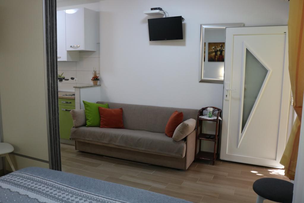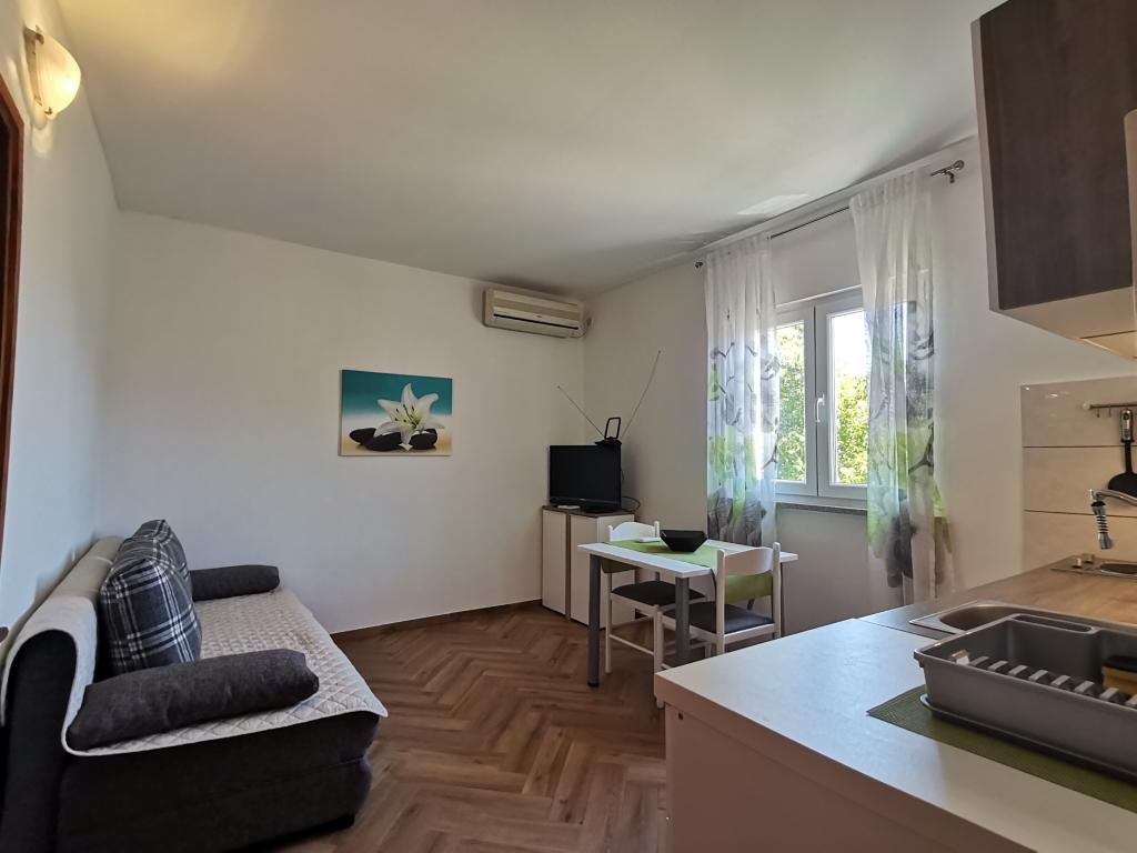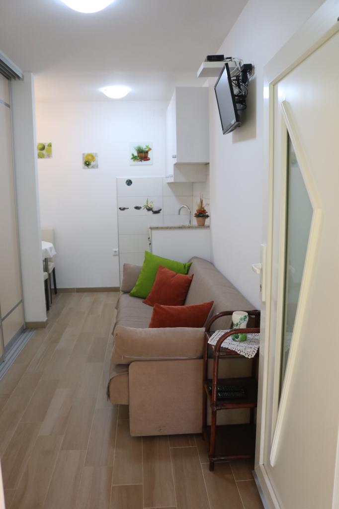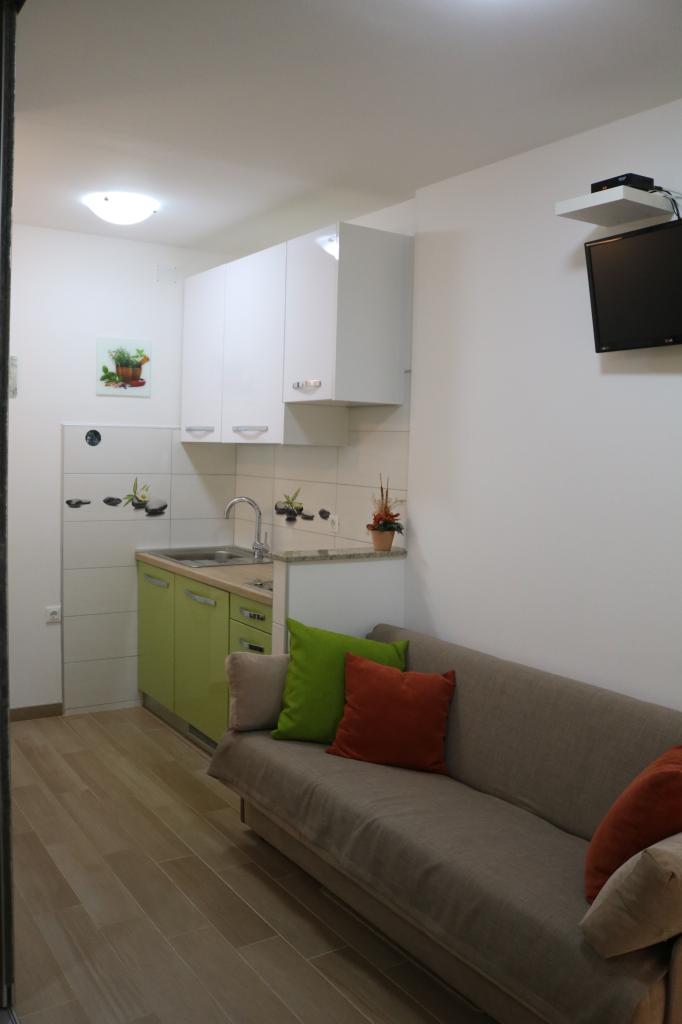 Pročitaj više Smještajne jedinicePrilikom rezervacije potrebno je uplatiti nepovratnu akontaciju u visini 30% cjelokupnog iznosa. Akontacija se plaća na temelju ponude. Ostatak cjelokupnog iznosa Vaše rezervacije je potrebno platiti pri dolasku u apartman, u gotovini. U cijenu noćenja je uključena prijava boravka u Turističku zajednicu, boravišna pristojba, korištenje klima uređaja, WIFI, parking i eco taxa. Check in je na dan dolaska od 14:00, a check out je na dan odlaska od 7:00 do 10:00. Prilikom rezervacije potrebno je navesti točan broj osoba koje će koristiti apartman. Turističkoj zajednici prijavljuju se sve osobe koje koriste apartman. Kućni red: Zabave nisu dozvoljene. Gosti ne smiju stvarati buku od 23:00 do 7:00. Turistička pristojba je uključena u cijenu.