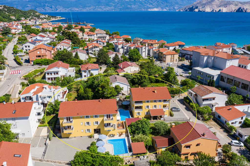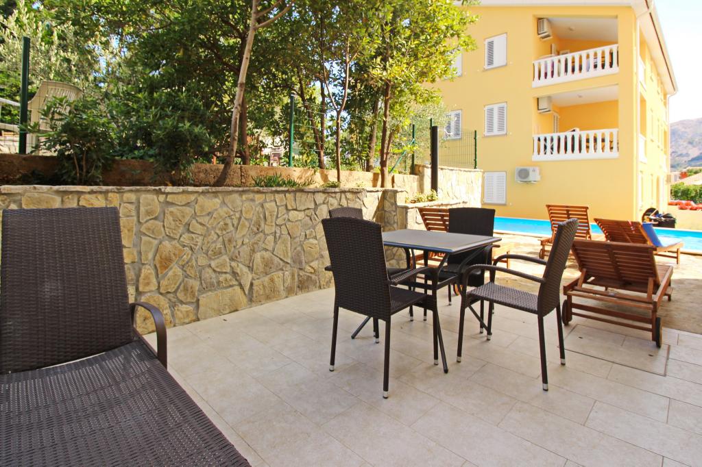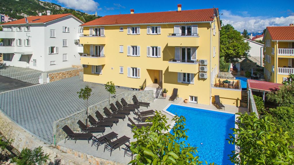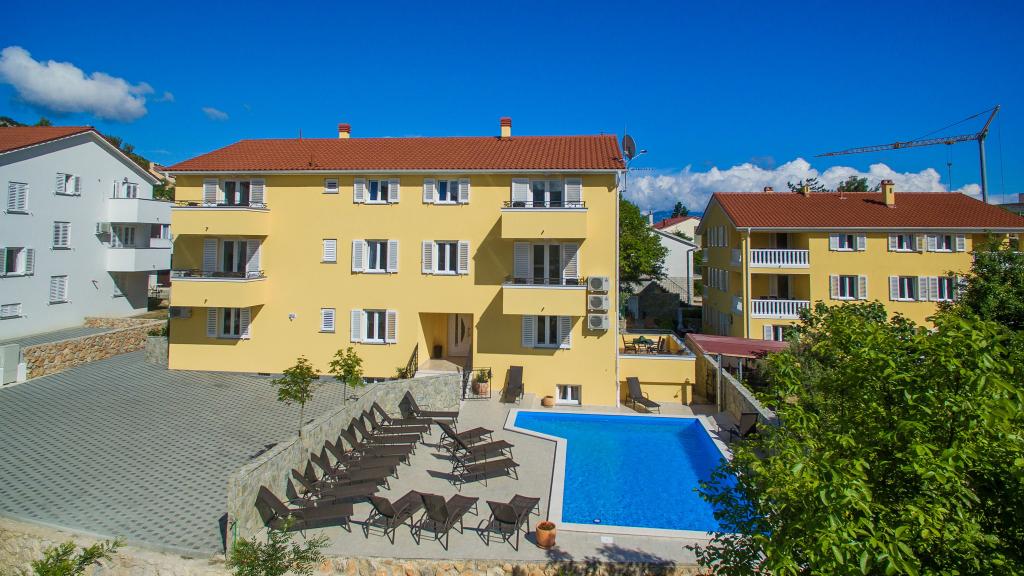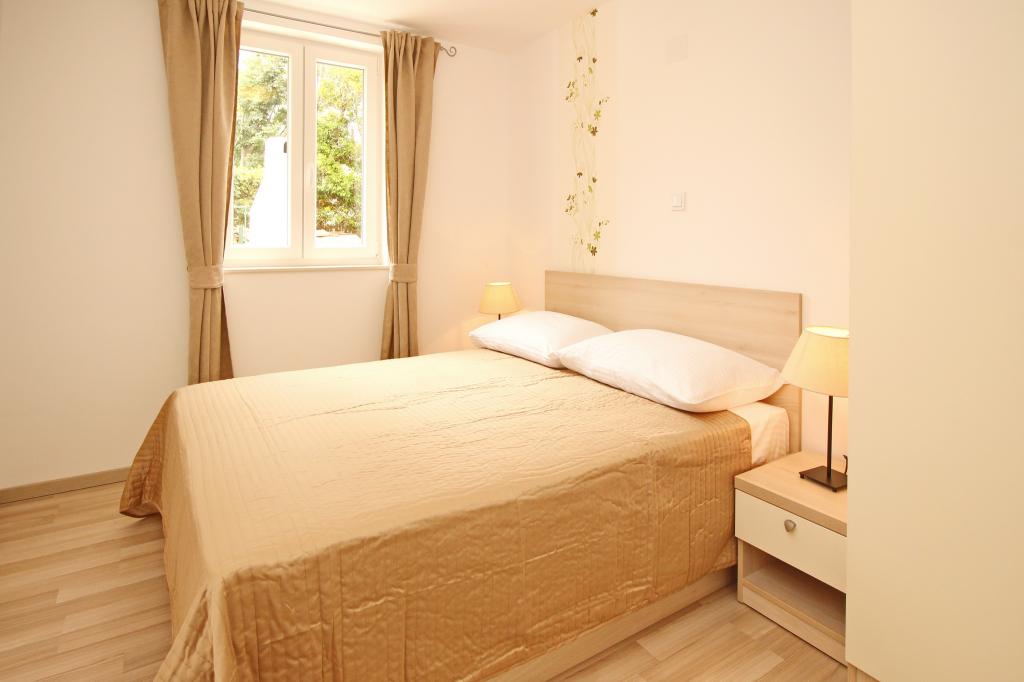 Moderno uređeni apartmani, udaljeni samo 300m od prekrasne Vele plaže, sa zajedničkim vanjskim bazenom i roštiljem. U kući se nalazi 13 apartmana, od kojih se 4 nalaze u suterenu. Apartmani u suterenu koriste zajedničku terasu (20m2) koja se nalazi na katu iznad. Svaka smještajna jedinica opremljena je perilicom suđa, perilicom rublja, klimom, Internetom i SAT-TV-om. Gostima na raspolaganju stoji jedno parkirno mjesto. Kućni ljubimci nisu dobrodošli.