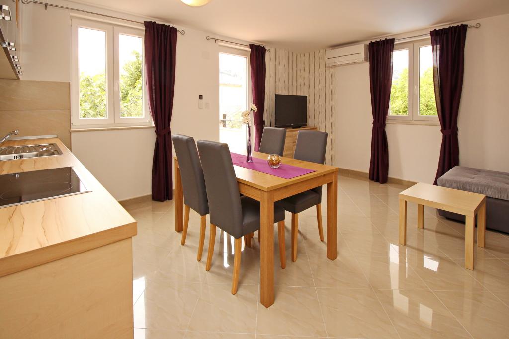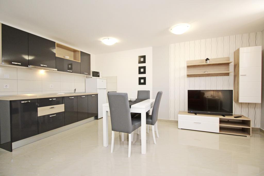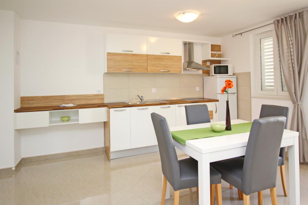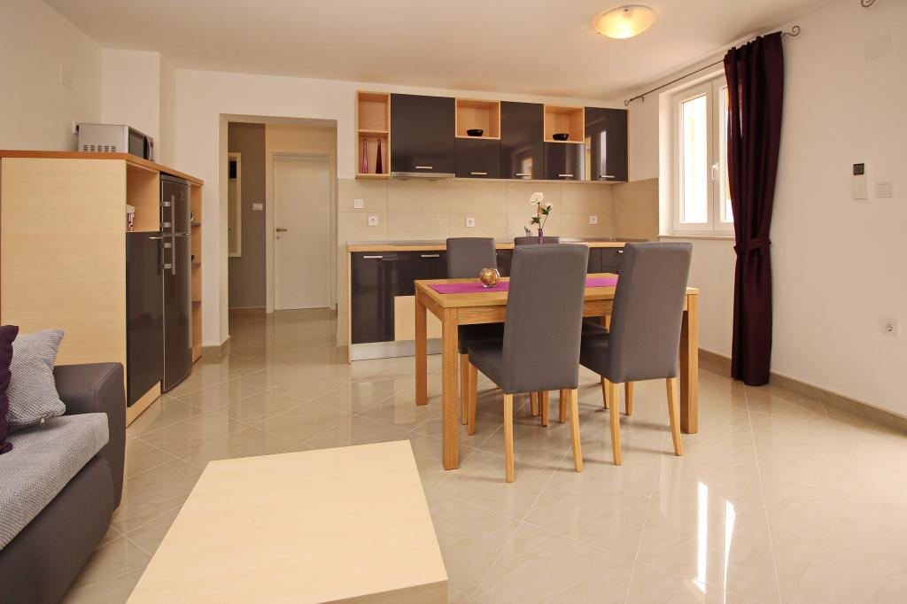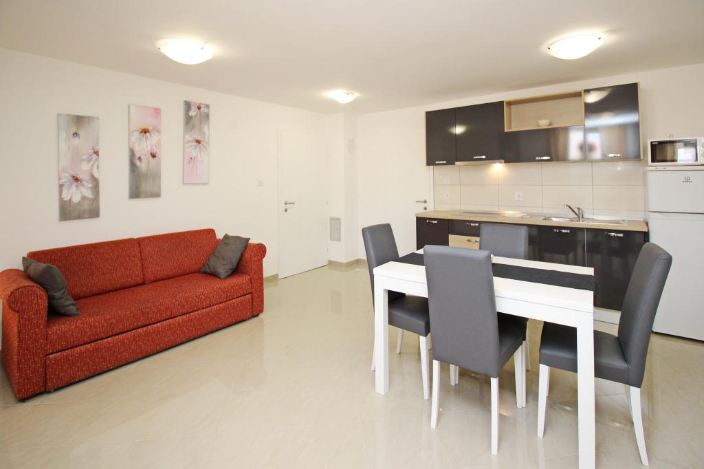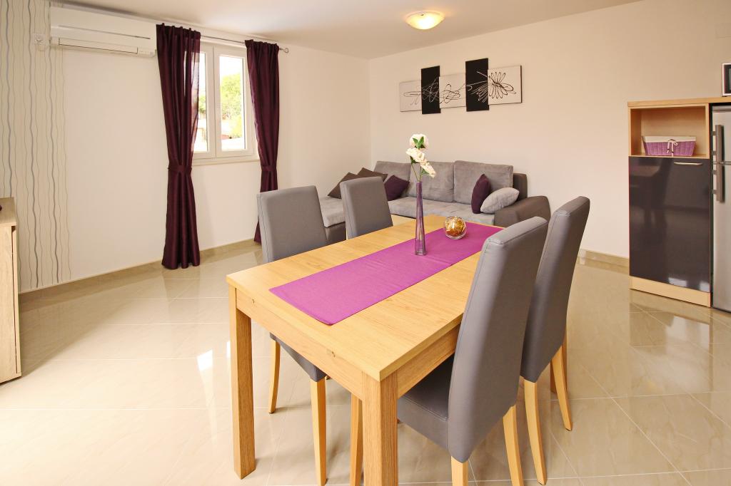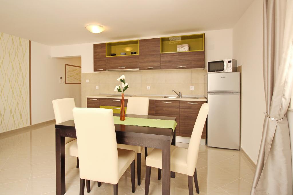 Pročitaj više Smještajne jediniceMolimo uzmite u obzir da je rezervacije u terminu 01.04.-20.06. moguće napraviti na minimalno 4 noći, u terminu 21.06.-05.09. minimalno na 7 noći, te u terminu 06.09.-06.10. minimalno na 4 noći. Cijene će Vam se prikazati kada unesete željeni termin boravka i broj osoba. Cijene po sezonama možete vidjeti pod € cjenik (desno, ispod slika željene smještajne jedinice). Dodatni troškovi: boravišna taxa (odrasli 2,20 EUR/osoba/noć; djeca 12-18 godina 1,10 EUR/osoba/noć) i prijava (5 EUR/osoba/jednokratno). Za fixnu rezervaciju potrebno je uplatiti akontaciju (putem banke) u iznosu od 30% ukupne cijene apartmana. Ostatak iznosa smještaja, taksa i prijava plaća se po dolasku. Ulazak u apartman je moguć nakon 14 sati, odlazak je do 10 sati.