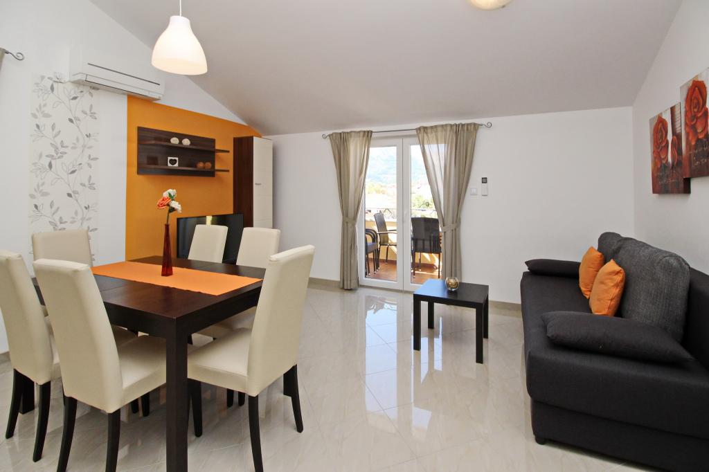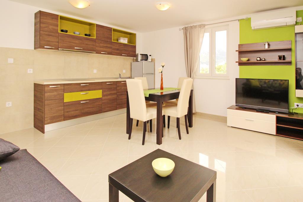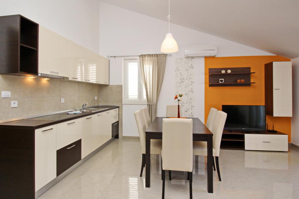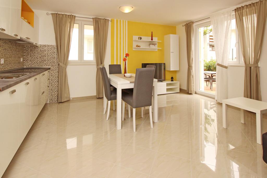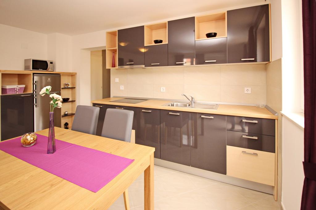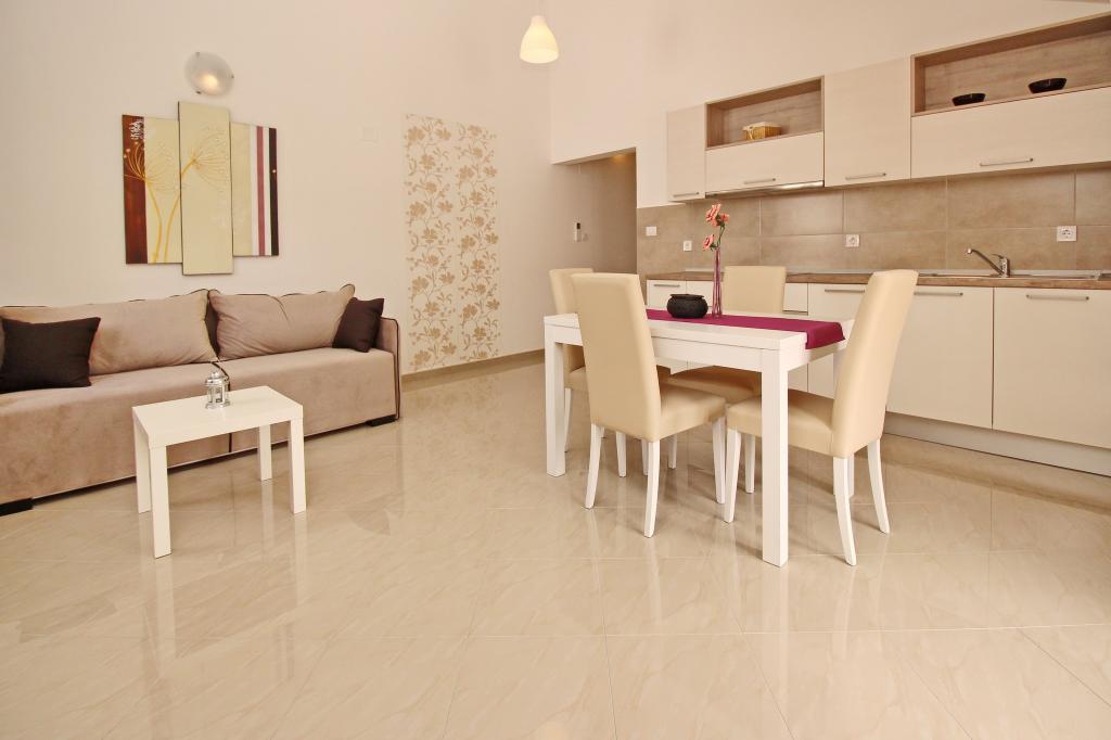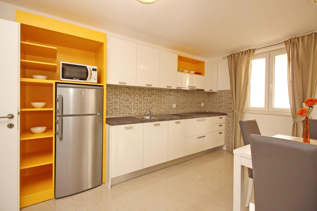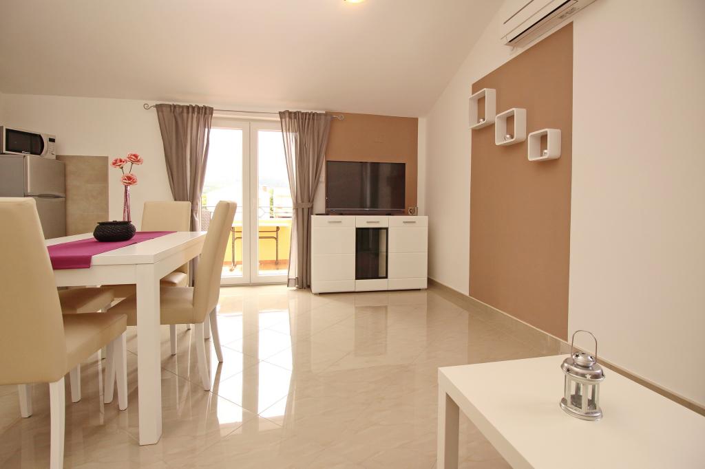 Pročitaj više Smještajne jediniceMolimo uzmite u obzir da je rezervacije u terminu 01.04.-20.06. moguće napraviti na minimalno 4 noći, u terminu 21.06.-05.09. minimalno na 7 noći, te u terminu 06.09.-06.10. minimalno na 4 noći. Cijene će Vam se prikazati kada unesete željeni termin boravka i broj osoba. Cijene po sezonama možete vidjeti pod € cjenik (desno, ispod slika željene smještajne jedinice). Dodatni troškovi: boravišna taxa (odrasli 2,20 EUR/osoba/noć; djeca 12-18 godina 1,10 EUR/osoba/noć) i prijava (5 EUR/osoba/jednokratno). Za fixnu rezervaciju potrebno je uplatiti akontaciju (putem banke) u iznosu od 30% ukupne cijene apartmana. Ostatak iznosa smještaja, taksa i prijava plaća se po dolasku. Ulazak u apartman je moguć nakon 14 sati, odlazak je do 10 sati.