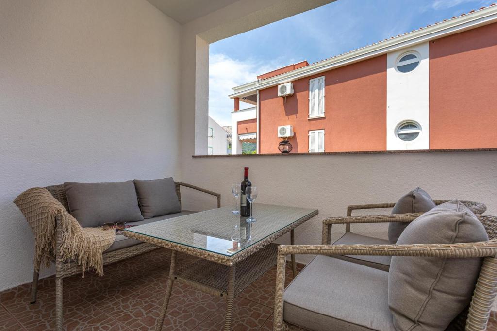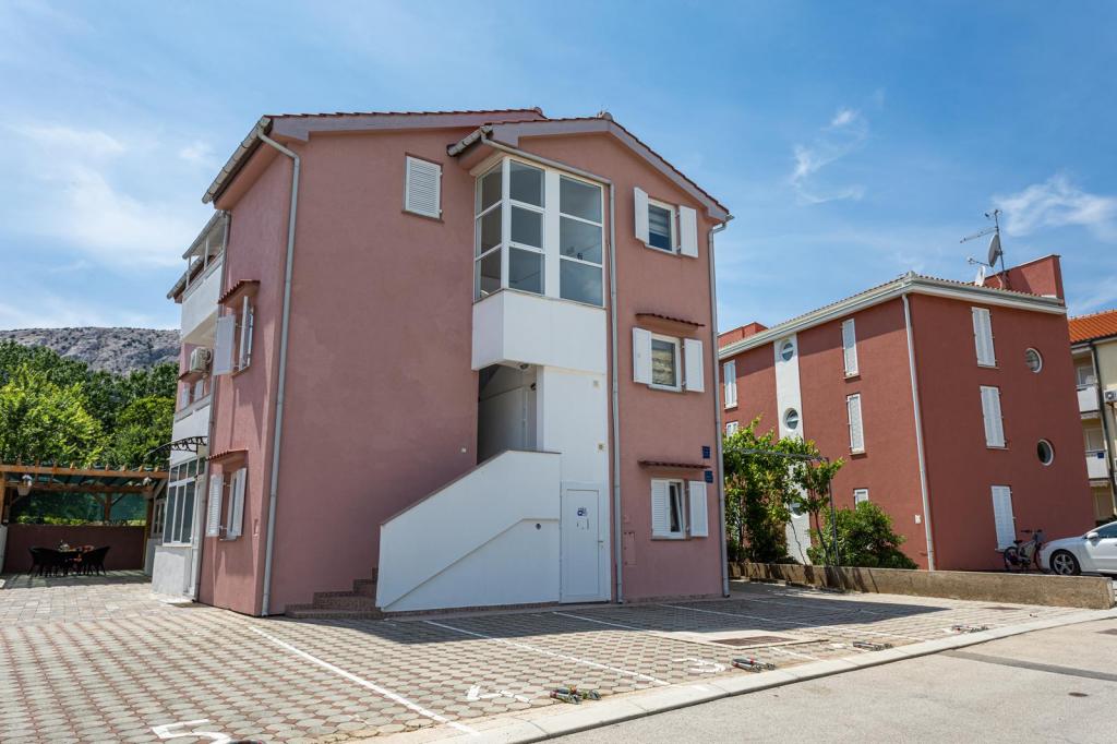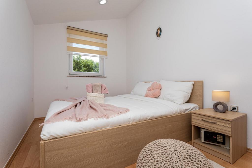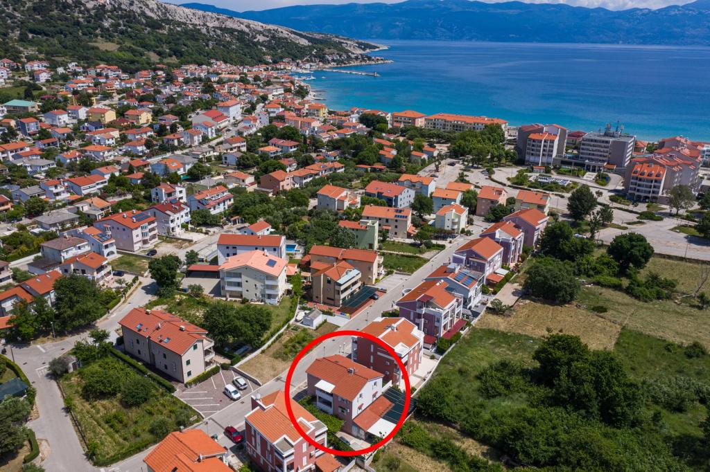 Apartmani se nalaze u mirnoj ulici, a udaljeni su oko 350 metara do plaže i do centra. Apartman s dvije spavaće sobe nalazi se u prizemlju i ima terasu dok se jednosobni apartmani nalaze na 1 i 2 katu i imaju balkon. Ispred kuće je parkiralište za svaki apartman. Apartmani su klimatizirani, imaju wifi.