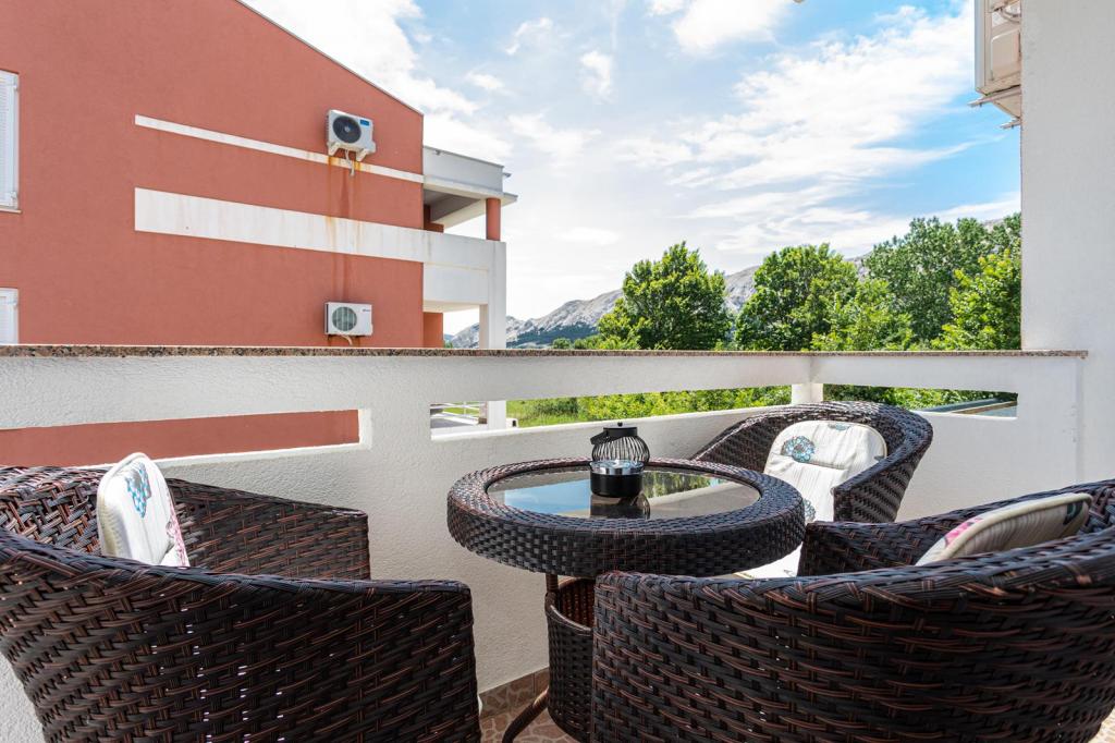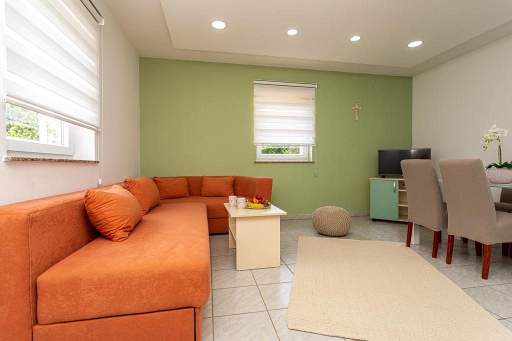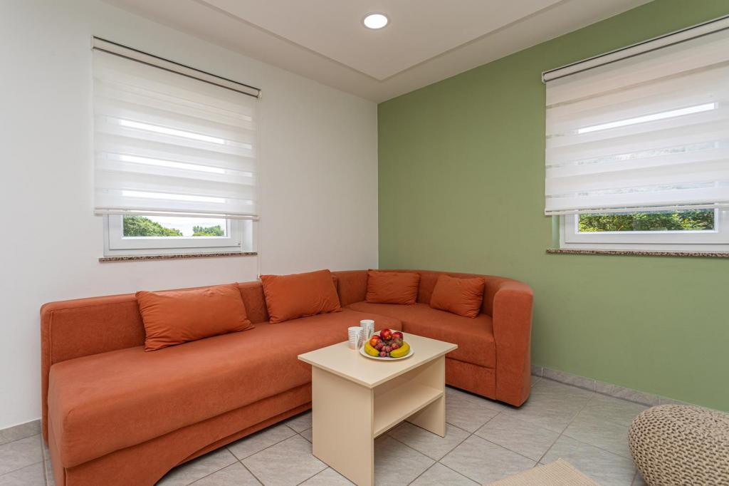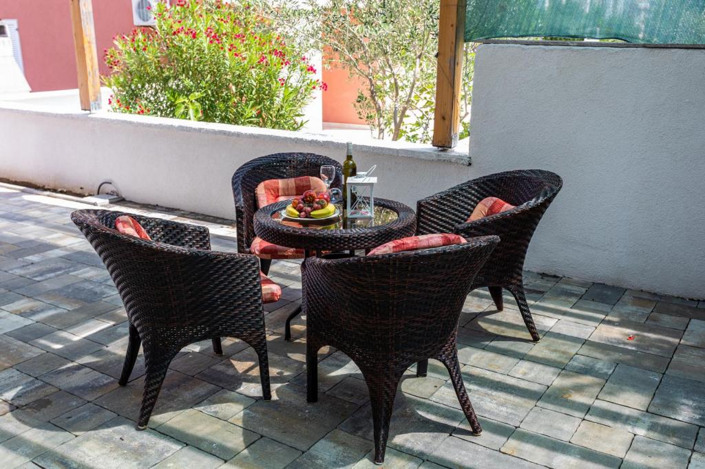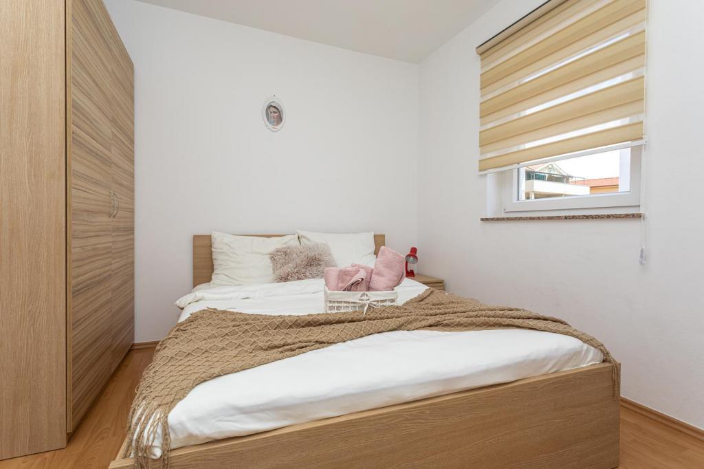 Apartmani se nalaze u mirnoj ulici, a udaljeni su oko 350 metara do plaže i do centra. Apartman s dvije spavaće sobe nalazi se u prizemlju i ima terasu dok se jednosobni apartmani nalaze na 1 i 2 katu i imaju balkon. Ispred kuće je parkiralište za svaki apartman. Apartmani su klimatizirani, imaju wifi.