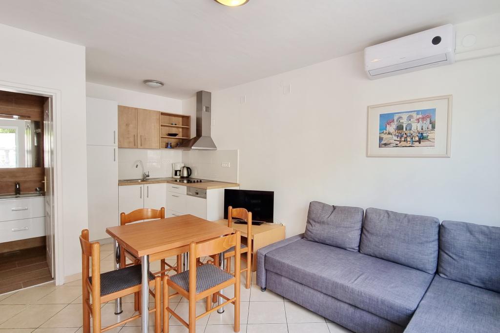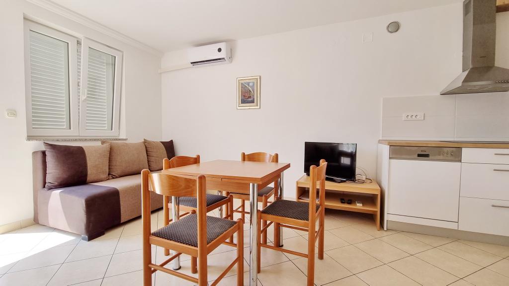 Smještajne jediniceMolimo uzmite u obzir da je rezervacije u terminu 01.03.-19.06. moguće napraviti na minimalno 4 noći, u terminu 20.06.-04.09. minimalno na 7 noći, te u terminu 05.09.-06.10. minimalno na 4 noći. Cijene će Vam se prikazati kada unesete željeni termin boravka i broj osoba. Cijene po sezonama možete vidjeti pod € cjenik (desno, ispod slika željene smještajne jedinice). Dodatni troškovi: prijava (5 EUR/osoba/jednokratno). Kućni ljubimci - dozvoljeni - na upit - (10 EUR/ ljubimac/ noć) Za fixnu rezervaciju potrebno je uplatiti akontaciju (putem banke) u iznosu od 30% ukupne cijene apartmana. Ostatak iznosa smještaja i prijava plaća se po dolasku. Ulazak u apartman je moguć nakon 14 sati, odlazak je do 10 sati.