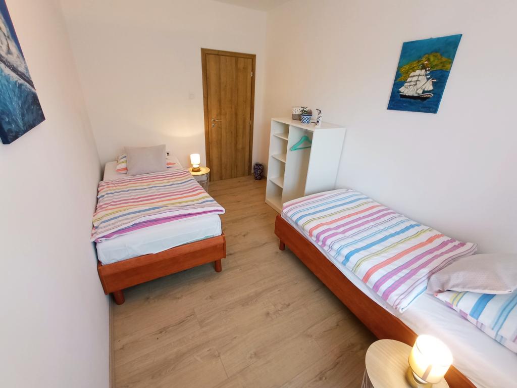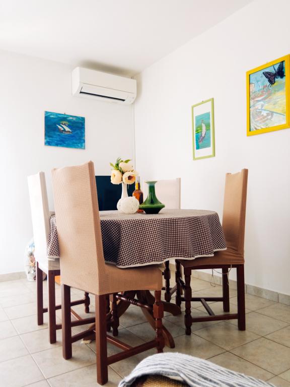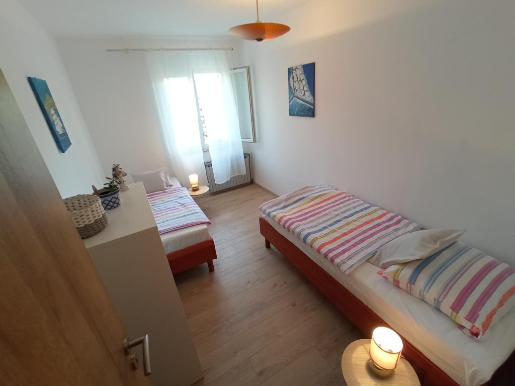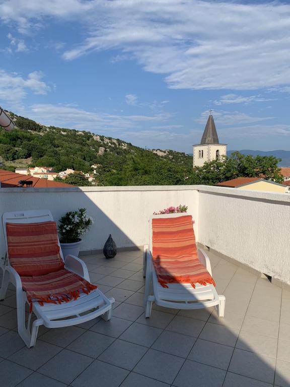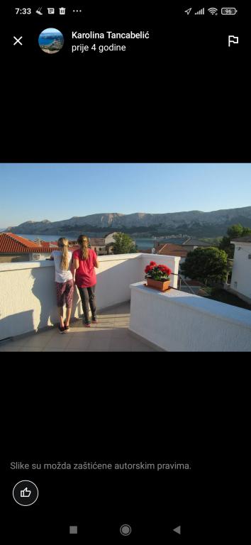 Smještajni objekt nalazi se u centru , 3 min hoda do glavne ulice, 5 min do plaže, dućana, pekare, mesnice, restorana. Centar, a opet miran predio sa parkingom, WiFi, klima. Gosti mogu uživati u našoj najljepšoj šljunčanim plaži na Jadran, u šetnicama uz more, ali isto tako u planinarenju ( 30 -tak označenih staza od 2-12 km) jer Baška se nalazi u kotlini, okolo su zanimljiva, kršovita, brda, bogata ljekovitim biljem kao šta je kadulja, smilje. Brda su pogotovo prekrasna u lipnju dok cvate brnista, a zrakom se širi njen opojan miris. Zaljubljenici u biciklizam neće požaliti ako posjete ovaj kraj. Za njih ima također označenih staza Svaki dan isplovljavaju izletnički brodovi koji turiste voze na susjedne otoke ( Goli otok, Grgur, Rab). Znači nikad nije dosadno. Tko jednom posjeti Bašku, uvijek se vraća i svaki drugi lokalitet uspoređuje s njom. Bašku vrijedi posjetiti. Apartmani su jednostavni, funkcionalni i čisti. Za sve informacije stojimo vam na raspolaganju i uvijek ćemo pomoći.
