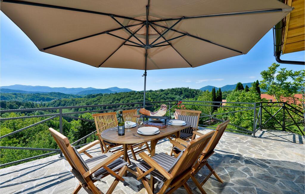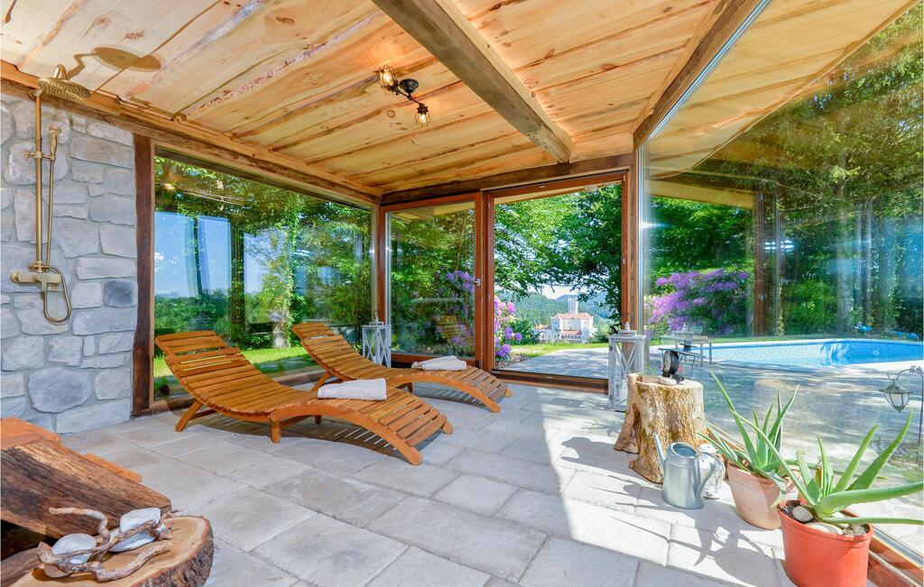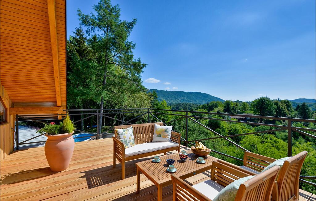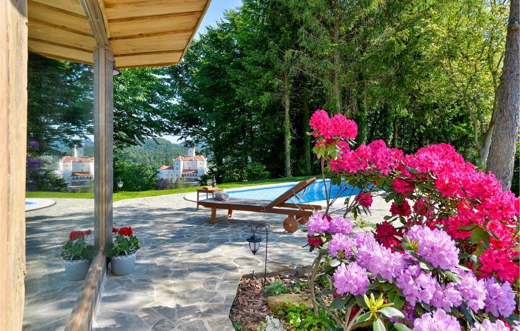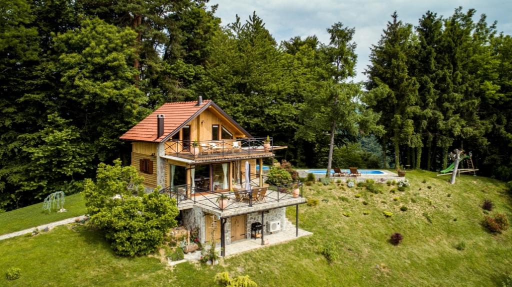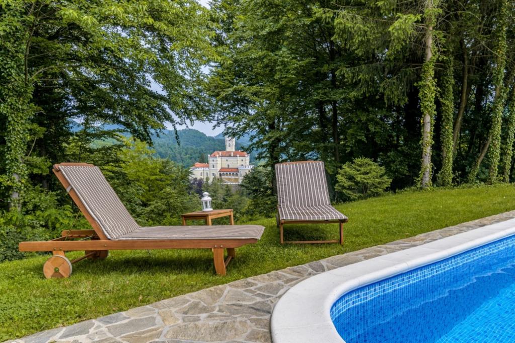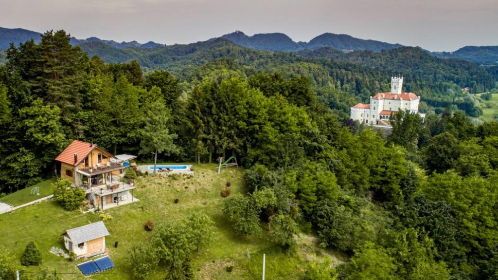 Na brijegu pored samog dvorca Trakošćan smjestila se ova prekrasna kuća za odmor s vbazenom i unutarnjim wellnessom . Kuću najviše krasi njezina odlična pozicija, na brijegu s kojeg pogled seže na obližnji dvorac Trakošćan i njegovu park-šumu. Idealna je za odmor obitelji koja voli prirodu. U prizemlju se nalazi zatvoreni wellness s hidro masažom i saunom, što kuću čine idealnim odabirom u zimskom periodu, a u ljetnim danima osvježenje možete potražiti u vanjskom bazenu. U prizemlju kuće se smjestio dnevni boravak s kuhinjom, blagovaonicom i kupaonicom, a na katu su dvije spavaće sobe.