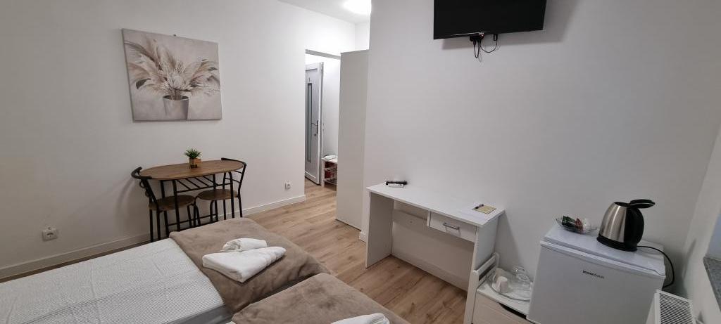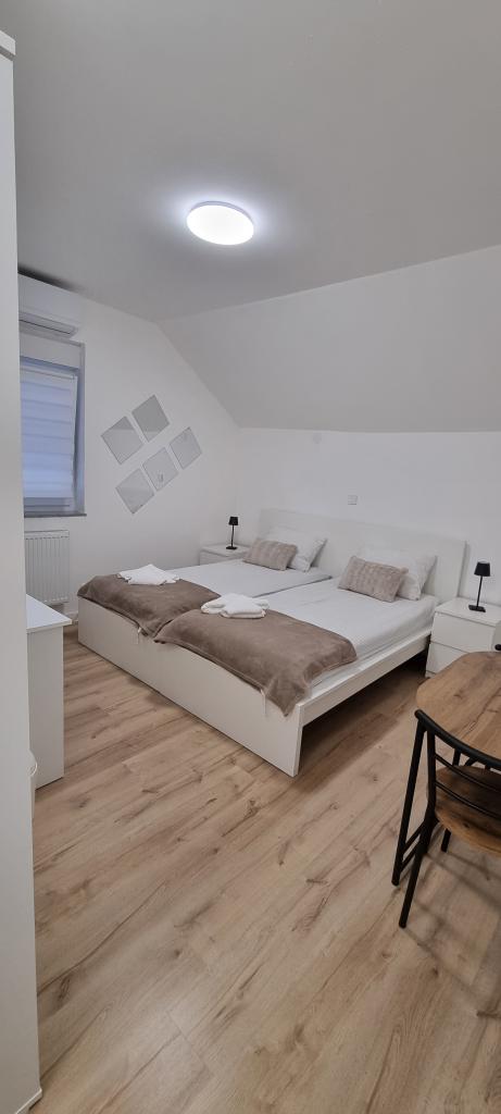 Što nudimo? Udobna dvokrevetna soba za najam u Belom Manastiru: Opremljena s dva udobna kreveta, idealna za odmor i opuštanje nakon istraživanja Baranje. Privatna kupaonica: Moderni sadržaji, topli tuš i svi potrebni higijenski potrepštini za vašu udobnost. Hladnjak: Pohranite hranu i piće uz sebe za dodatnu udobnost. Besplatan Wi-Fi: Ostajte povezani i surfajte internetom bez ikakvih smetnji. Klimatizacija: Održava savršenu temperaturu tijekom cijelog vašeg boravka. Radni stol: Idealno za poslovne putnike koji trebaju miran prostor za rad. IPTV: Uživajte u raznovrsnim kanalima iz cijelog svijeta i pratite omiljene programe i sadržaje. U hladnjaku će vas dočekati i piće dobrodošlice. U sklopu smještaja je kozmetički salon, te je moguće dogovoriti uz smještaj i šminkanje ili druge kozmetičke usluge.