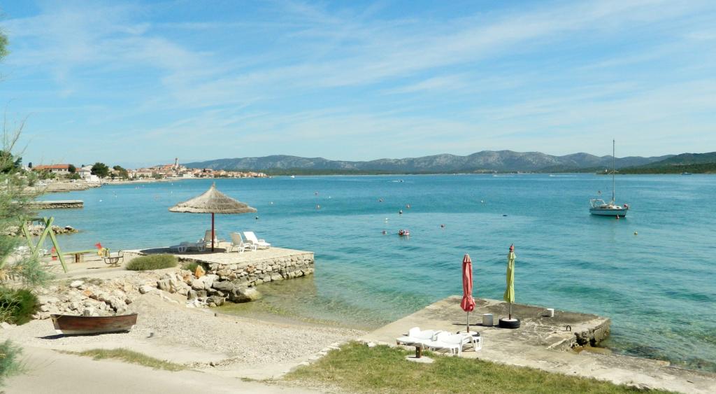 Apartman je pogodan za smještaj dva bračna para ili obitelj od četiri člana. Apartman se nalazi na prvom katu obiteljske kuće, prvi red do mora u mjestu Betina. Apartman je komforan i prostran. Sastoji se od dvije spavače sobe, dnevnog boravaka, kuhinja i kupaonice. Svaka soba ima dva ležaja (bračni krevet). U dnevnom boravku se nalazi trosjed, tv prijemnik i bežični pristup internetu. Kuhinja je opremljena za kuhanje obroka (peć, pećnica, frižider, espresso aparat za kavu, grijač vode, toster, mikser, mikrovalna pećnica, pribor za jelo i kuhanje). Svaka prostorija ima zasebnu klimu . Iz dnevnog boravak je izlaz na veliku terasu s pogledom prema moru. U dvorištu iza kuće nalazi se prostor za parkiranje osobnog automobila, vanjski tuš za tuširanje, vanjski roštilj. Ispred kuće se nalazi plaža za kupanje i sunčanje, suncobrani i ležaljke za sunčanje. Mjesto Betina je udaljena od apartmana oko 800 metara,10 minuta lagane šetnje uz more.