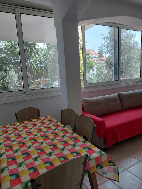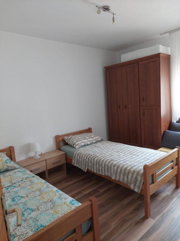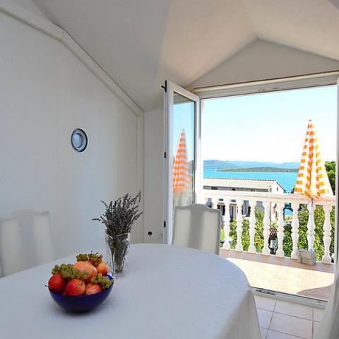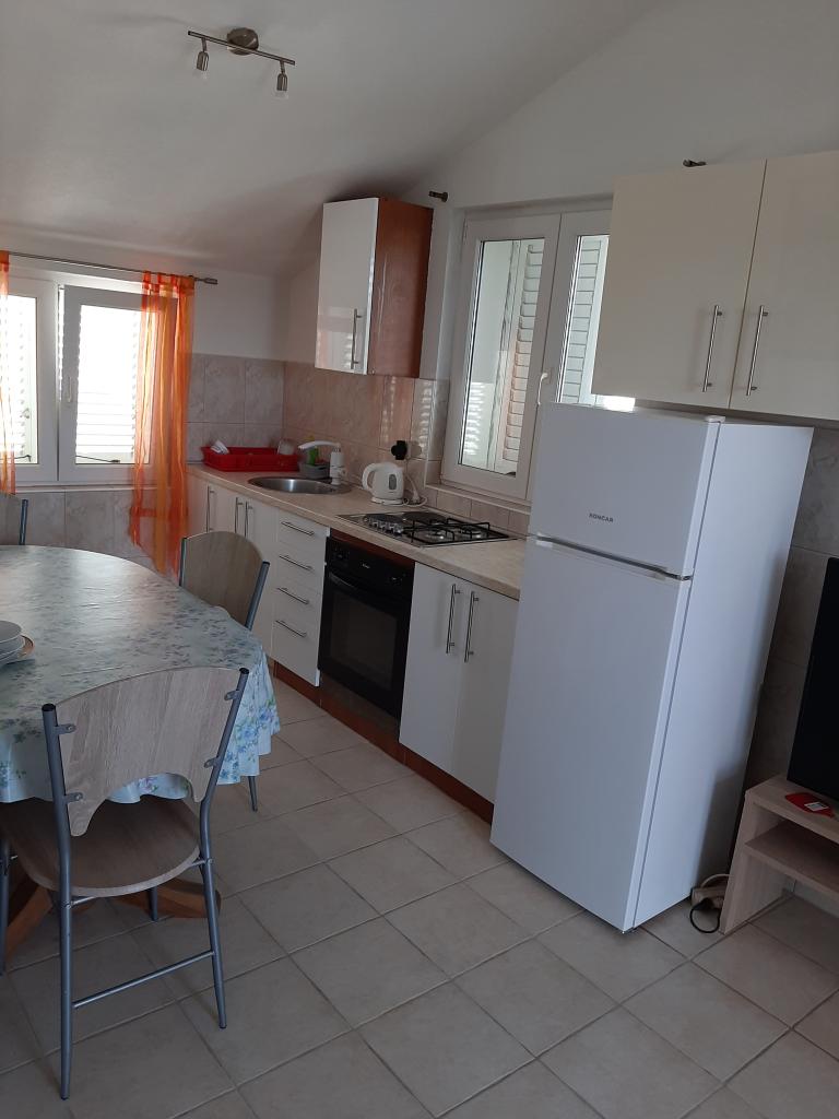 Apartmani u sastavu obiteljske kuće. Nalazi se u drugom redu do moraa. Apartmani su suvremeno opremljeni. Udaljenost do plaže 100m, imaju tri veza za brodove. U blizini je trgovina, marina, benzinska pumpa, restorani. Opremljeni su sa TVC-TVSAT, Wi-Fi internet. U dvorištu ugradjen kamena tuš kabina, gril. Do centra 15 minuta hoda.