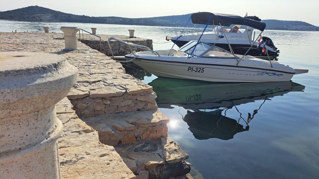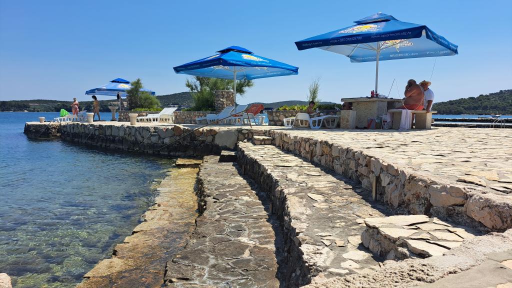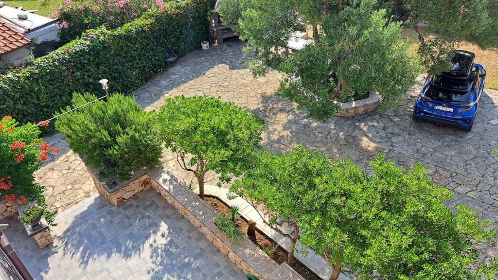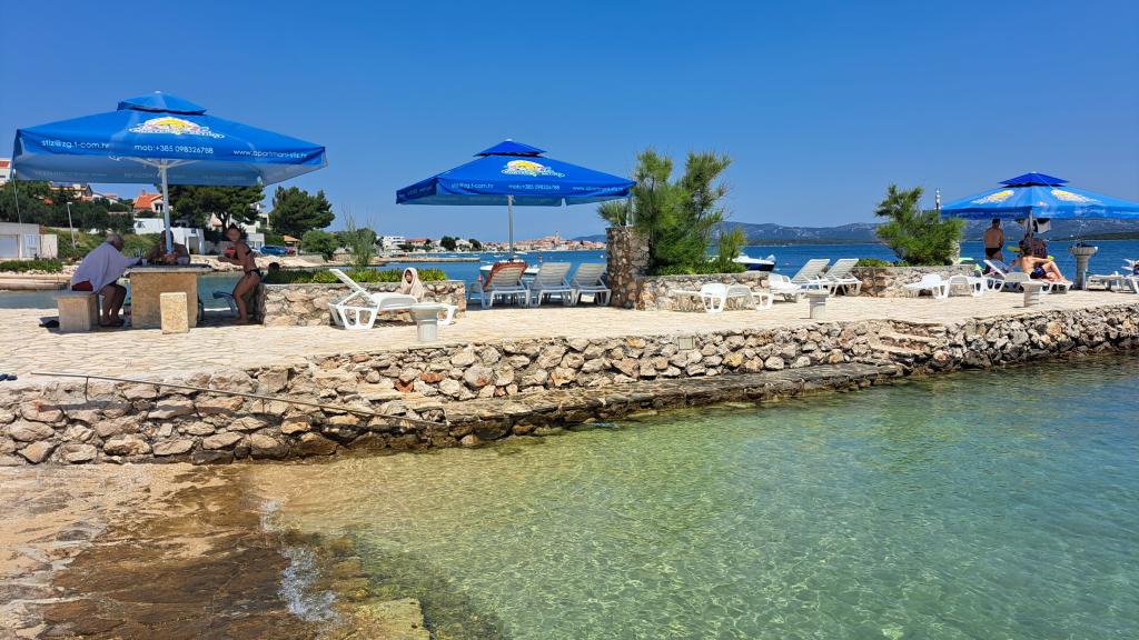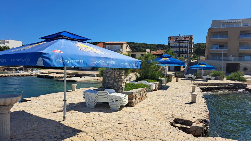 Uređena plaža i sadržaji za potpuni užitak! Ne morate tražiti idealno mjesto za kupanje – uređena plaža nalazi se odmah ispred naše kuće! Plaža je popločana prirodnim kamenom, a u moru se nalazi sitni pijesak koji omogućava jednostavan i siguran ulazak u vodu. Na plaži možete besplatno koristiti ležaljke i velike suncobrane za opuštanje uz more. Uz plažu je smještena velika garaža s WC-om, gdje možete odložiti svoju opremu poput SUP, kajaka, dasaka za jedrenje, luftić... Za goste koji dolaze s brodom (do 7 m), nudimo mogućnost porinuća direktno na našoj plaži. Brod možete privezati uz obalu ili na bovu, dok je osiguran i veliki parking za auto i prikolicu unutar ograđenog dvorišta. U našem zelenom vrtu čeka Vas veliki roštilj s kompletnim priborom za pripremu ukusnih obroka, koji Vam stoji na raspolaganju. Uz to, na dolasku vas očekuje piće dobrodošlice.