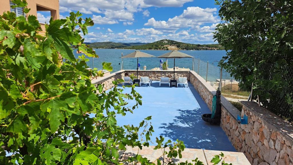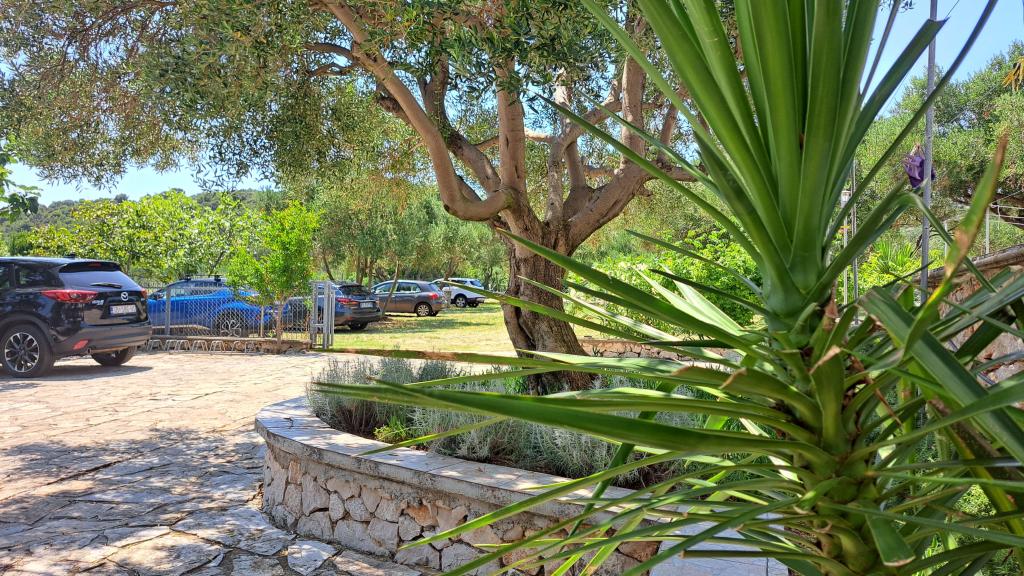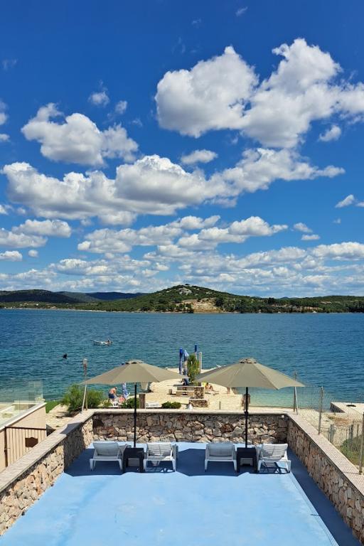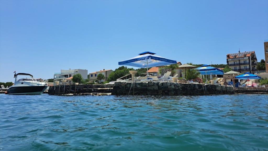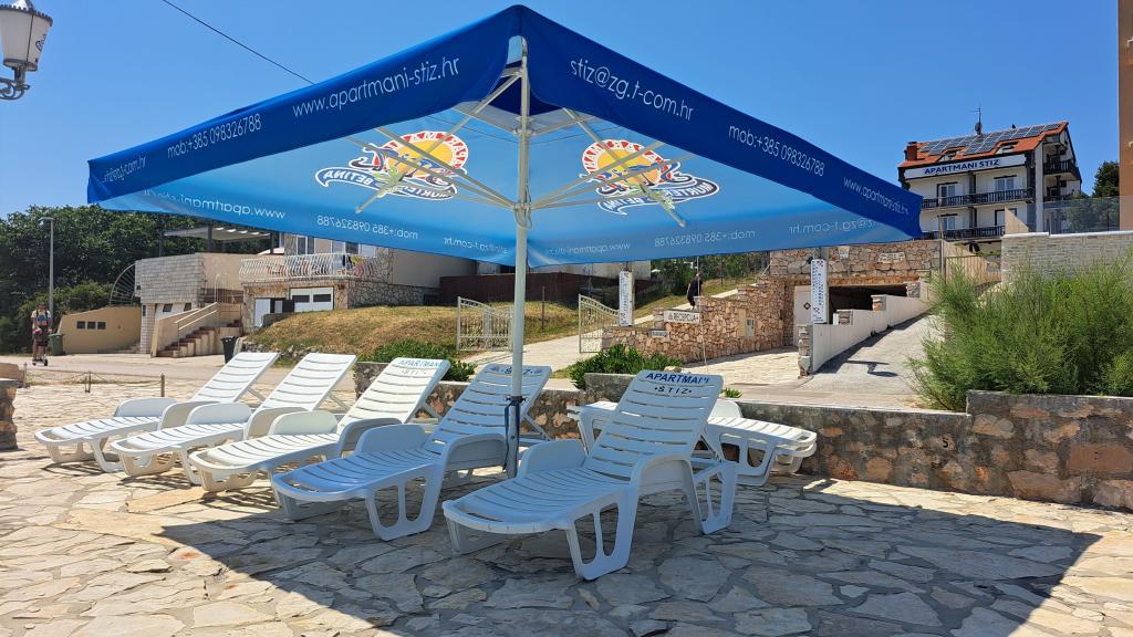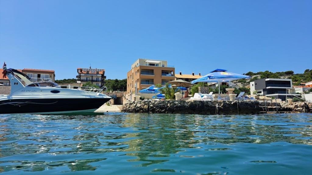 Uređena plaža i sadržaji za potpuni užitak! Ne morate tražiti idealno mjesto za kupanje – uređena plaža nalazi se odmah ispred naše kuće! Plaža je popločana prirodnim kamenom, a u moru se nalazi sitni pijesak koji omogućava jednostavan i siguran ulazak u vodu. Na plaži možete besplatno koristiti ležaljke i velike suncobrane za opuštanje uz more. Uz plažu je smještena velika garaža s WC-om, gdje možete odložiti svoju opremu poput SUP, kajaka, dasaka za jedrenje, luftić... Za goste koji dolaze s brodom (do 7 m), nudimo mogućnost porinuća direktno na našoj plaži. Brod možete privezati uz obalu ili na bovu, dok je osiguran i veliki parking za auto i prikolicu unutar ograđenog dvorišta. U našem zelenom vrtu čeka Vas veliki roštilj s kompletnim priborom za pripremu ukusnih obroka, koji Vam stoji na raspolaganju. Uz to, na dolasku vas očekuje piće dobrodošlice.