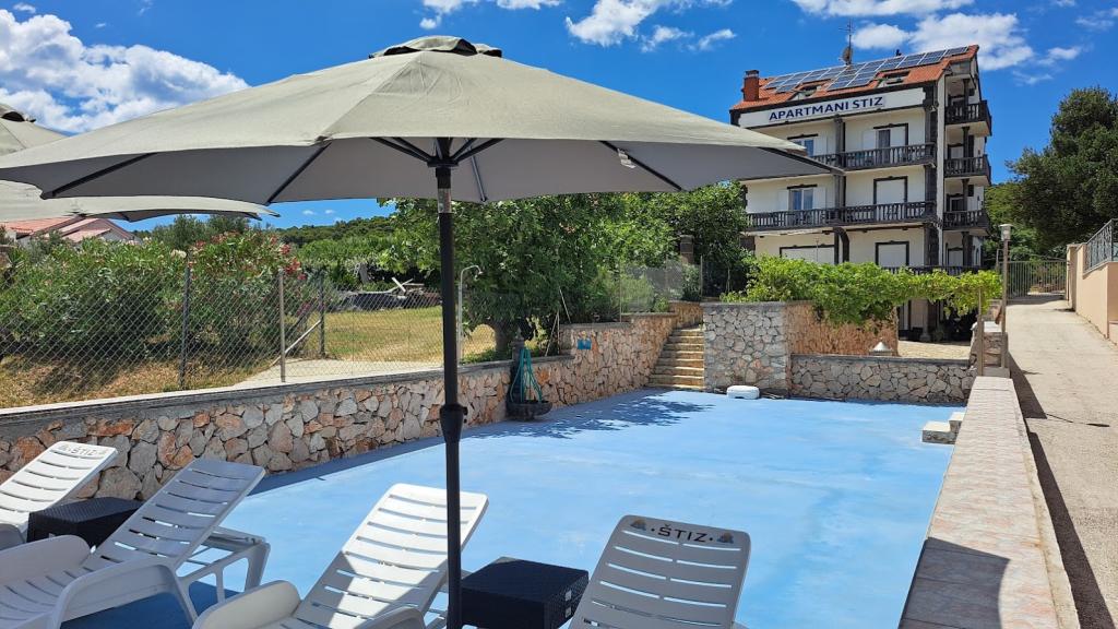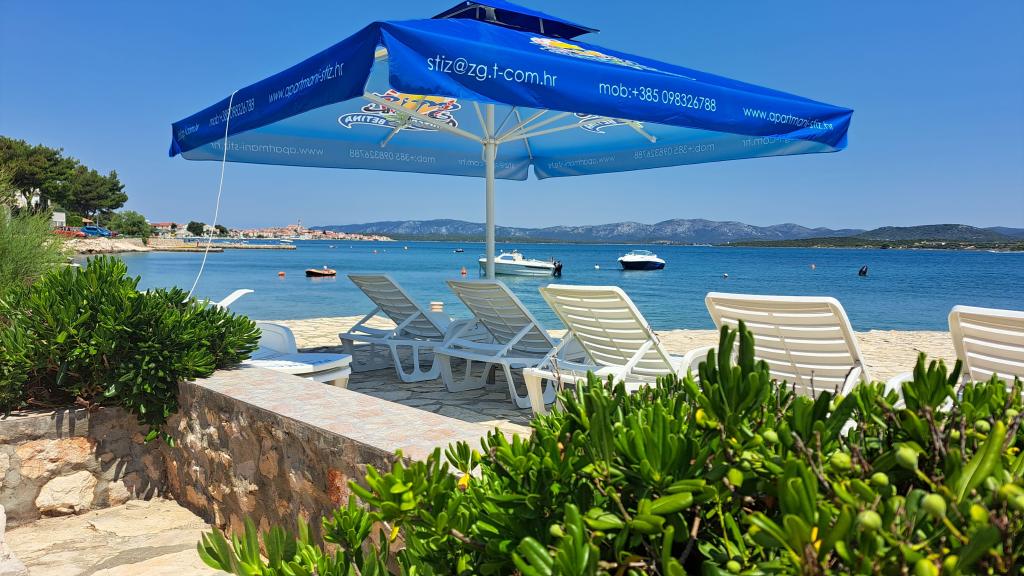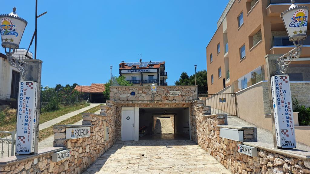 Apartmanska kuća ŠTIZ-BETINA – Vaš idealan odmor uz more! Smještena direktno uz obalu u mjestu Betina na otoku Murteru, apartmanska kuća ŠTIZ-BETINA nudi savršeno okruženje za opuštajući odmor. Naša uređena kamena plaža opremljena je ležaljkama i velikim suncobranima koje možete besplatno koristiti. Dolazite s brodom? Nudimo mogućnost porinuća i vez za plovila do 7 metara, uz osigurani parking za prikolicu unutar ograđenog dvorišta. Lokacija: Kuća se nalazi 1,5 km od centra Betine, gdje ćete pronaći staru gradsku jezgru, trgovine, kafiće, restorane i glavnu gradsku plažu. Otok Murter lako je dostupan automobilom jer je povezan s kopnom pokretnim mostom, koji se diže dva puta dnevno. U ponudi imamo: šest apartmana (2+2) i četiri studija (2+1). Svaka smještajna jedinica uključuje: potpuno opremljenu kuhinju, klima uređaj, besplatan Wi-Fi, SAT HDTV ravnog ekrana, WC s tušem, posteljinu i ručnike. Svi apartmani i studiji imaju prekrasan pogled na more i vrt.