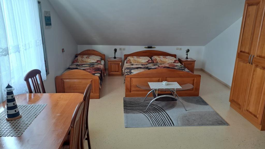 Pročitaj više Smještajne jediniceNadoplata za kućne ljubimce (primamo samo male pasmine pasa): 5 € / noć u lipnju i rujnu, 7 € / noć u srpnju i kolovozu. Vrijeme dolaska: od 14:00 sati. Vrijeme odlaska: do 10:00 sati. Kako biste osigurali svoju rezervaciju, potrebno je uplatiti avans u iznosu od 20 % ukupne cijene smještaja. Avans služi kao jamstvo vaše rezervacije. Ostatak iznosa plaćate gotovinom (Euro) na dan dolaska. Bankovni račun za plaćanje avansa: Ime i prezime: GORAN-SINIŠA ŠTIMAC Adresa: Hrvatska, 10000 Zagreb, Kustošijanska ulica 84 IBAN: HR 90 2340 0093 1108 6000 1 SWIFT (BIC) adresa: PBZGHR2X Banka: PRIVREDNA BANKA ZAGREB d. d. Adresa: Račkoga 6, Hr-10000 Zagreb, Croatia Za dodatne informacije ili rezervaciju, kontaktirajte nas već danas i osigurajte svoje mjesto u ovom malom raju!