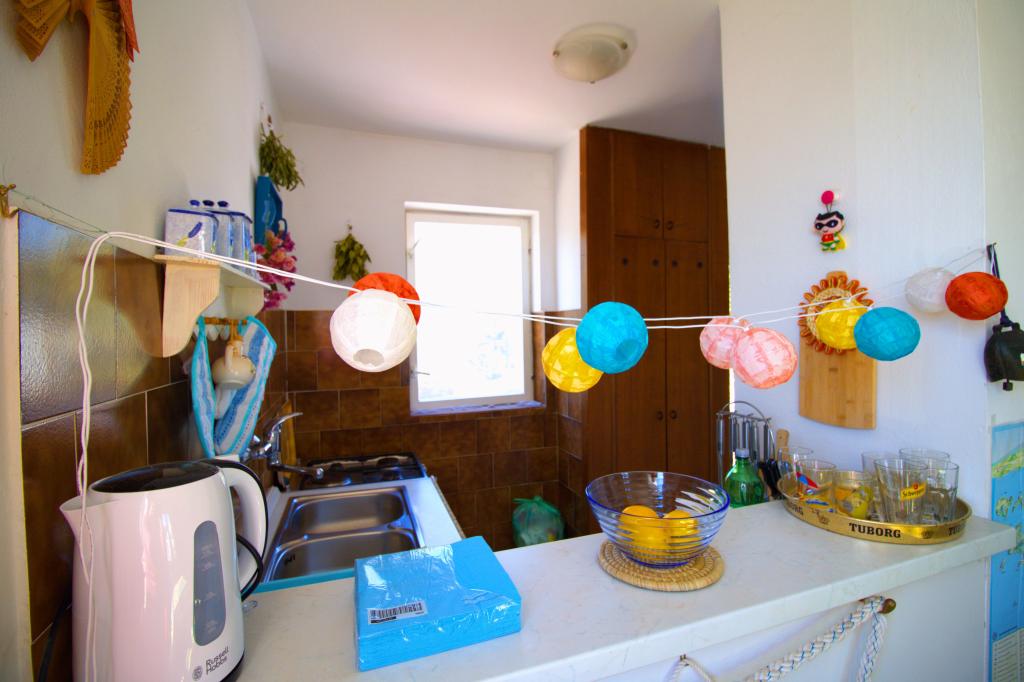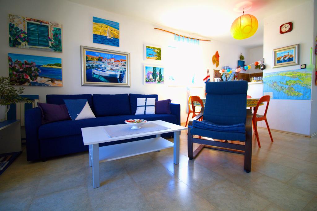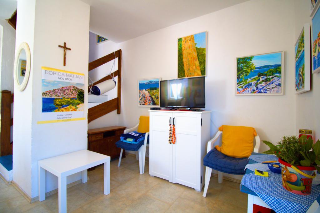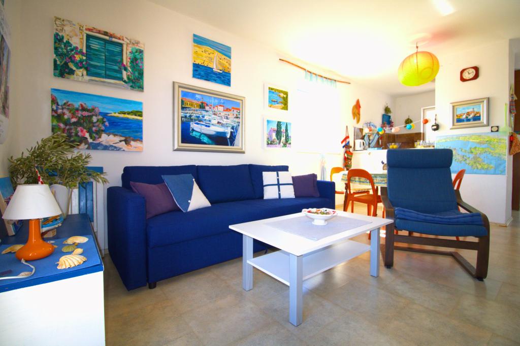Apartman - kuća za odmor je samostalan objekt. Kuća ima površinu od 80 m2. Ima tri spavaće sobe u kojima može spavati 5 odraslih osoba. Ima dnevni boravak koji se može koristiti za spavanje. Ima kupaonicu sa tuš-kadom. Površina Balkon/terase je 30 m2. Apartman se nalazi u prizemlju. Apartman je opremljen sa tv-om, pećnicom, besplatnim wifi internet priključkom, perilicom rublja. Parking je osiguran i uključen u cijenu. Apartman je oko 800 m. udaljen od centra mjesta a 20 m. od mora ili prve plaže u mjestu Betina. Kućni ljubimci su dozvoljeni uz dodatnu naknadu. Apartman se nalazi na odličnoj lokaciji uz more. Sa terase otvara se pogled na more i okolne otoke. Prva pješčana plaža "Plitka Vala" udaljena je samo 4 minute hoda. Trgovina i restoran udaljeni su 5 minuta hoda. Uvučena i mirna uvala "Kosirina" sa izrazito čistim morem udaljena je 18 minuta hoda. Centar mjesta udaljen je 20 minuta hoda.