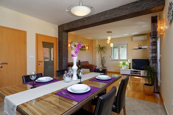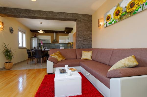 Apartman Adrian smješten je u Bibinju, približno 600 metara od plaže. U okviru ove moderno uređene smještajne jedinice na raspolaganju su terasa s pogledom na more i besplatni WiFi. Apartman uključuje klima-uređaj, prostor za sjedenje, TV ravnog ekrana s kabelskim programima i DVD uređaj. Također obuhvaća potpuno opremljenu kuhinju te kupaonicu s hidromasažnom kadom, sušilom za kosu i besplatnim kozmetičkim priborom. U sklopu apartmana Adrian gosti mogu koristiti vrt s opremom za roštilj. Također je dostupno besplatno privatno parkiralište. Zračna luka Zadar udaljena je 9 km, a usluga prijevoza na raspolaganju je uz nadoplatu.
