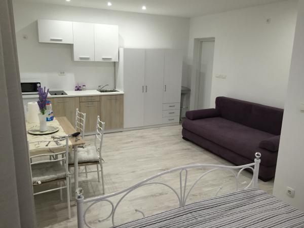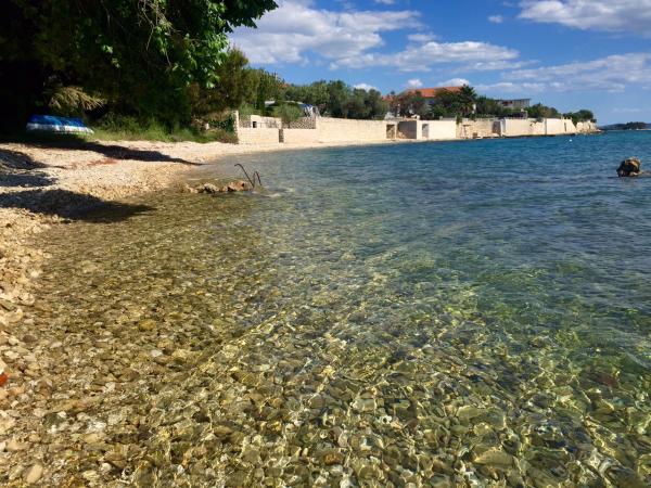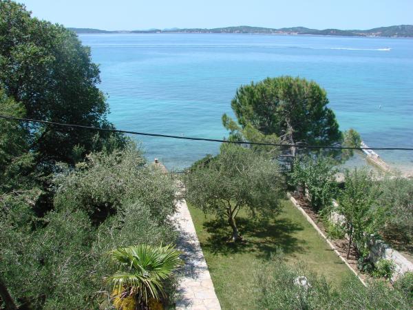 Kompletno namješten apartman u prizemlju kuće, prvi red do mora. Namijenjen za do 6 osoba. Sastoji se od 1 spavaće sobe s bračnim krevetom i 1 pomoćnim krevetom, velike kupaone i dnevnog boravka. U prostranom dnevnom boravku nalaze se 2 ležaja za do 4 osobe. Apartman se nalazi 10 m od mora i posjeduje svoju veliku terasu i dvorište sa uporabom roštilja, te zatvoreni privatni parking i vez za brod. Apartman je klimatiziran i ugodan, s televizijom, WIFI-om i perilicom posuđa. Posebnost ovog apartmana je u njegovoj lokaciji na posebno mirnom mjestu, okružen samo morem i prirodom što je pogodno, kako za mlade, tako za obitelj s djecom i zrelije osobe koje žele uživati u zasluženom odmoru.