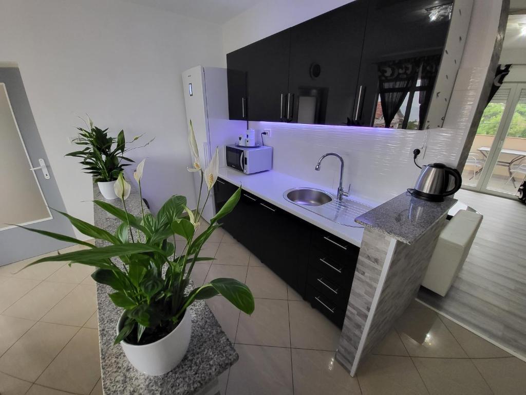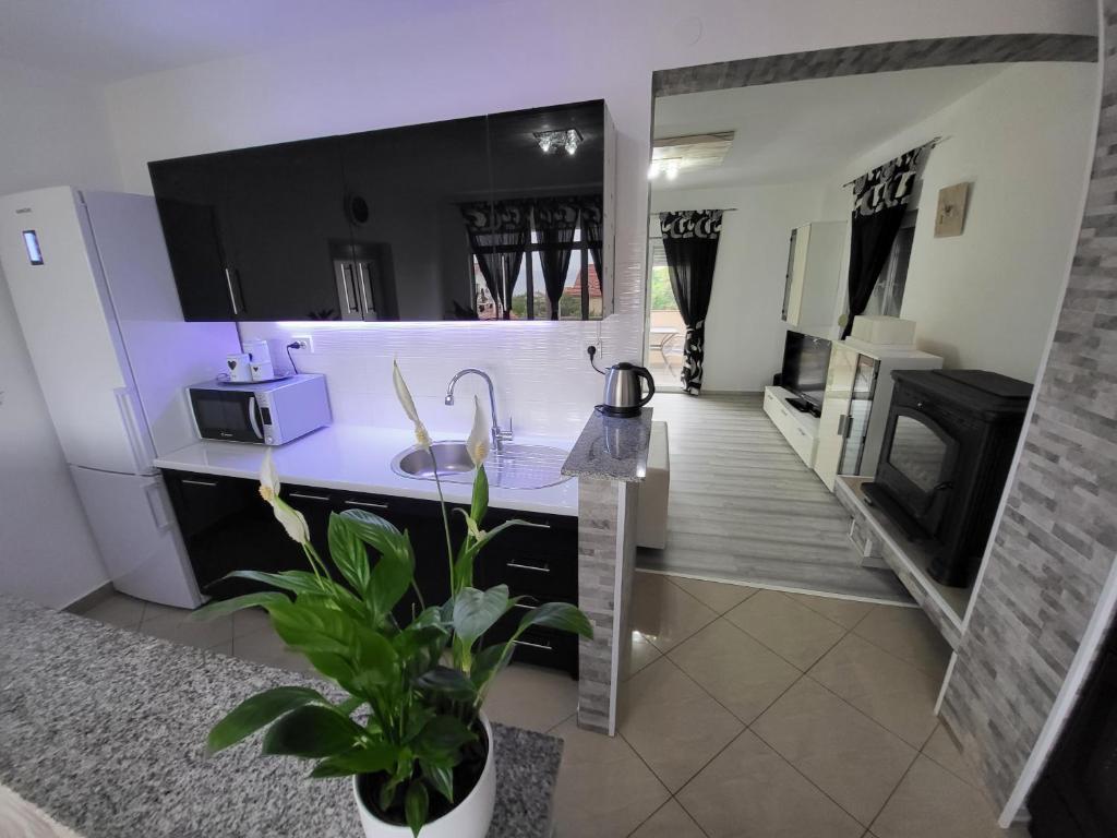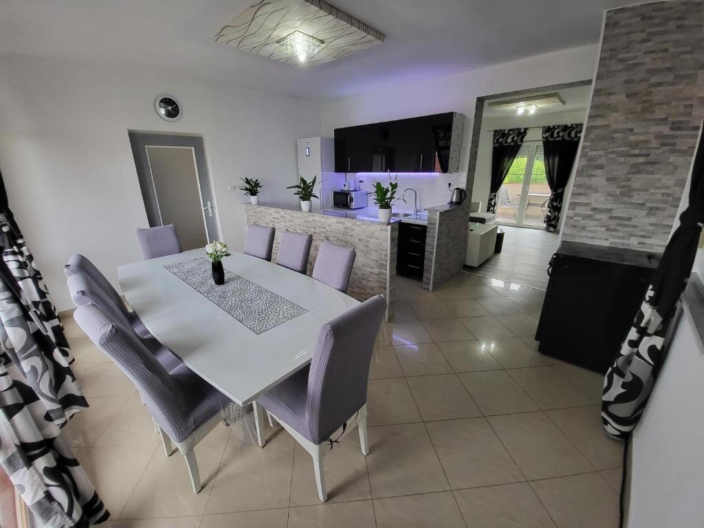 Apartman vas dočekuje potpuno opremljenom kuhinjom koja vam omogućuje pripremu ukusnih obroka u miru. Dnevni boravak upotpunjen je sadržajima poput HDTV-a s YouTubeom, grijanja i hlađenja te 100%-tne WiFi pokrivenosti kako biste ostali povezani. Osnovni sadržaji poput ručnika, posteljine, sapuna, toaletnog papira, sušila za kosu i perilice rublja osiguravaju ugodan boravak, a za aktivnosti na otvorenom u vrtu postoji roštilj. Uz dodatnu pogodnost besplatnog privatnog parkinga u našem dvorištu, vaše vozilo je potpuno sigurno. Izađite van i otkrijte šarmantnu terasu s pogledom na more i drugu dizajniranu za opuštanje. Ako vam je potrebna pomoć ili imate posebne zahtjeve tijekom boravka, uvijek smo vam na raspolaganju kako bismo osigurali da vaš odmor bude savršen u mirnoj ulici 150 m od mora s pogledom na more.