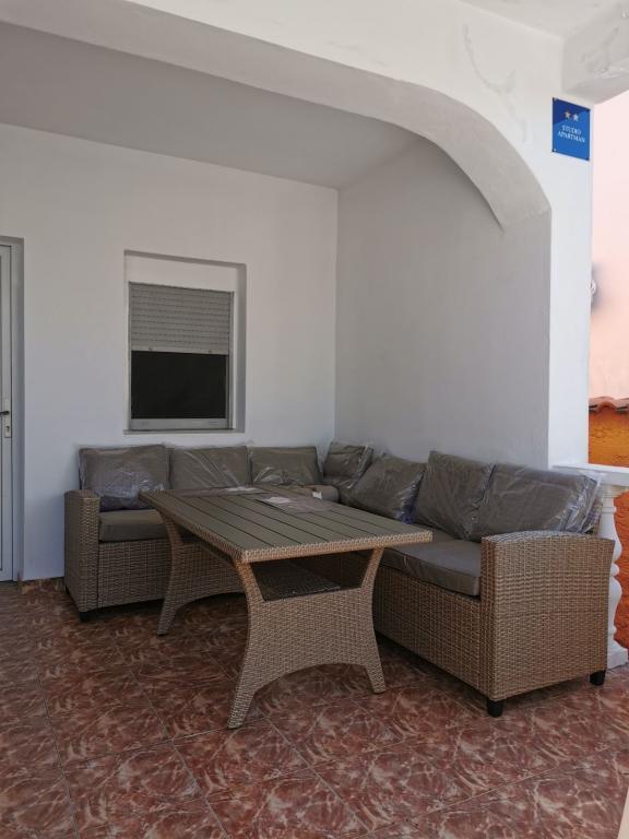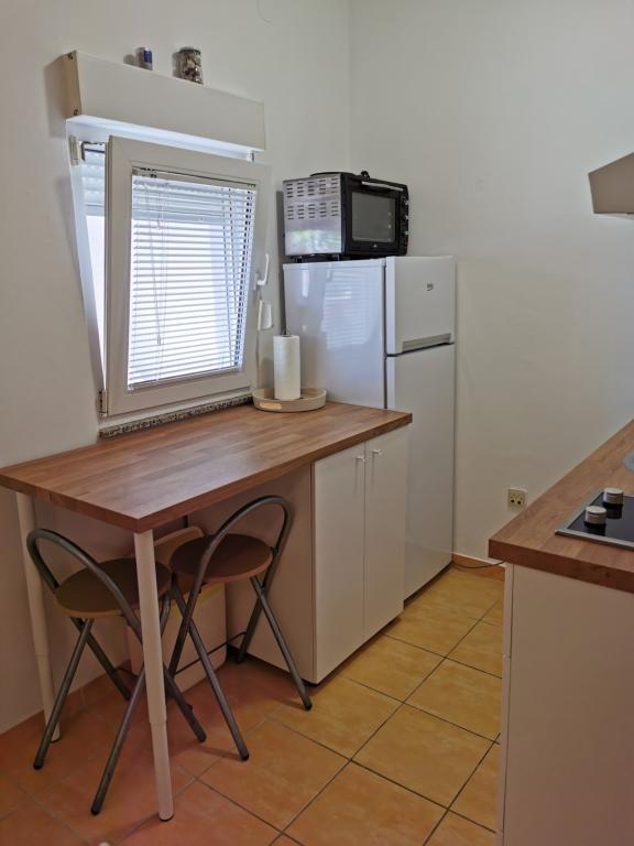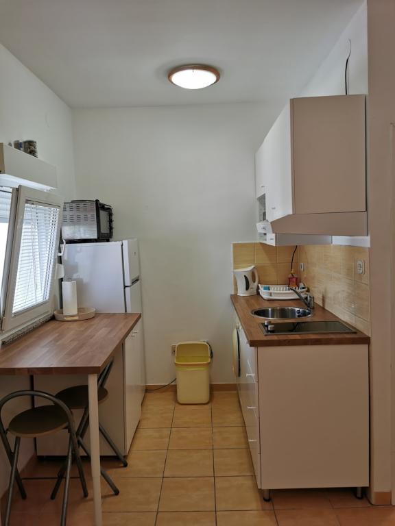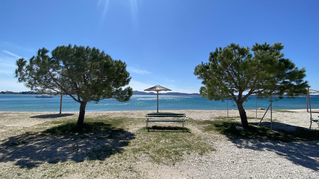 Studio apartman sa terasom. Smještaj za 2plus1 osobe, kupaonica, kuhinja, parking. Blizina plaže (drugi red od mora), blizina gradske plaže (100m) i blizina centra Bibinja sa restoranima, kafićima.