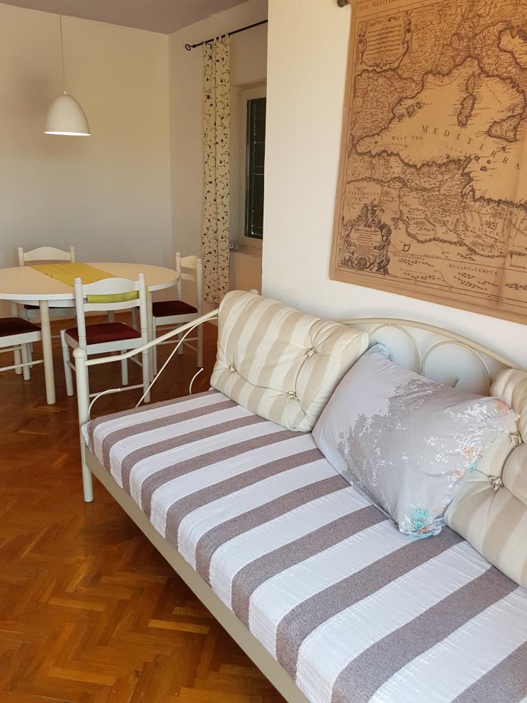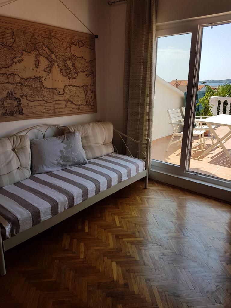 Udoban i prostran apartman u obiteljskoj kući. Dvije spavaće sobe, dnevni boravak, kupaonica i wc, te 3 terase. Apartman je udaljen 2 minute hoda od svih sadržaja potrebnih za ugodan odmor - plaža, trgovina, restoran, kafić, fast-food restoran, najam sportske opreme itd. Smješten je u mirnom predjelu mjesta i ima prekrasan pogled na more i okolicu.