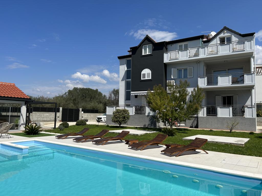 Novoizgrađeni i suvremeno opremljeni apartmani u mirnom predjelu Bibinja smješteni su blizu mora odnosno 5 min hoda.