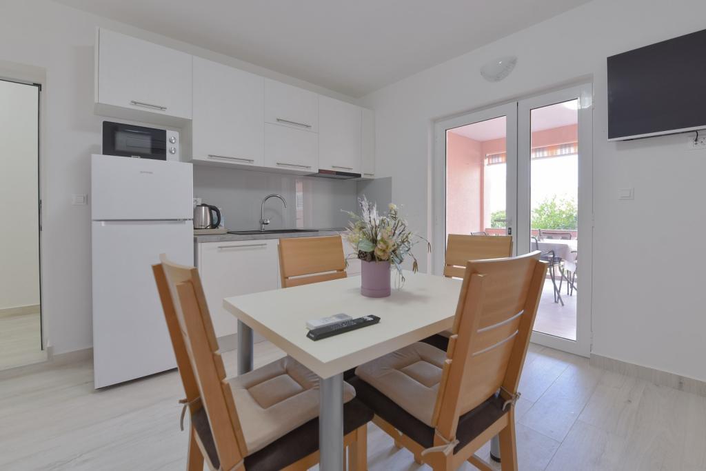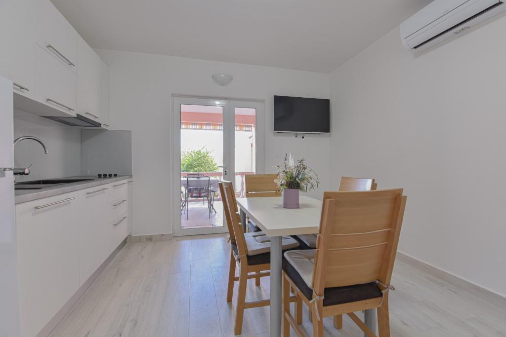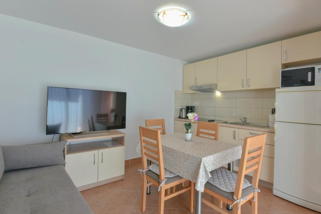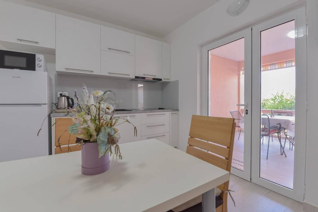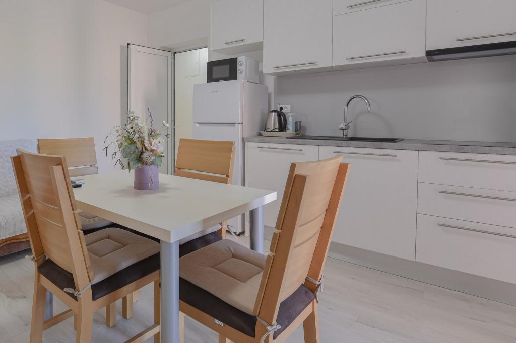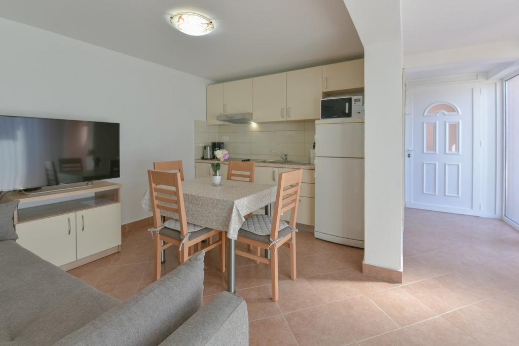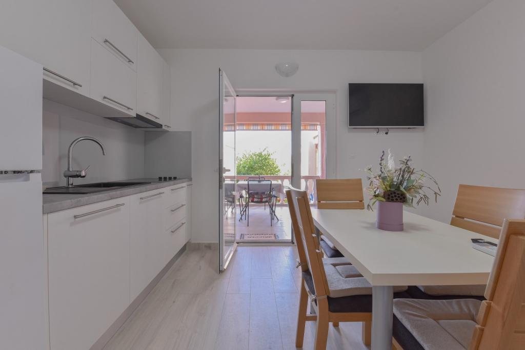 Sve pohvale obitelji Frleti! Dočekali su nas srdačno i prijateljski. Apartman je bio uredan, čist, opremljen posuđem, posteljinom, tv, klimom i WiFI. Baš onako kako je na slikama, tako je i u stvarnosti. Apartman je prostran, lijepo namješten, kreveti su udobni za spavanje. Sadrži veliku terasu s tendom s koje uživate u pogledu na mediteranski vrt obitelji Frlete. Veliki broj uređenih plaža s čistim plavim morem i prekrasno uređene šetnice uz more s velikim brojem restorana i barova. Idealno za bijeg od buke i svakodnevice. Mir, tišina uz zvuk cvrčaka, krik galeba i šum mora. Čisti hedonizam!