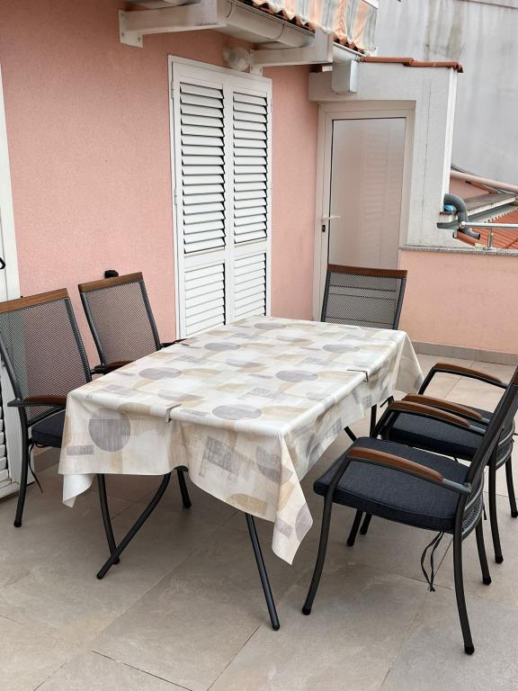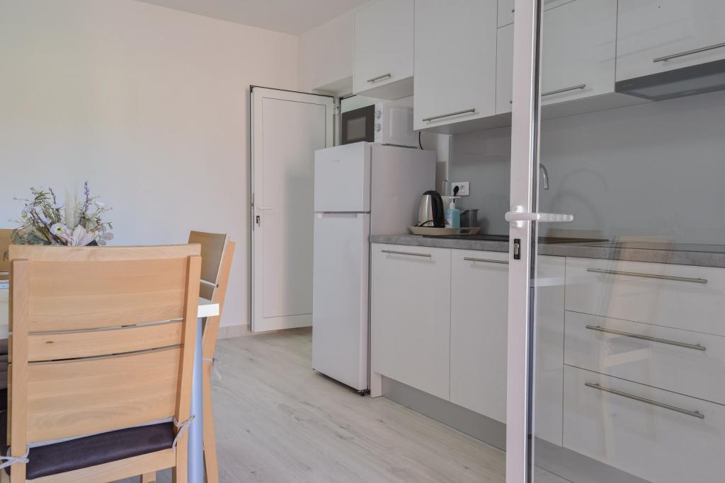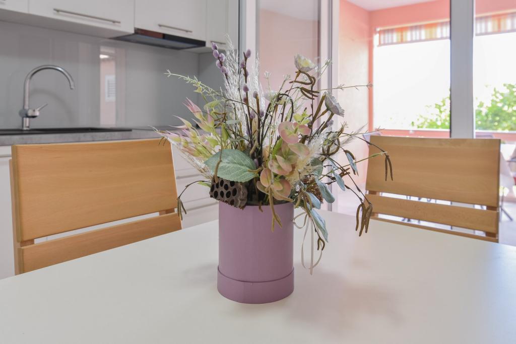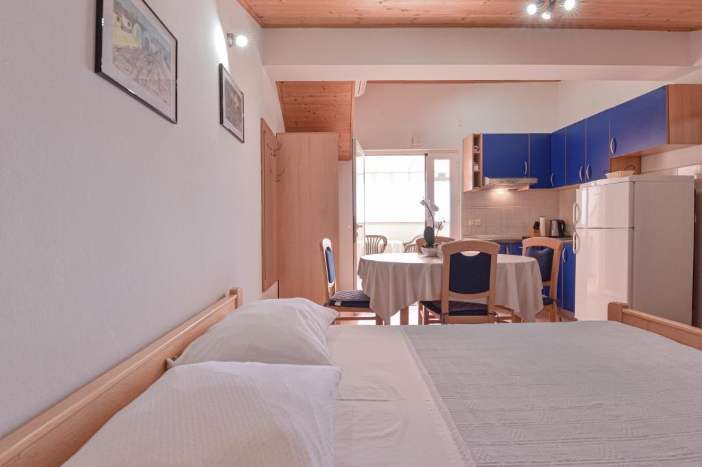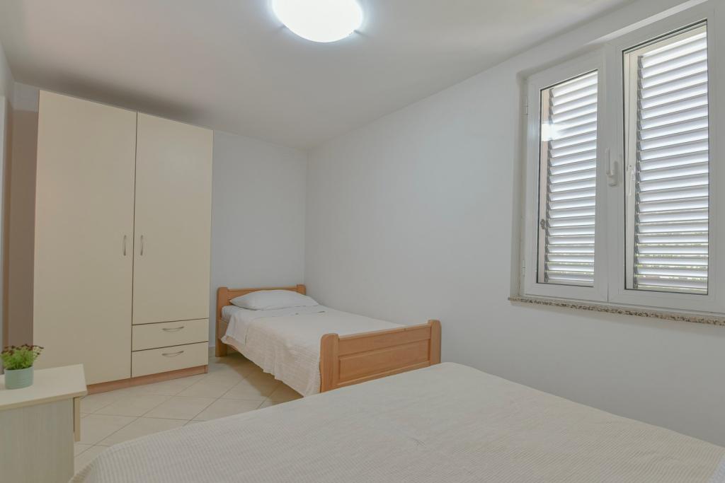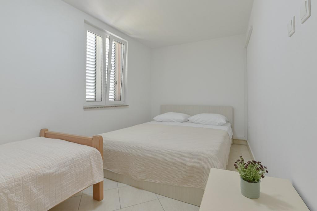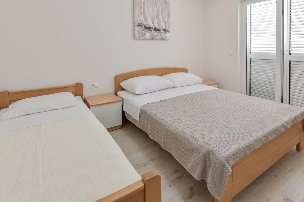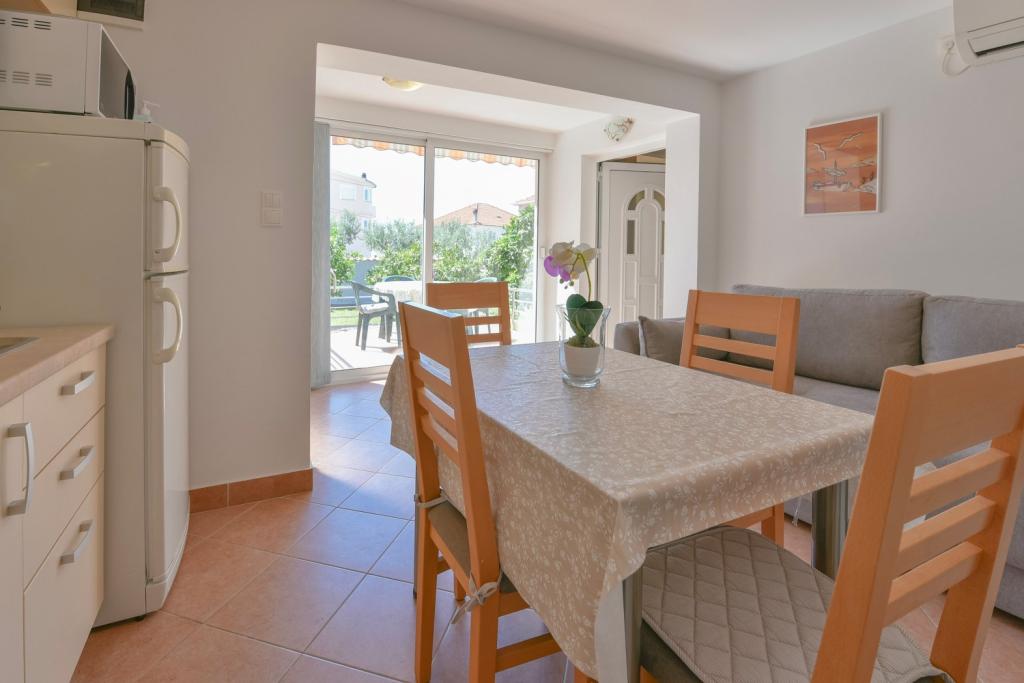 Sve pohvale obitelji Frleti! Dočekali su nas srdačno i prijateljski. Apartman je bio uredan, čist, opremljen posuđem, posteljinom, tv, klimom i WiFI. Baš onako kako je na slikama, tako je i u stvarnosti. Apartman je prostran, lijepo namješten, kreveti su udobni za spavanje. Sadrži veliku terasu s tendom s koje uživate u pogledu na mediteranski vrt obitelji Frlete. Veliki broj uređenih plaža s čistim plavim morem i prekrasno uređene šetnice uz more s velikim brojem restorana i barova. Idealno za bijeg od buke i svakodnevice. Mir, tišina uz zvuk cvrčaka, krik galeba i šum mora. Čisti hedonizam!