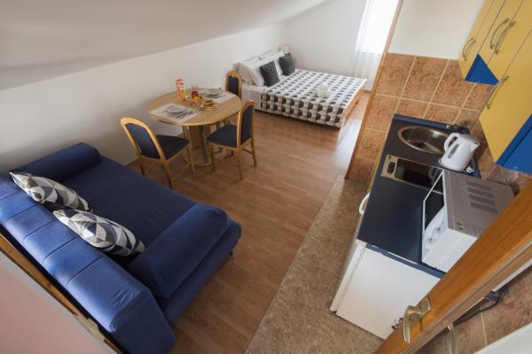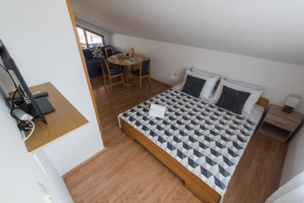 Vlasnici su ljubazni i uslužni. Wi-fi nije radio, balkon je gledao na gradilište a ne na more. Stan je mračan.