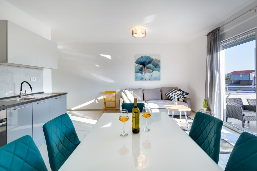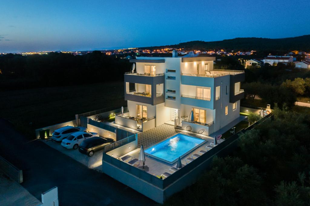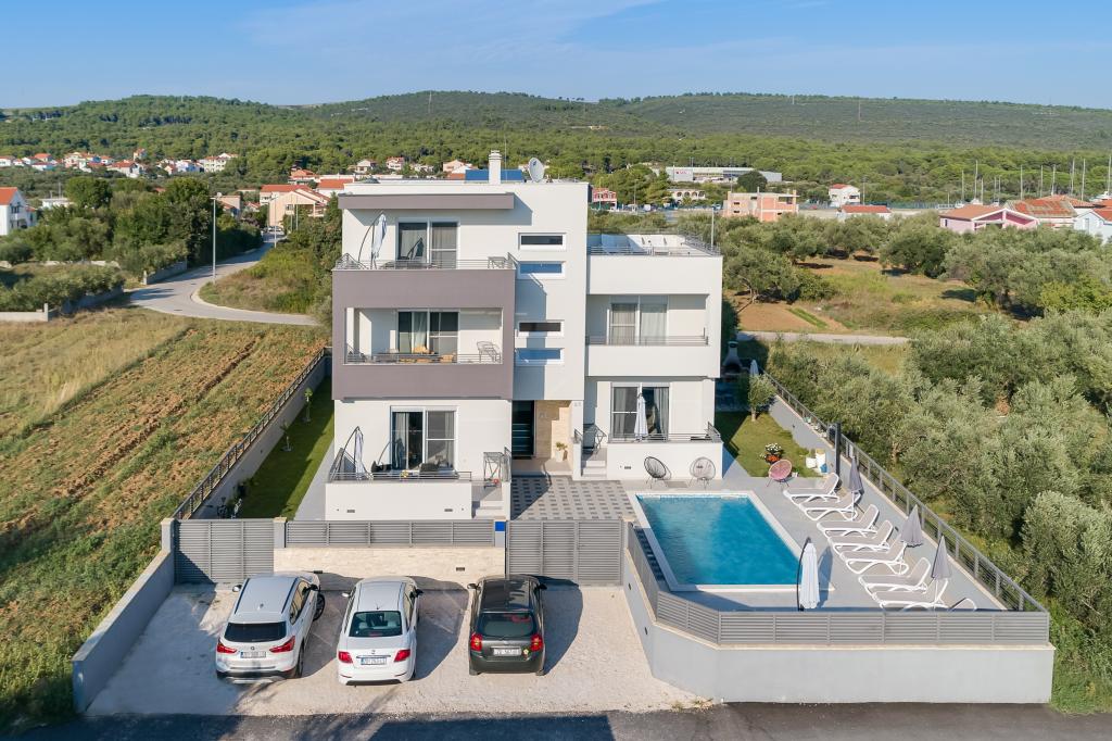 Apartmani Evita nalaze se 5 km od grada Zadra. Udaljeni od plaže samo 300 m, od prve velike trgovine 400 m, od centra mjesta 1 km. Nalaze se u mirnom djelu Bibinja. Novi, moderno uređeni apartmani s grijanim bazenom, wifi, privatnim besplatnim parkingom, . . Svaka soba je klimatizirana, na svakom prozoru i vratima nalaze se komarnici, svaki apartman ima svoj privatan ulaz. Apartman također u svojoj ponudi ima i besplatnu upotrebu bicikli.