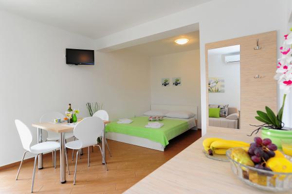 Kompletno i moderno opremljeni apartmani u mirnom predjelu Bibinja, 2 minuta hoda do centra mjesta te 5 minuta hoda do plaže. Objekt ima novoizgrađeni bazen te privatni parking koji se ne naplaćuje.