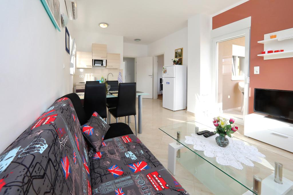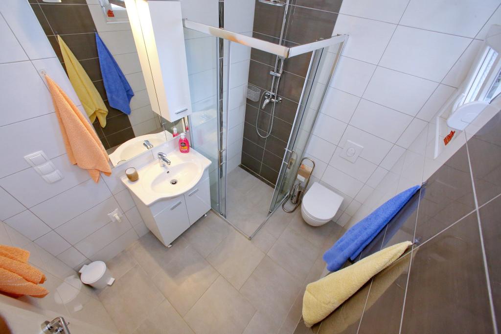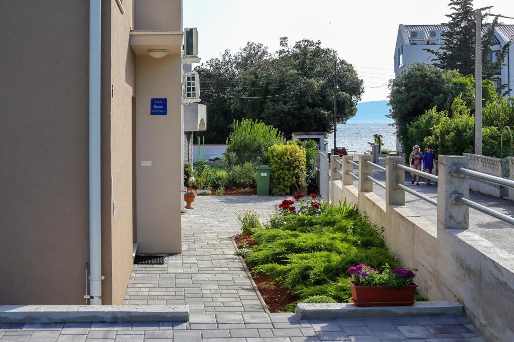 Ove godine smo za naš odmor odabrali ovaj apartman i definitivno smo postupili ispravno. Odmah po dolasku uspjeli smo parkirati kod kuće, iza zatvorenih vrata, tako da je automobil bio siguran. Sam apartman bio je prekrasan, prostran, čist i potpuno opremljen svim potrebnim priborom za kuhanje. Klima uređaj nas je osvježavao i noću i danju. Velika terasa bila je apsolutno idealna za naše malo dijete, koje se tamo moglo igrati cijeli dan - na suncu ili u hladu zahvaljujući velikim suncobranima. Istovremeno smo imali prekrasan pogled na more. More je zaista bilo na korak od apartmana. Svakako preporučujemo smještaj i sigurno ćemo se ponovno vratiti. Hvala vam.
