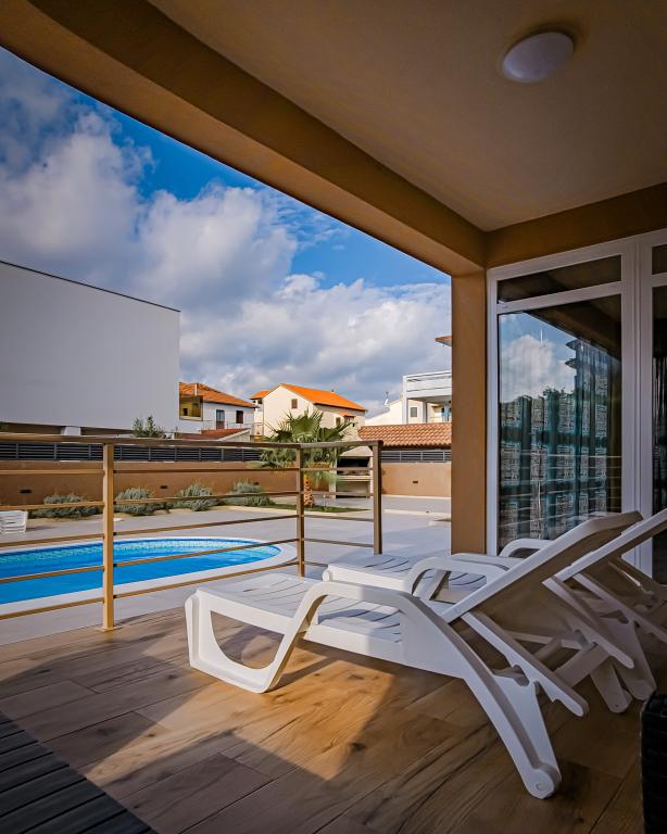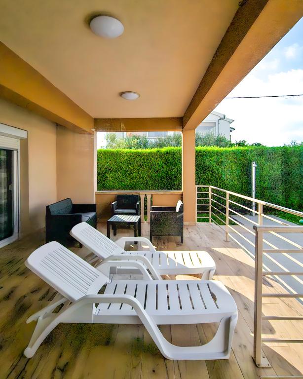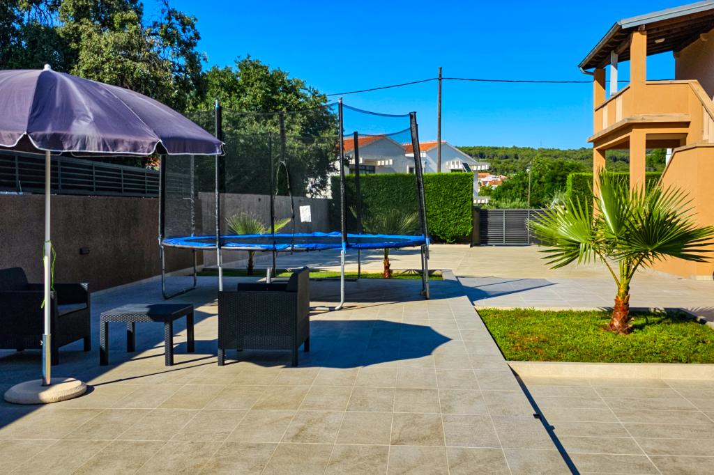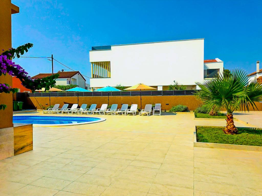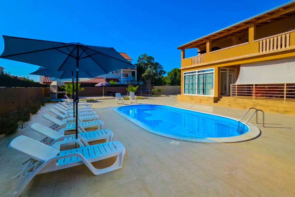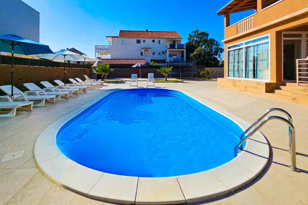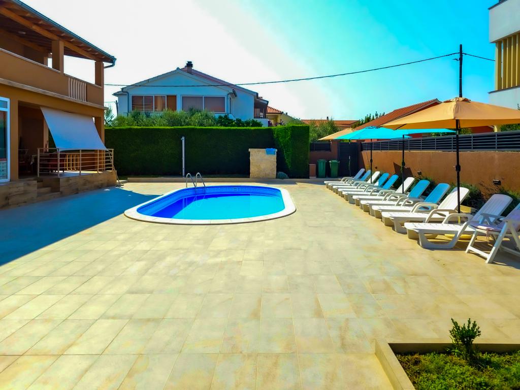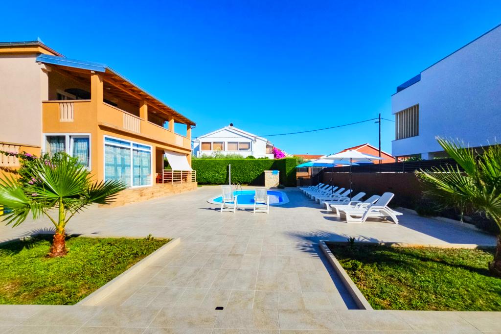 Smještena u Bibinjama, blizu Zadra, ova kuća je idealna za odmor! Samo 5 minuta hoda dijeli vas od plaža, starog sela s restoranima i kafićima, dok su pekara, trgovine te lokalni proizvođači voća i vina udaljeni 2 minute. Kuća je ograđena (2 m visine) za privatnost i ima dva apartmana, svaki od 90 m², s 2 spavaće sobe, kuhinjom, dnevnim boravkom, 2 kupaonice i velikim terasama. U dvorištu se nalaze veliki parking, bazen (8x4 m) i roštilj za zajedničko korištenje. Posjetite obližnji Zadar, Morske orgulje i nacionalne parkove za nezaboravne izlete! Bazen je u funkciji u vremenu od 15.05.2025 do 15.10.2025 godine.