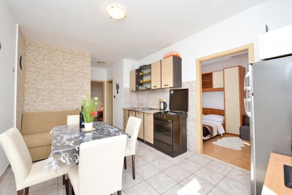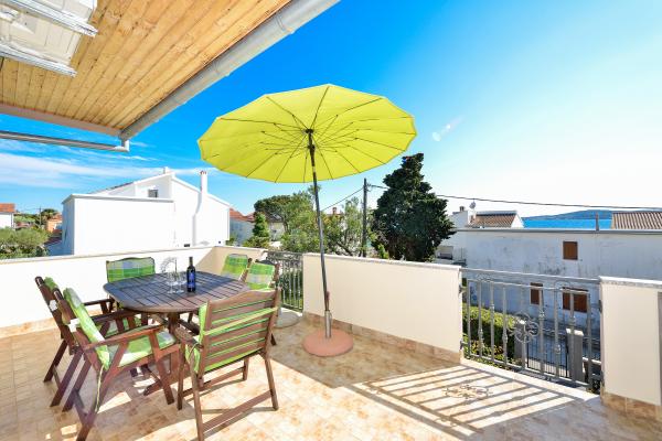 Kompletno i suvremeno namješteni apartmani u mirnom predjelu Bibinja,smješteni u drugom redu do mora.Apartman se nalazi 30 metara od mora i 80 metara od Plaže.Apartman posjeduje besplatni internet,sat tv,air condition,tv,terasa sa pogledom na more,grill,parking,apartman 2+2i 6+4 imaju perilicu za suđe i perilicu za rublje
