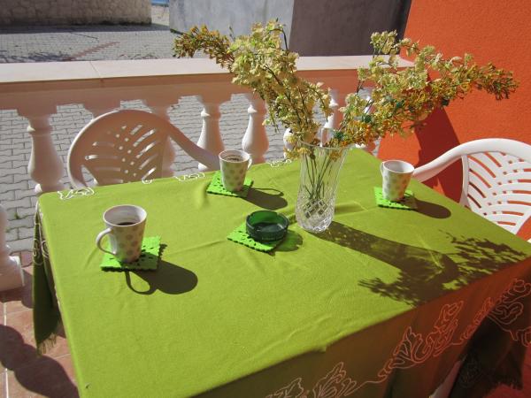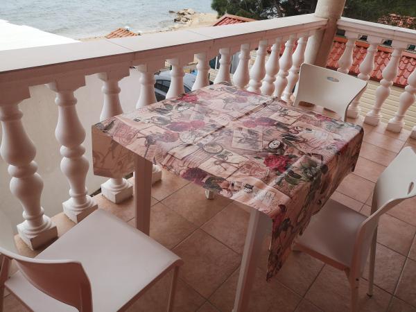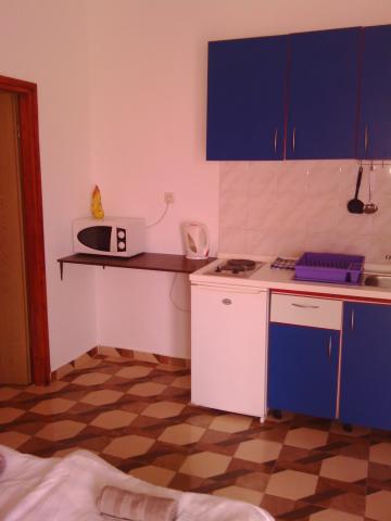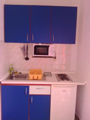 Svaki apartman ima opremljenu kuhinju (frižider, električni šporet), kupatilo (tuškabina, umivaonik, toalat, ogledalo), sobe (ormari, francuski ležaj), terasu sa pogledom na more (sto, stolice).