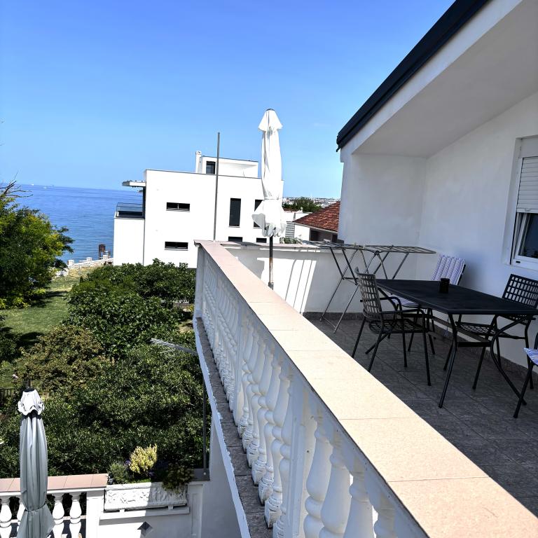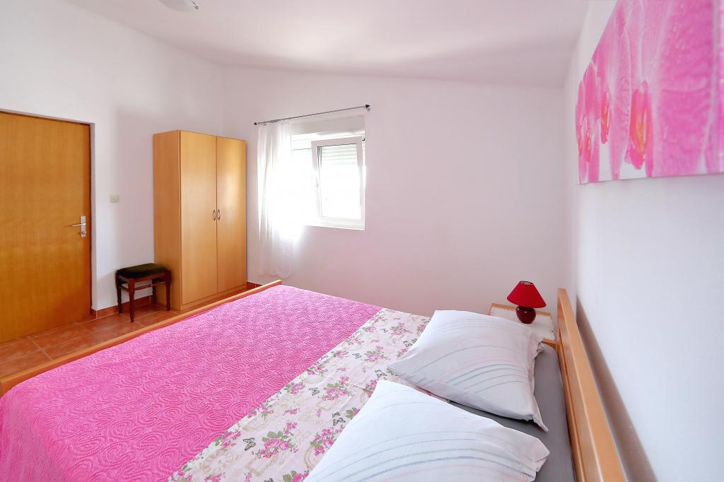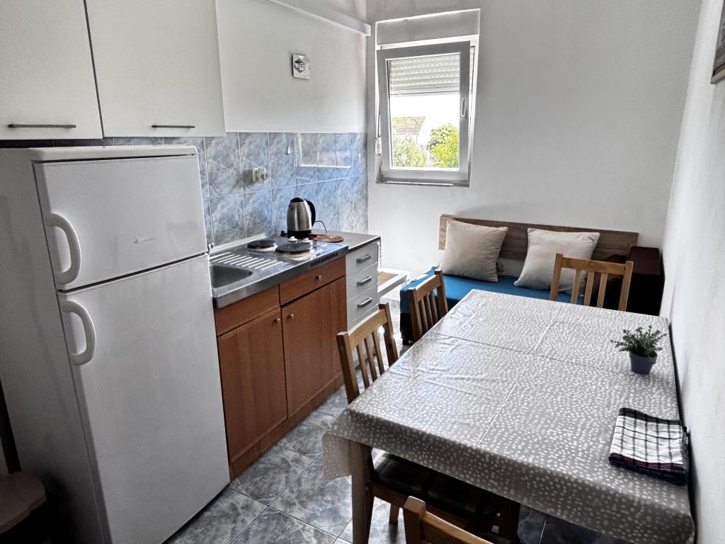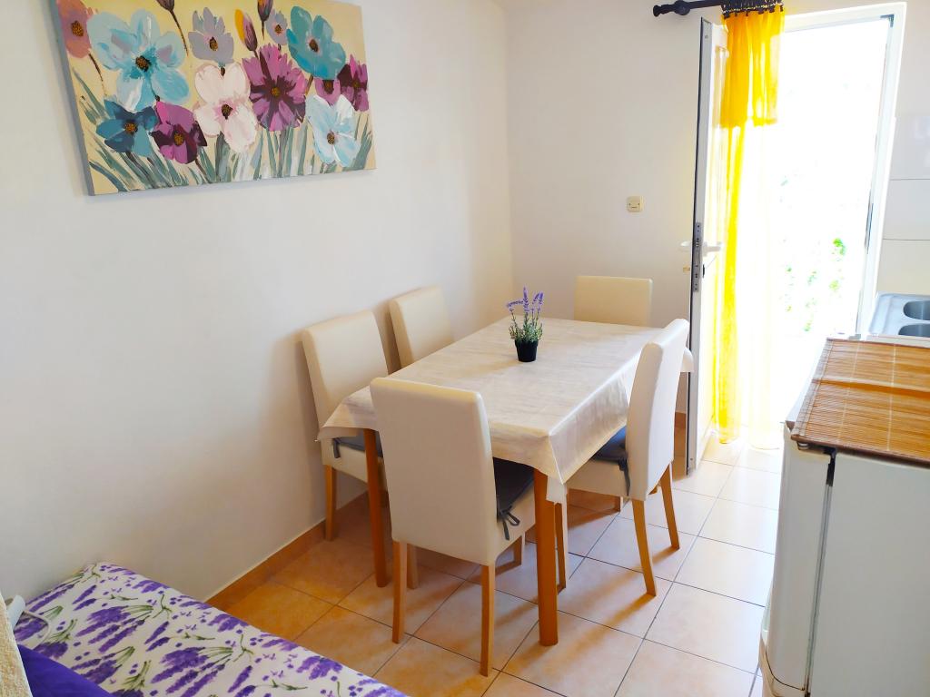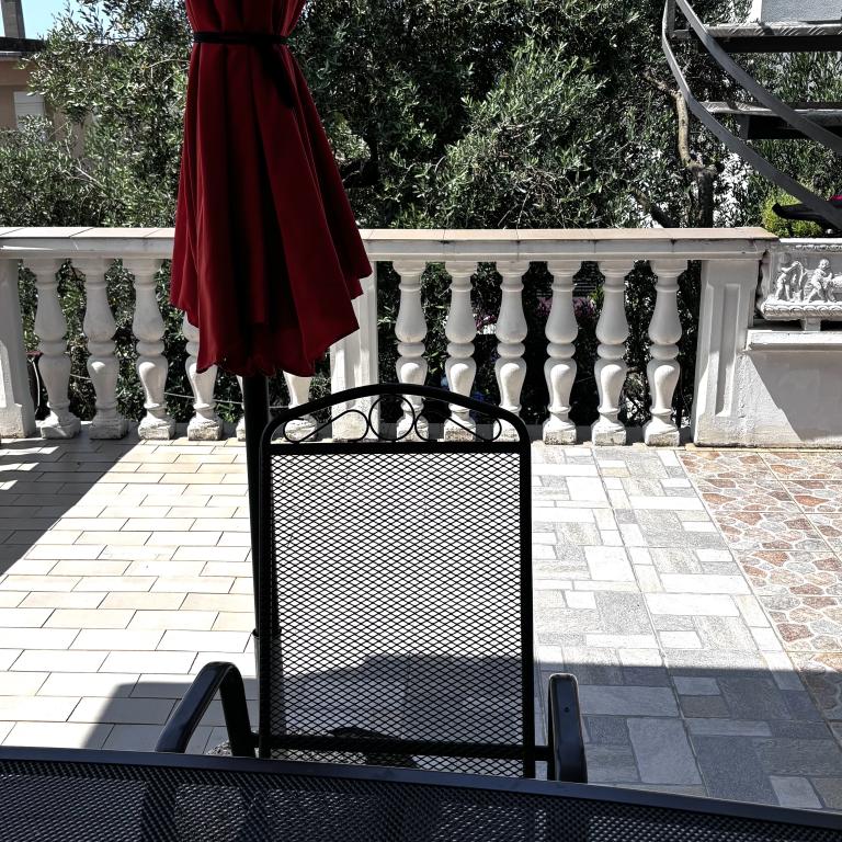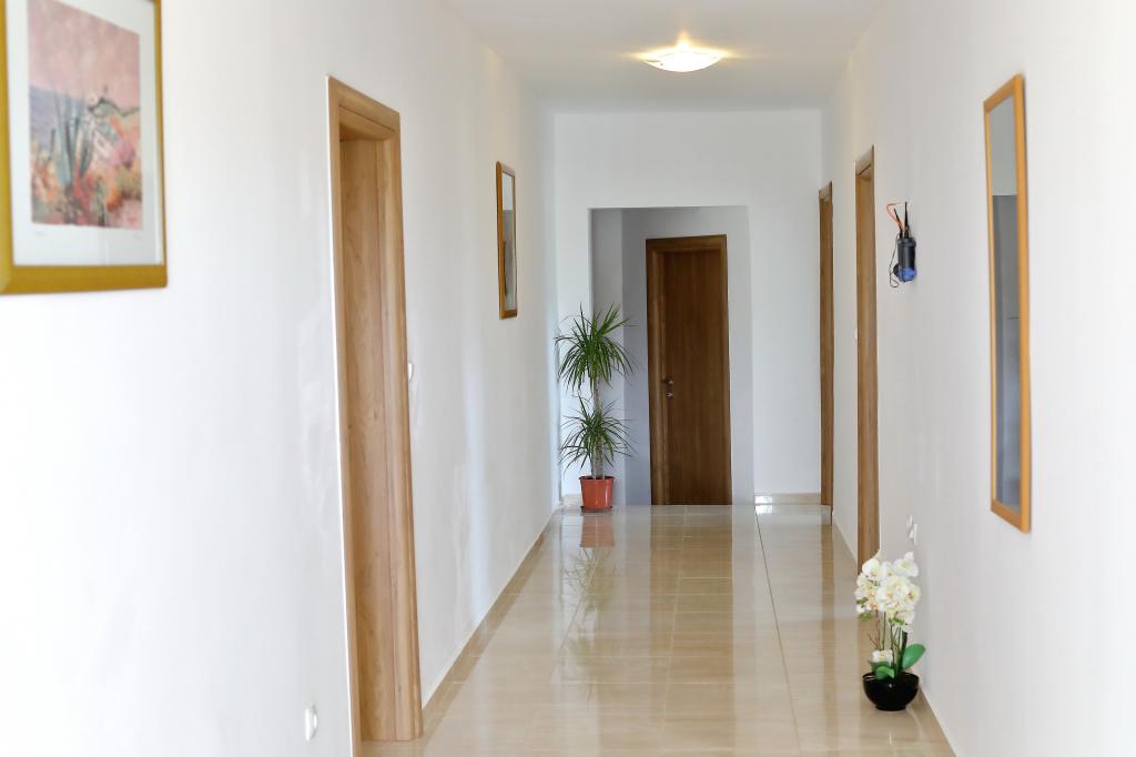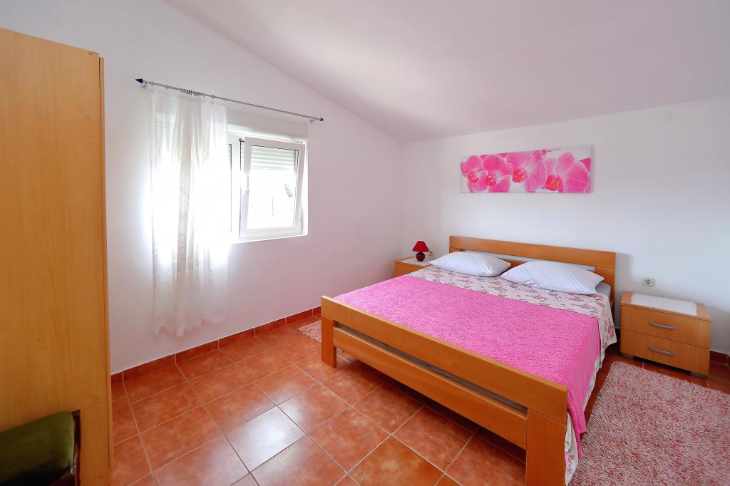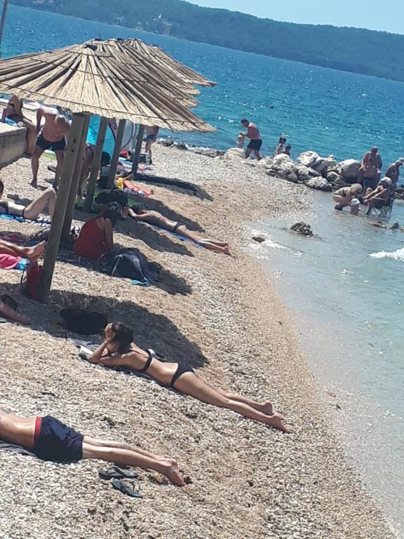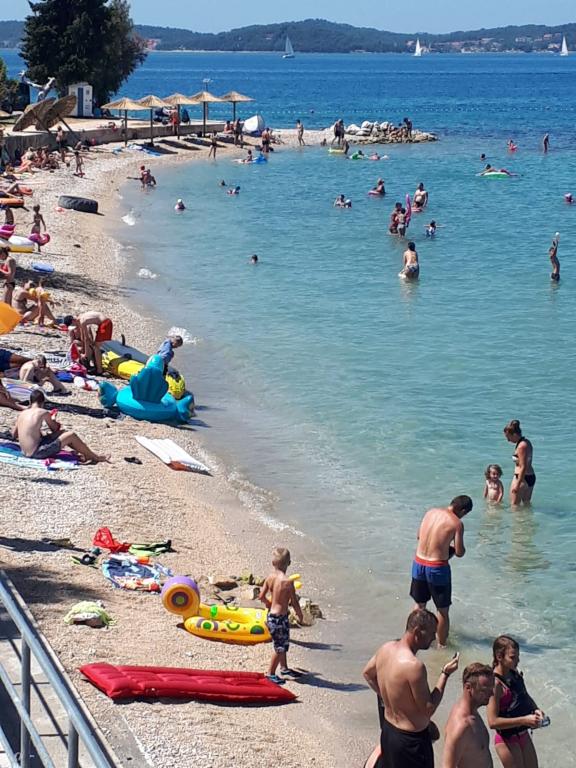 Obiteljska kuća nalazi se u mirnom dijelu mjesta, graniči sa plažom Punta Rožica, prvi red do mora. Do plaže ima 10 metara. Pogodno za obitelji s djecom. Plaža je pogodna i za neplivače. Iznajmljuje se 1. i 2.kat. Mi živimo u prizemlju koje ne iznajmljujemo.Imamo 6 apartmana i jednu dvokrevetnu sobu sa kupatilom i zasebnom kuhinjom. U blizini su marketi,fast food ,restorani,sve je u krugu 200 metara. Osiguran je parking u sklopu smještaja. Kućni ljubimci su dopušteni u pojedinim smještajnim jedinicama uz nadoplatu od 5 eura dnevno.