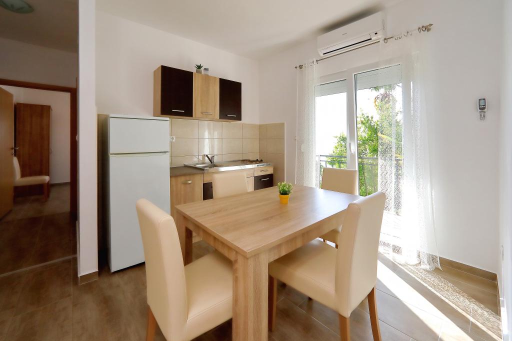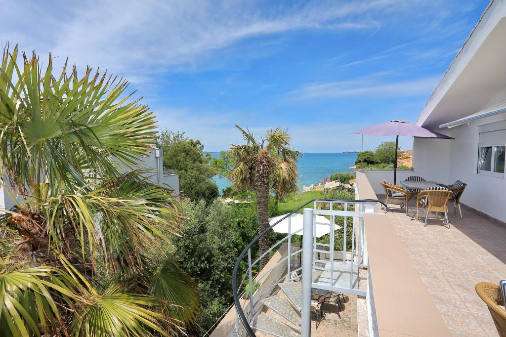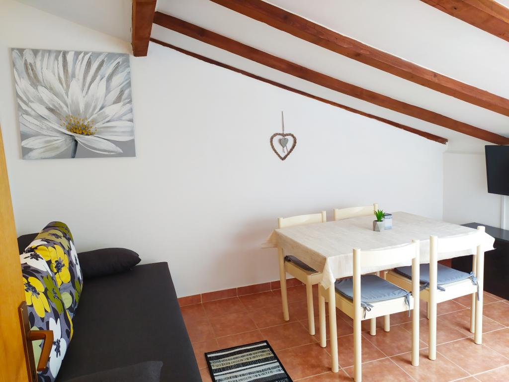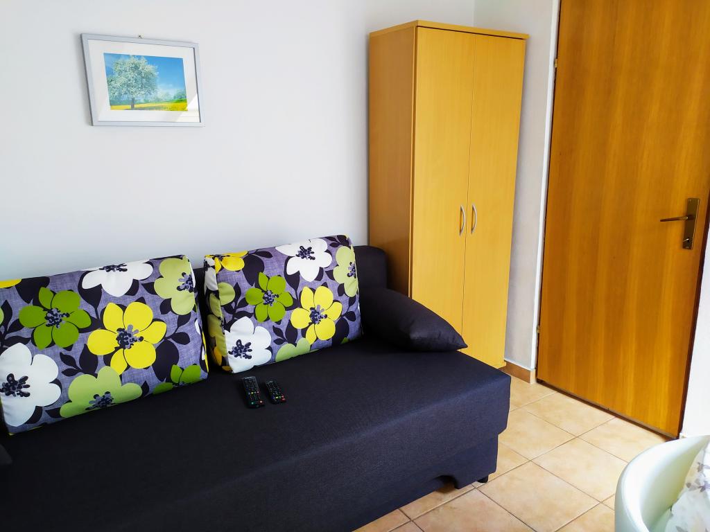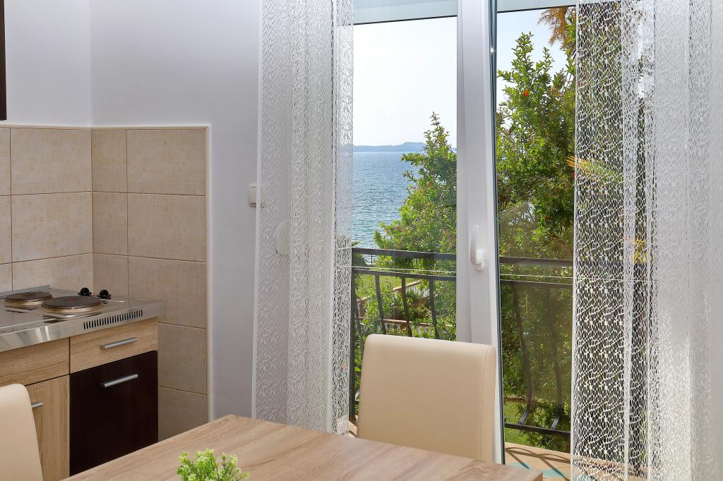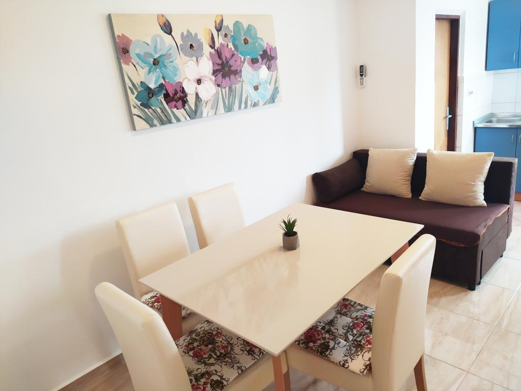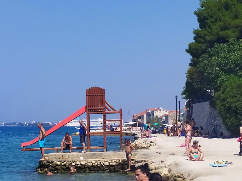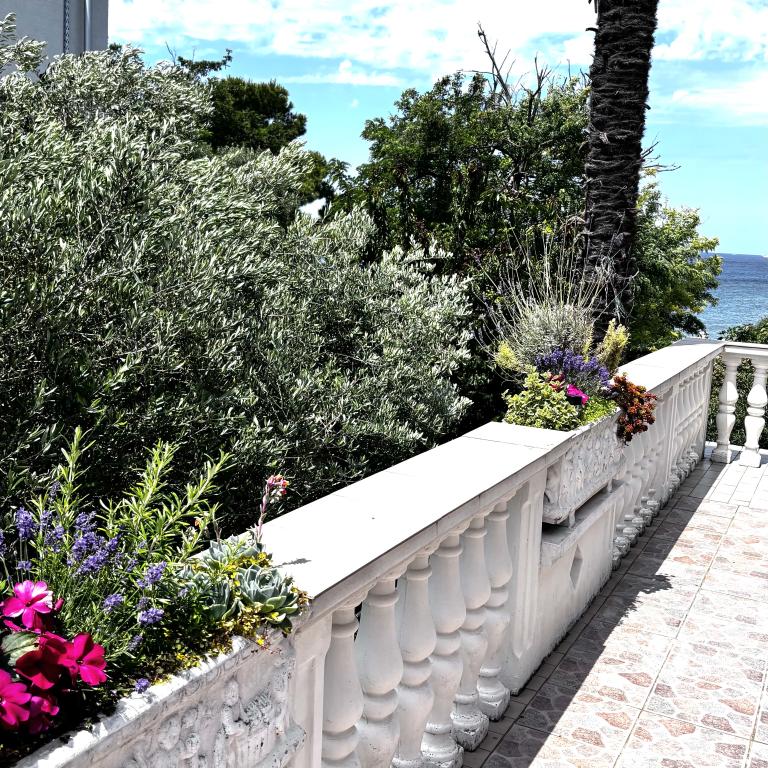 Obiteljska kuća nalazi se u mirnom dijelu mjesta, graniči sa plažom Punta Rožica, prvi red do mora. Do plaže ima 10 metara. Pogodno za obitelji s djecom. Plaža je pogodna i za neplivače. Iznajmljuje se 1. i 2.kat. Mi živimo u prizemlju koje ne iznajmljujemo.Imamo 6 apartmana i jednu dvokrevetnu sobu sa kupatilom i zasebnom kuhinjom. U blizini su marketi,fast food ,restorani,sve je u krugu 200 metara. Osiguran je parking u sklopu smještaja. Kućni ljubimci su dopušteni u pojedinim smještajnim jedinicama uz nadoplatu od 5 eura dnevno.