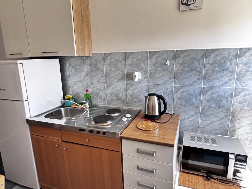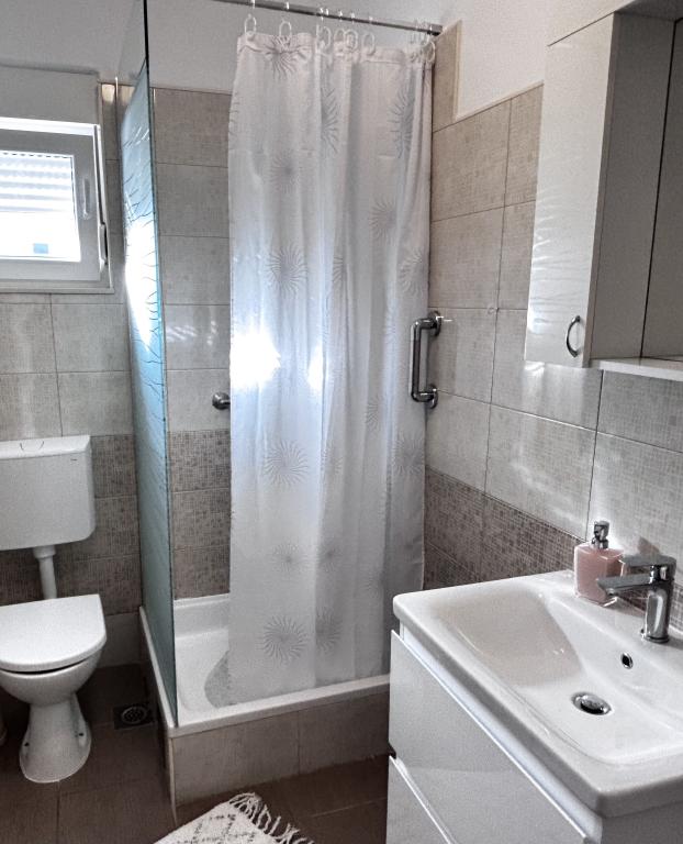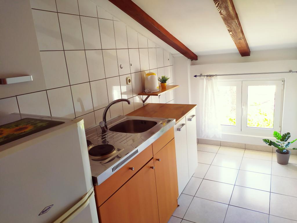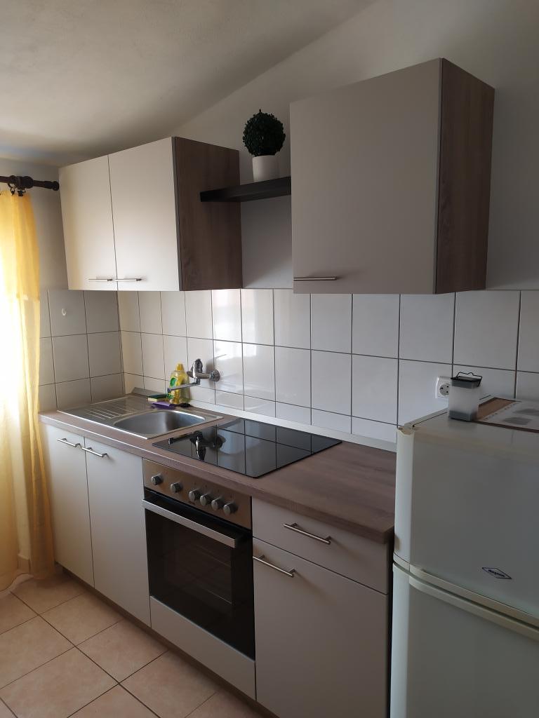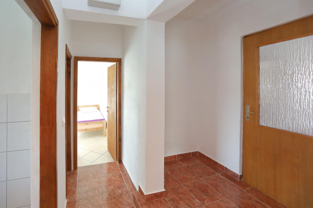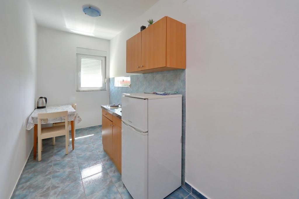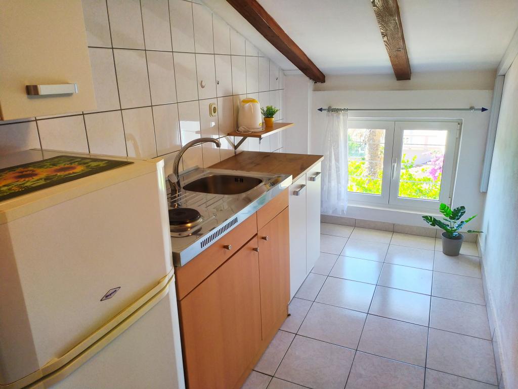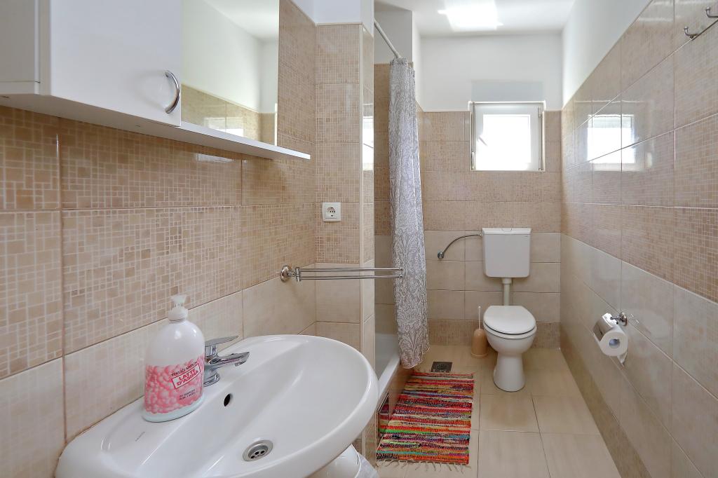 Obiteljska kuća nalazi se u mirnom dijelu mjesta, graniči sa plažom Punta Rožica, prvi red do mora. Do plaže ima 10 metara. Pogodno za obitelji s djecom. Plaža je pogodna i za neplivače. Iznajmljuje se 1. i 2.kat. Mi živimo u prizemlju koje ne iznajmljujemo.Imamo 6 apartmana i jednu dvokrevetnu sobu sa kupatilom i zasebnom kuhinjom. U blizini su marketi,fast food ,restorani,sve je u krugu 200 metara. Osiguran je parking u sklopu smještaja. Kućni ljubimci su dopušteni u pojedinim smještajnim jedinicama uz nadoplatu od 5 eura dnevno.