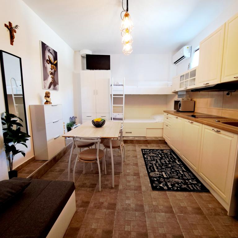 Prekrasan apartman, sve jako čisto i uredno. Velika terasa, dvorište, hladovina i mir. Do plaže 2 minute. A domaćini jako ljubazni, uvijek na usluzi, gostoljubljivi, ma predivni. Osjećali smo se kao doma okruženi svojim dragim prijateljima. Apartmani i domaćini za preporučiti svima koji žele uživati u miru, a opet biti blizu mora.