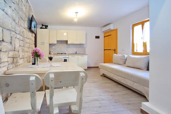 Novo izgrađena i namještena kuća za odmor Sagunica idealna je za obitelj sa djecom za ukupno 4 osobe. Podjeljena na dvije etaže odvojenim vanjskim stubištem. U prizemlju je prostorija sa kuhinjom i dnevnim boravkom sa kaučem za dvije osobe te unutarnjim kominom i wc-om. Na prvom katu je spavaća soba sa bračnim krevetom i mini kuhinjom te kupaonicom, balkon sa pogledom na vrt i dvorište. Sve prostorije su klimatizirane. U dvorištu vrtni tuš, stol i stolice i parking. Dostupan brz internet.