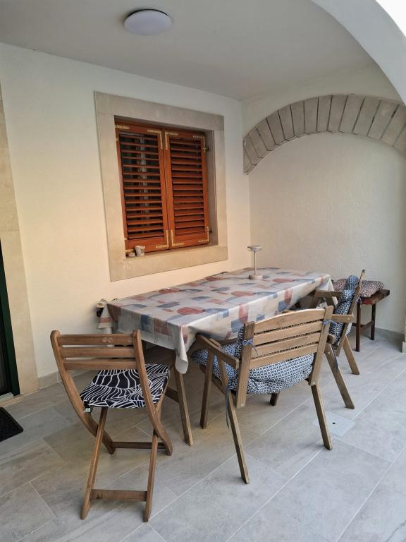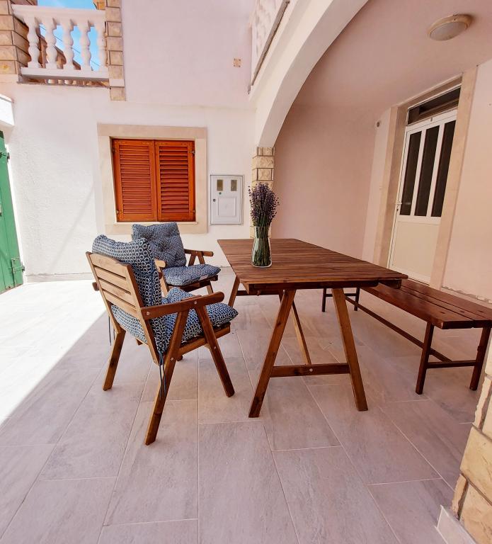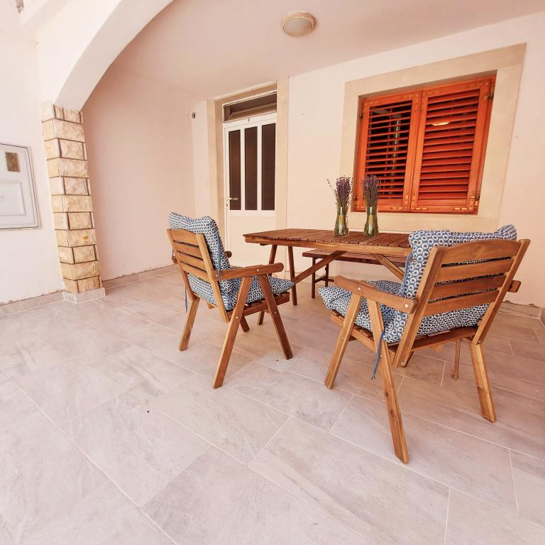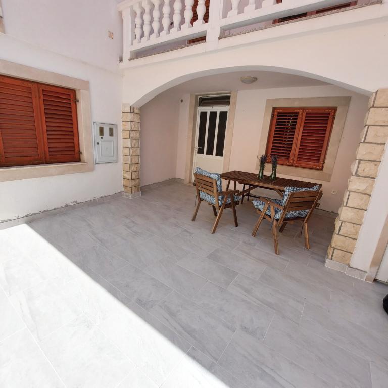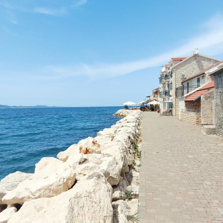 Iznajmljuje se cijela kuća isključivo za potrebe gostiju, zajamčena privatnost i mir. S njezinog balkona u srcu tradicionalnog dalmatinskog mjesta, prostire se pogled na staru jezgru Bibinja (Trg Sri sela). Kuća je kompletno opremljena i nalazi se u starom povijesnom dijelu Bibinja. Cijela kuća (140m2 - 4 spavaće sobe, 2 kupaonice i 1 WC, dnevni boravak, kuhinja i blagovaona, 2 balkona) i dvor (30m2) se iznajmljuje u cijelosti (nema vlasnika, niti drugih gostiju). Dvor je omeđen kamenim zidom i jamči punu privatnost gostiju. Dvor ima mogućnost zaključavanja, moguće je ostaviti bicikle, daske za veslanje (SUP) i druge stvari. Idealno za obitelj s djecom, more i plaže okrenute prema zadarskim otocima su u neposrednoj blizini (60 m), kao i kafići, ljekarna, trgovine i restorani. Bibinje je udaljeno 6 km od Zadra. Uz prekrasan zalazak sunca, miris soli i šum mora, dođite i uživajte u našem mjestu!