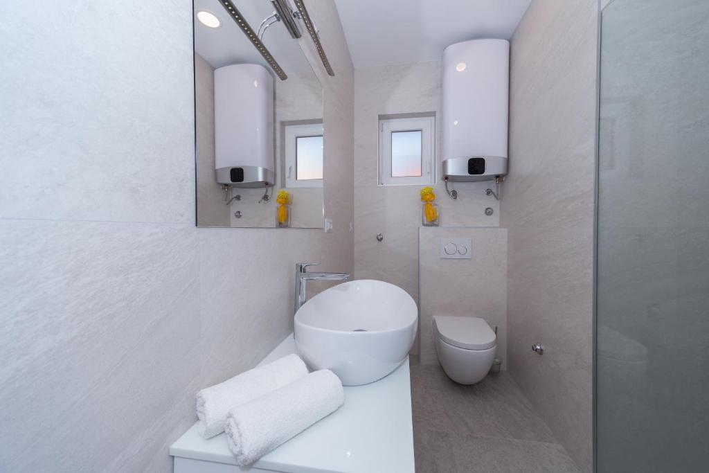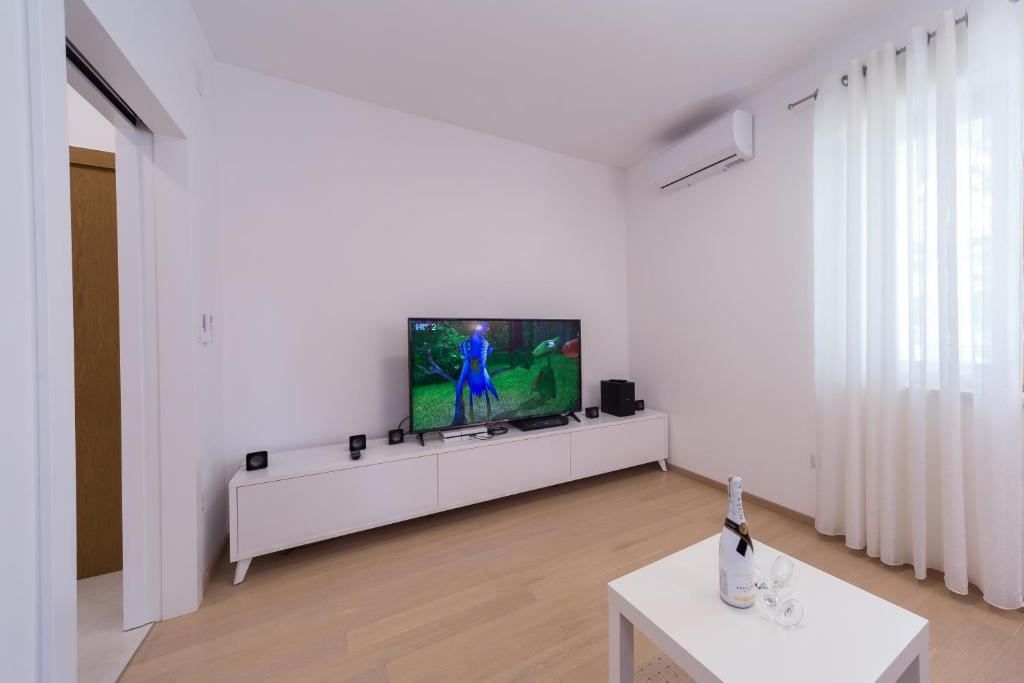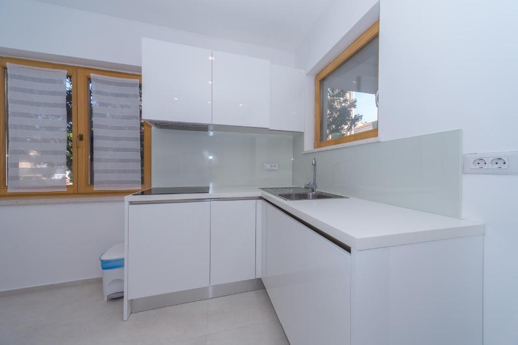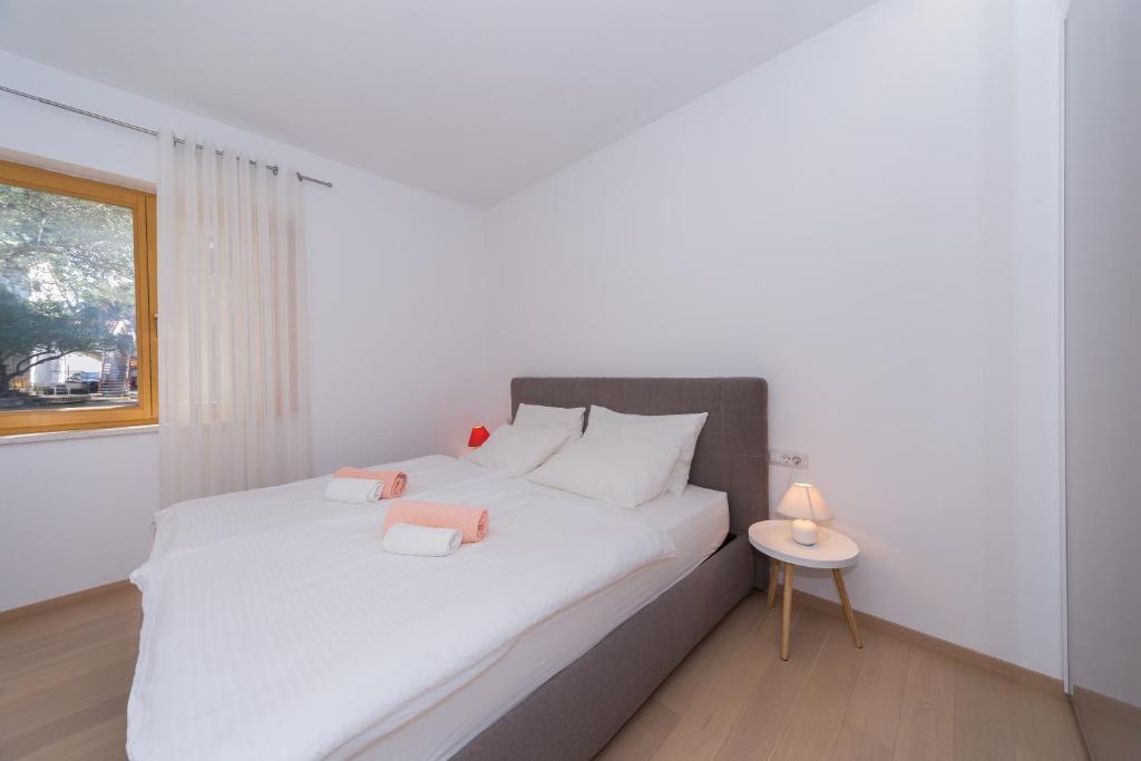 Novo uređeni i moderno opremljeni apartman na 2 minute hoda do plaže Dražice koja posjeduje Plavu zastavu što označava čistoću mora i plaže. Apartman se sastoji od 2 sobe king size bed 2m x 2m, te kauč na razvlačenje za 2 osobe. Parking je predviđen odmah uz apartman, u svakoj sobi je postavljen lcd tv te također u dnevnom boravku, wi-fi je besplatan te postoji mogućnost korištenja Play station 4 sa nekolicinom igara. Apartman ima i 2 klima uređaja i oni su u cijeni apartmana. Ukoliko ima više od 6 osoba postoji mogućnost smještaja nedaleko od Apartmana u Kampu “Mia” te u Kampu “Diana